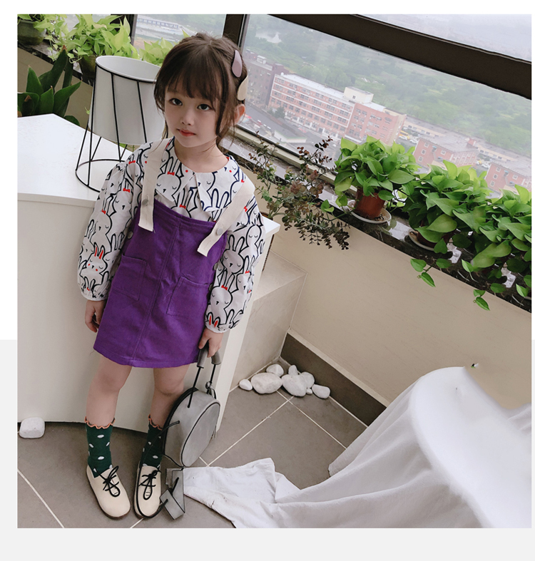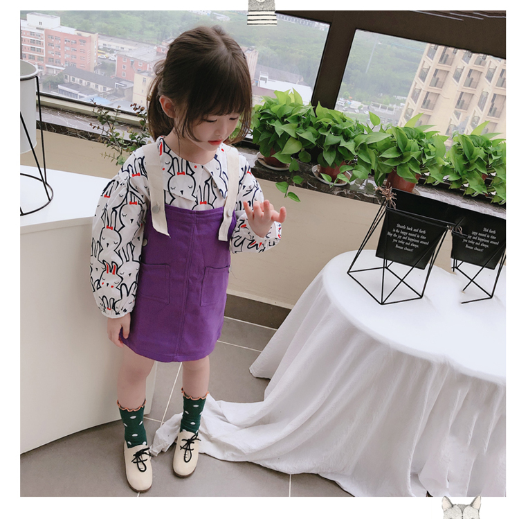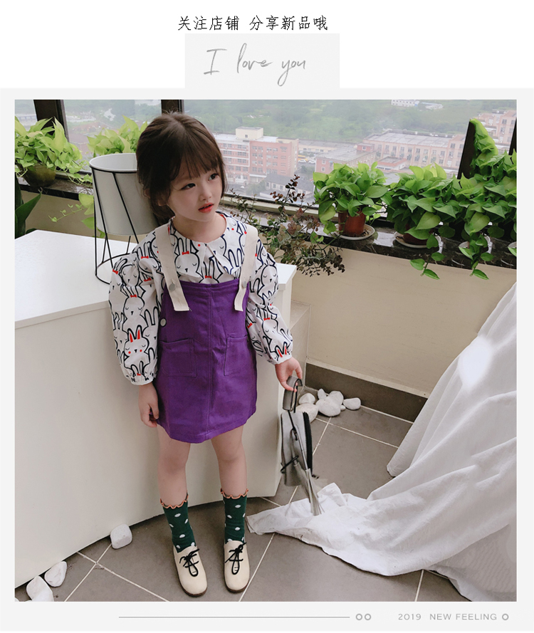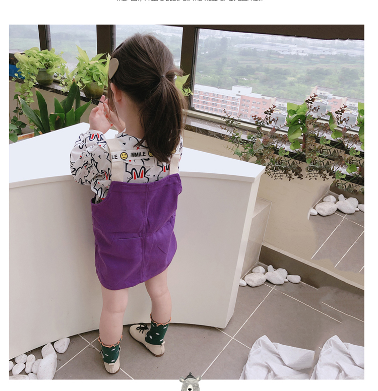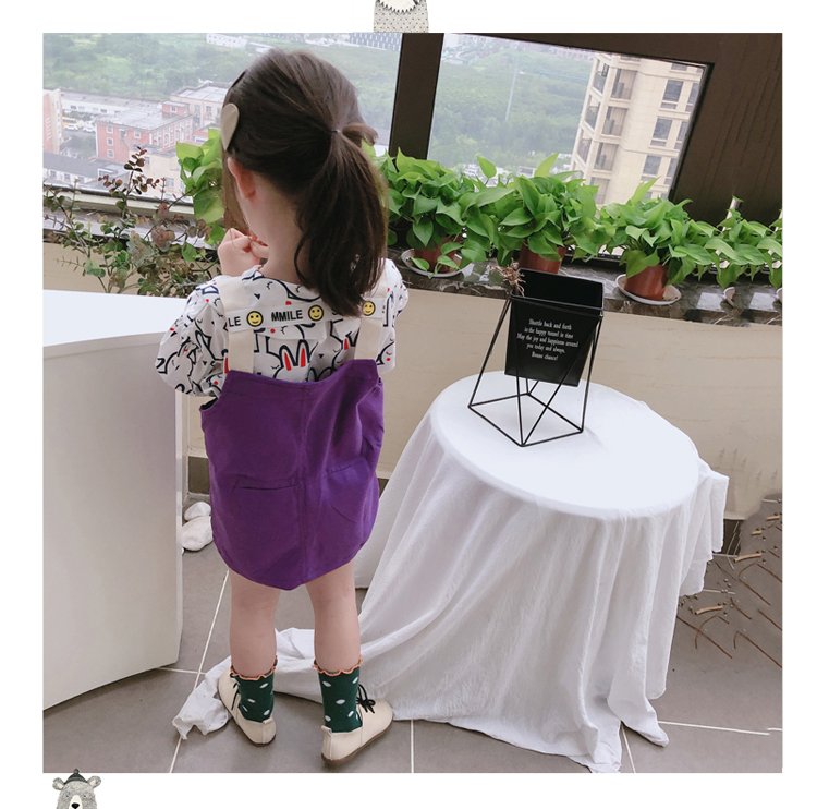 2019秋季新款 中小兒童字母連衣裙 女童寶寶可愛氣質撞色背帶裙1入