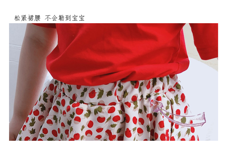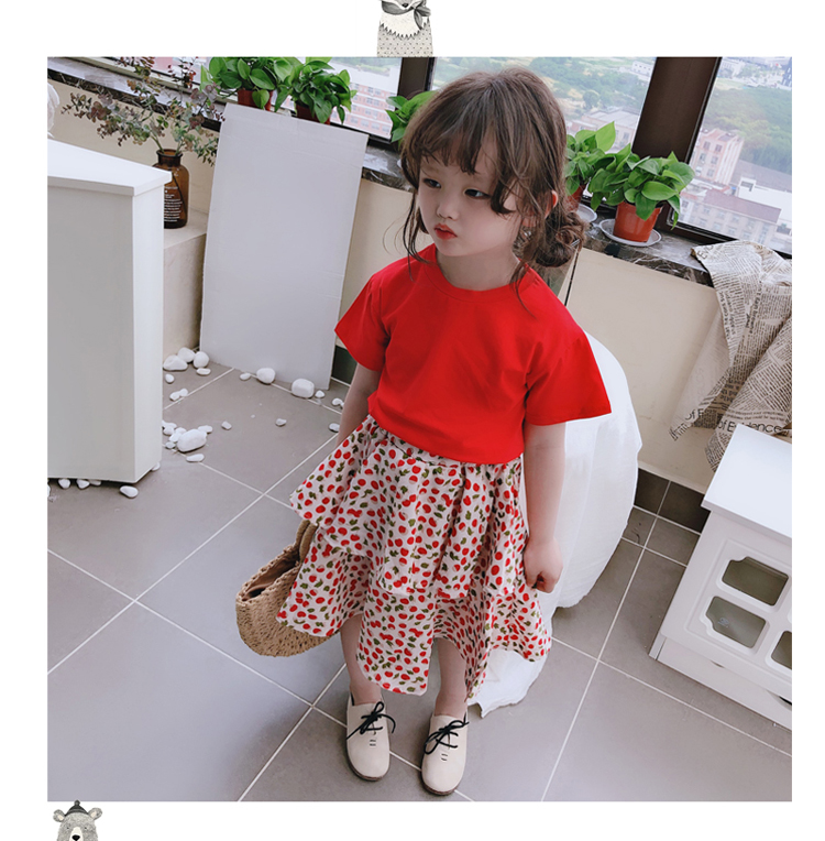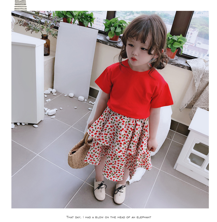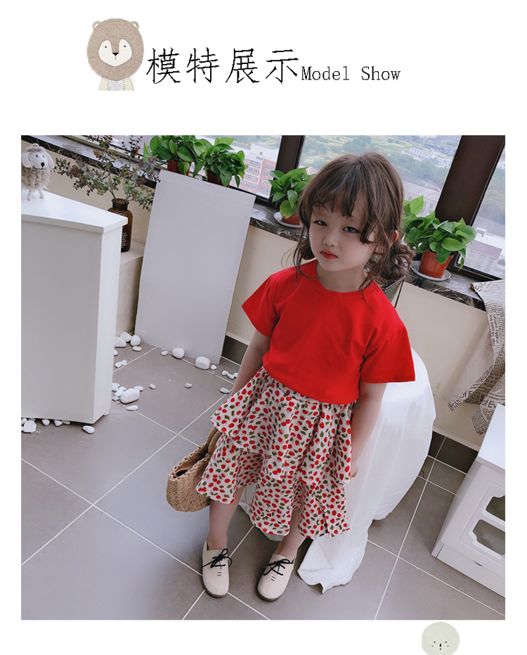 2019夏季新款 女童純色T恤+碎花蛋糕半身裙兩件套 兒童小清新套裝1入