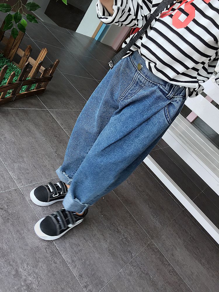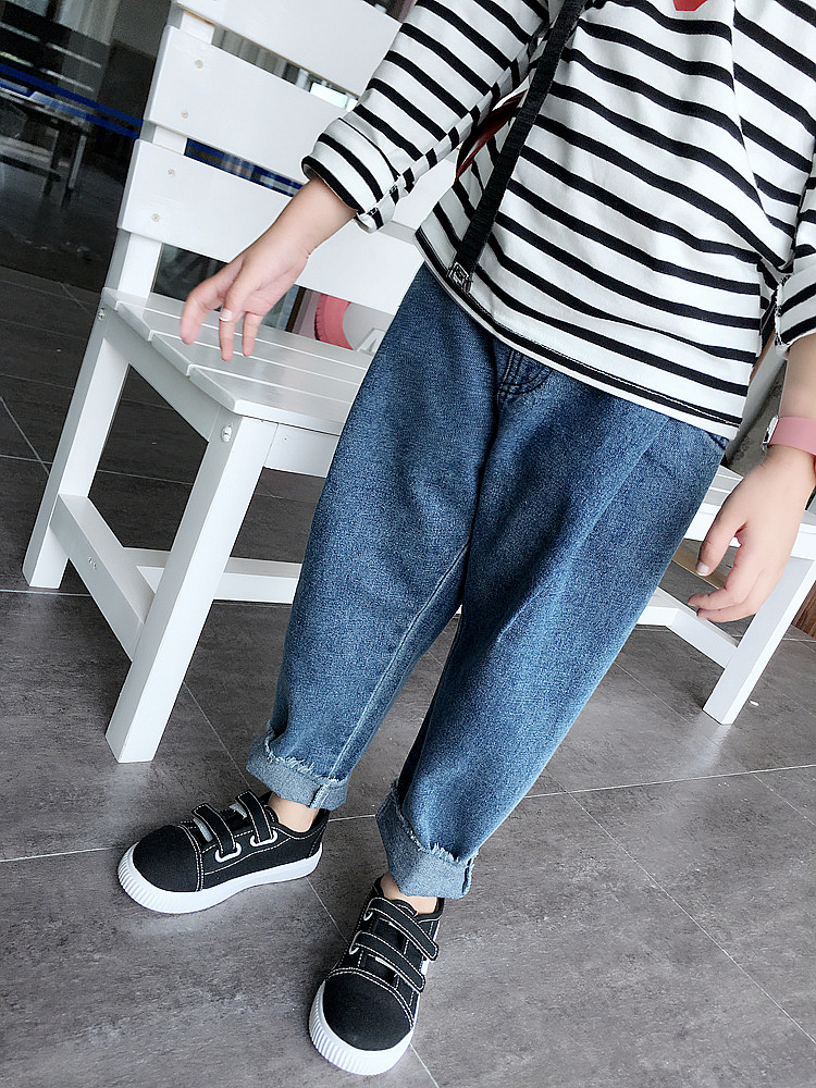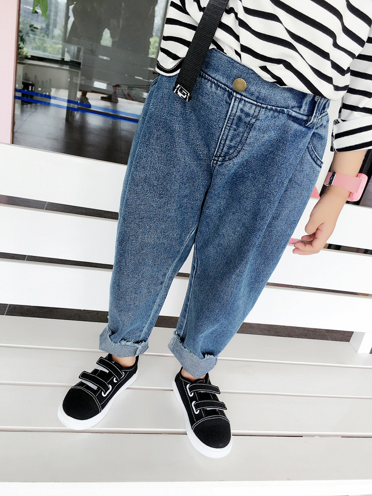 2019秋季新款男女童寶寶簡約兒童牛仔褲 中小童純色個性長褲1入