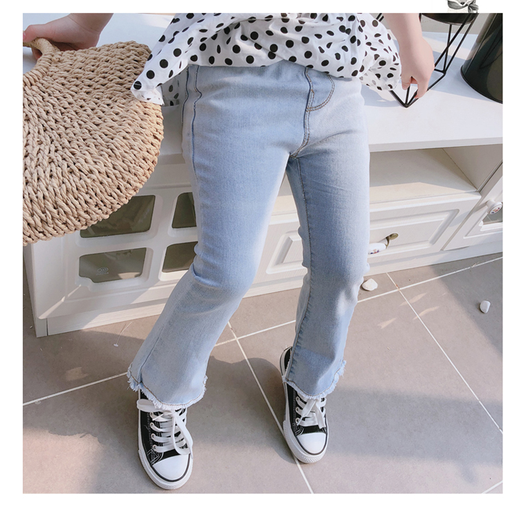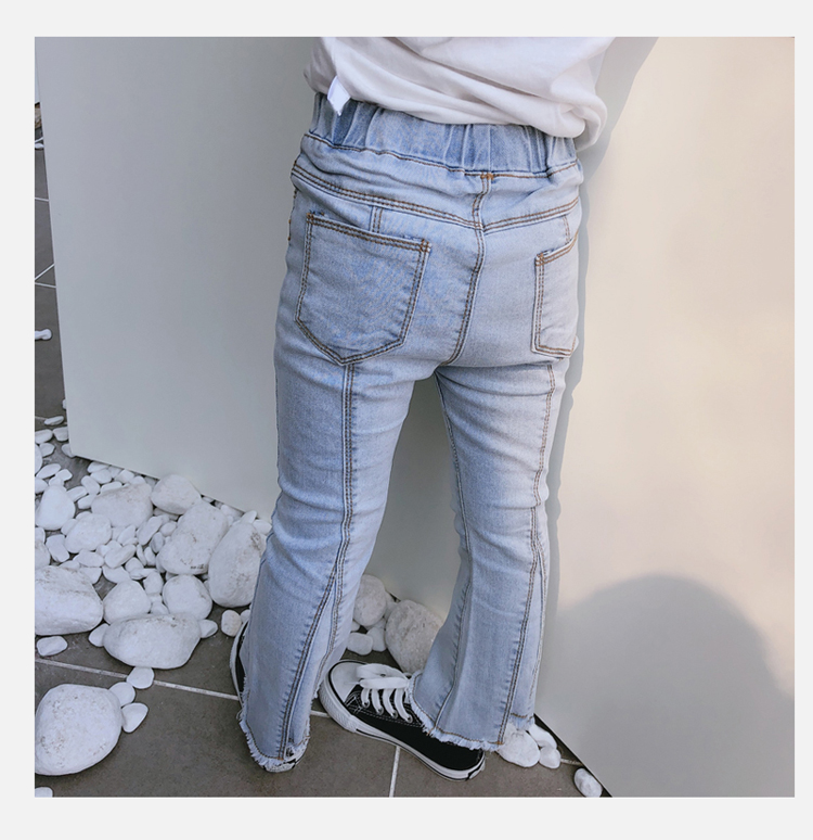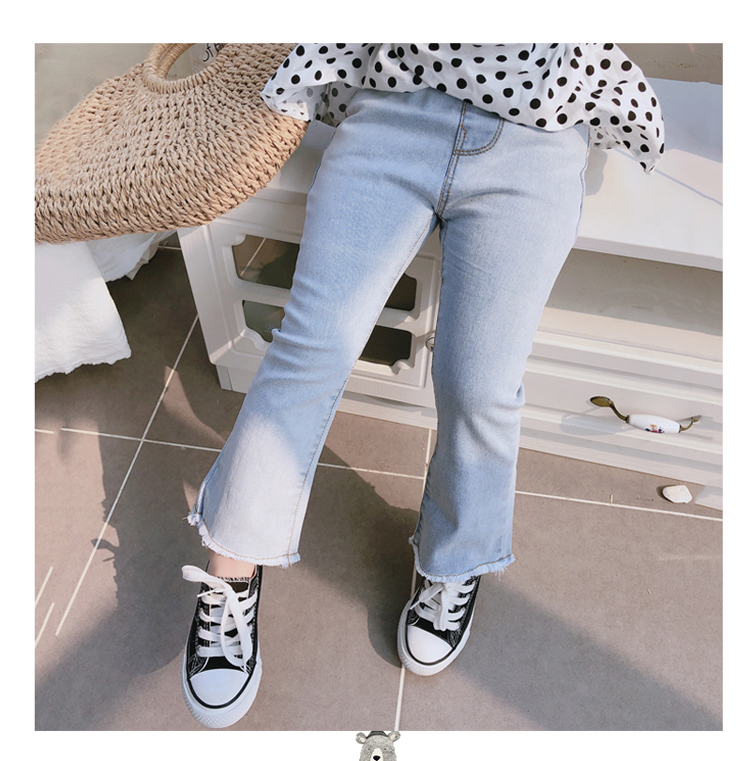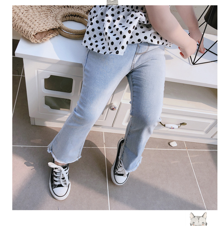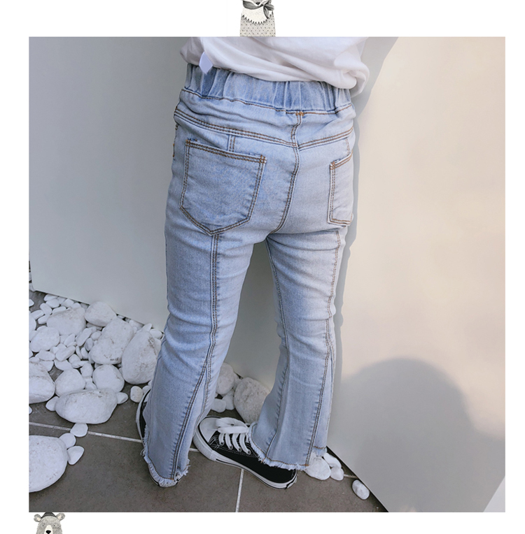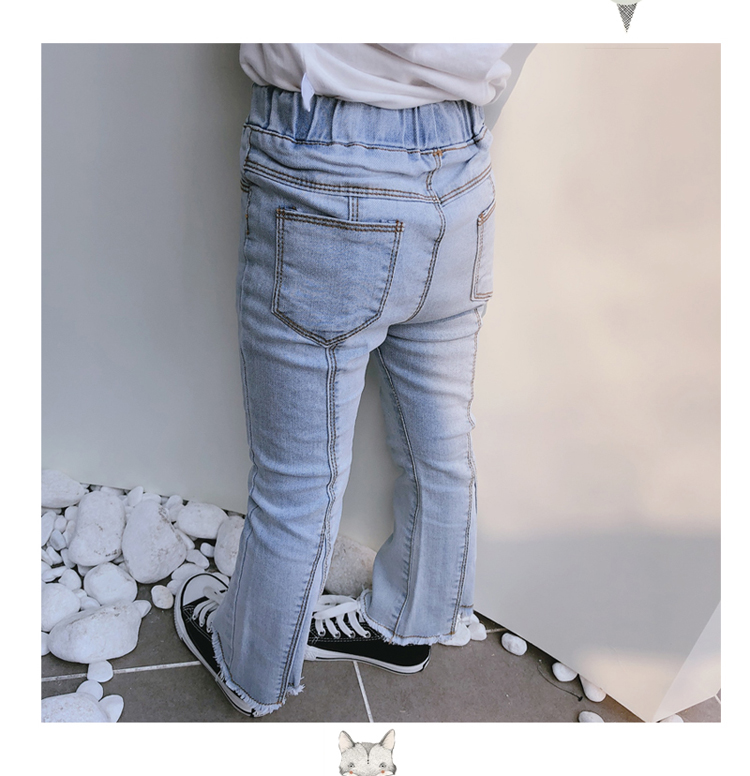 2019童裝夏季新款 女童寶寶流蘇喇叭牛仔褲 中小童個性洋氣休閑褲1入