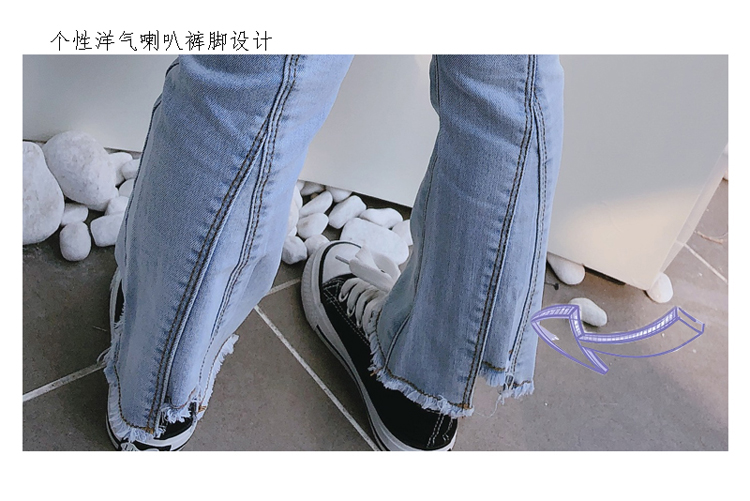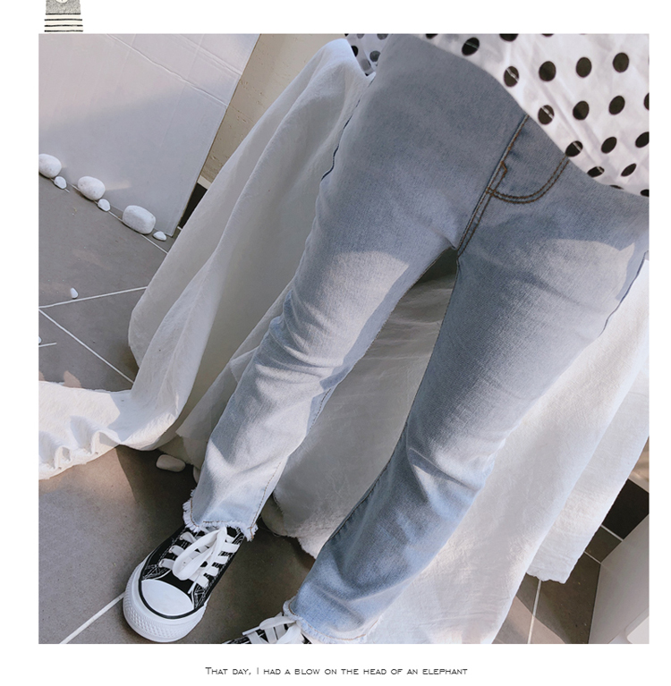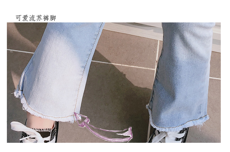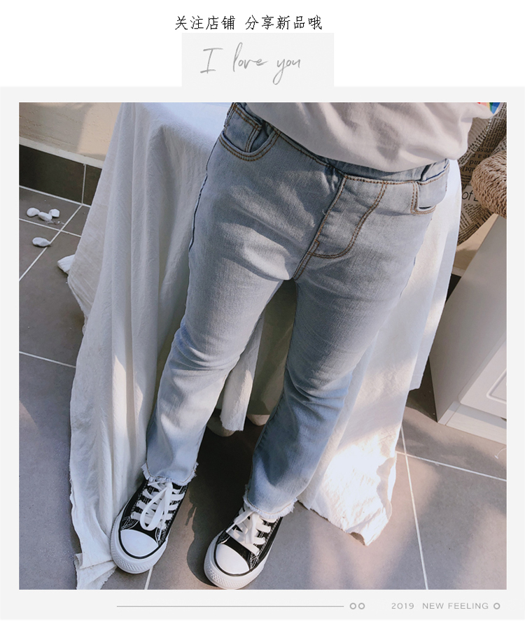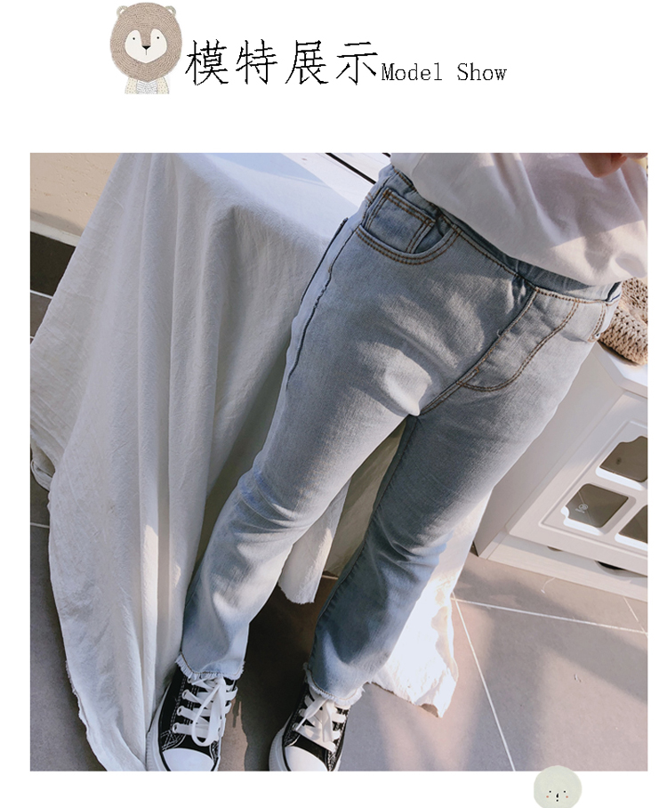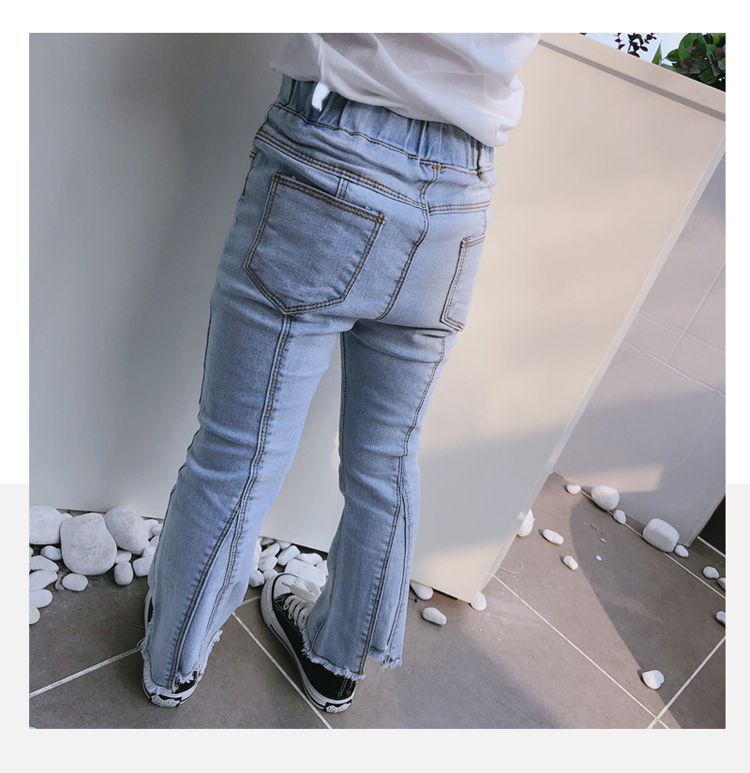 2019童裝夏季新款 女童寶寶流蘇喇叭牛仔褲 中小童個性洋氣休閑褲1入
