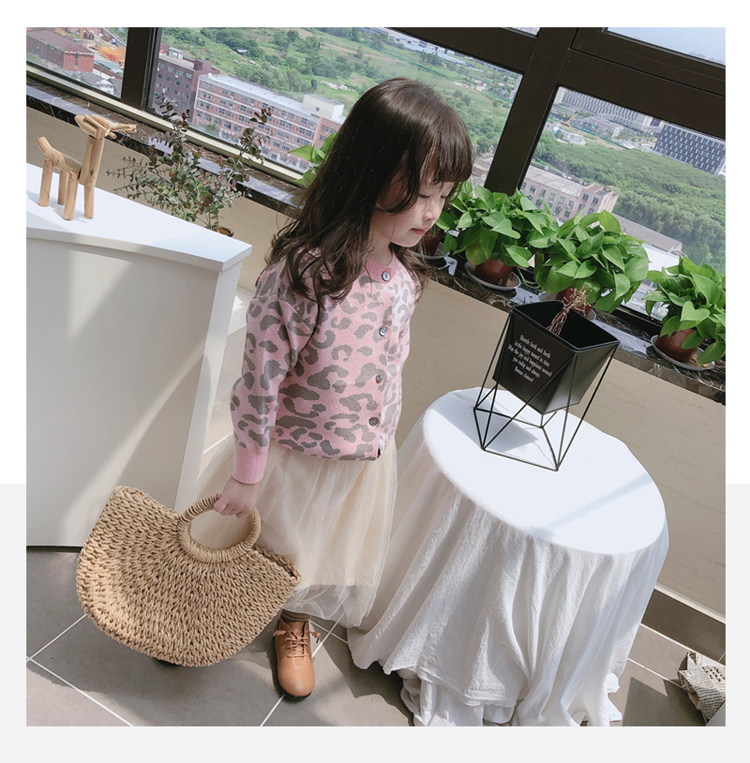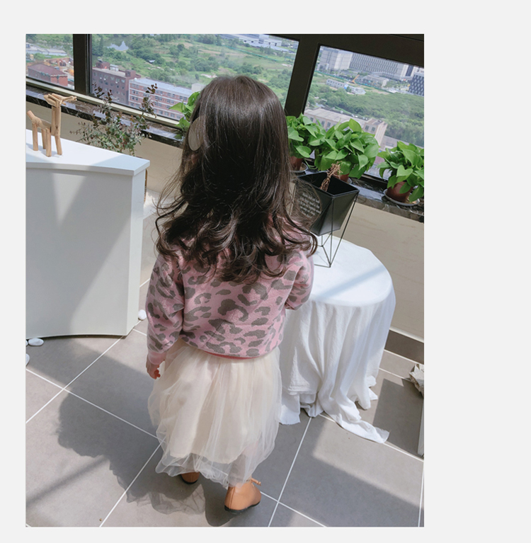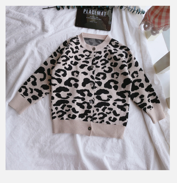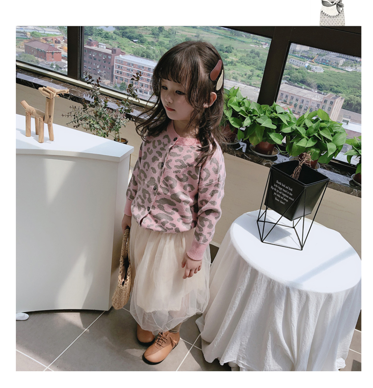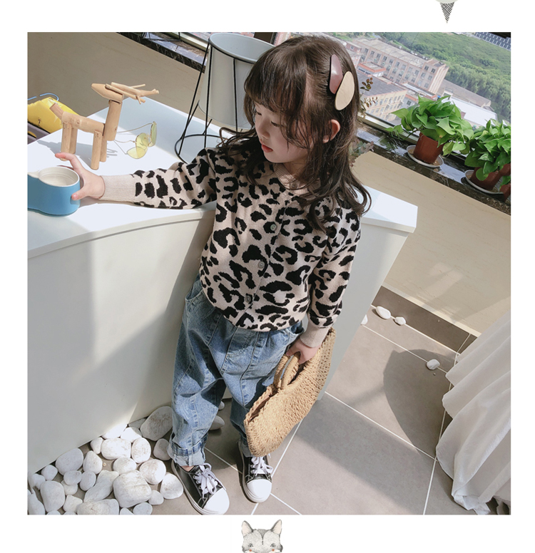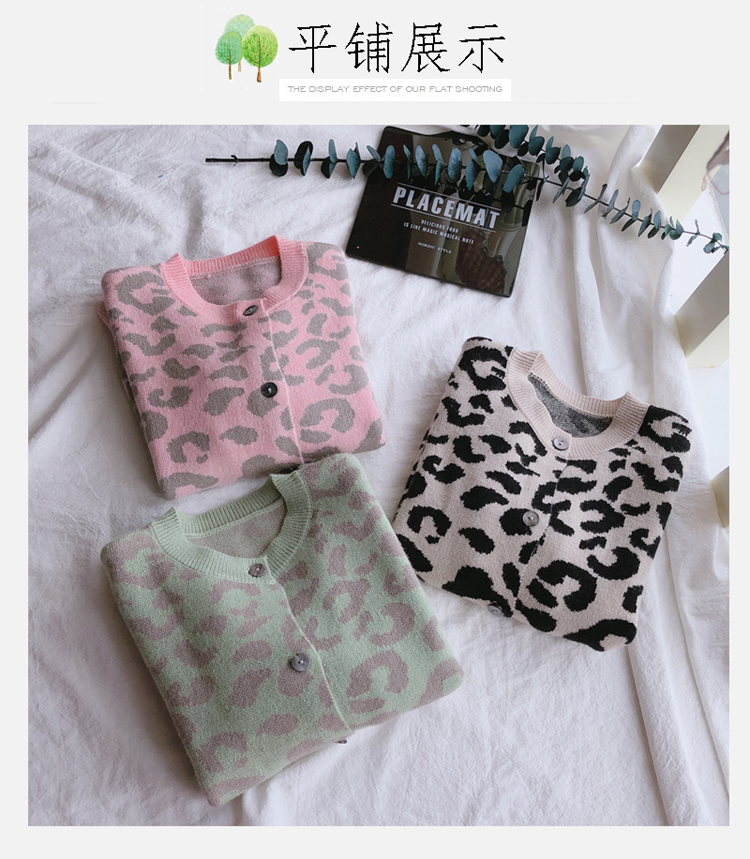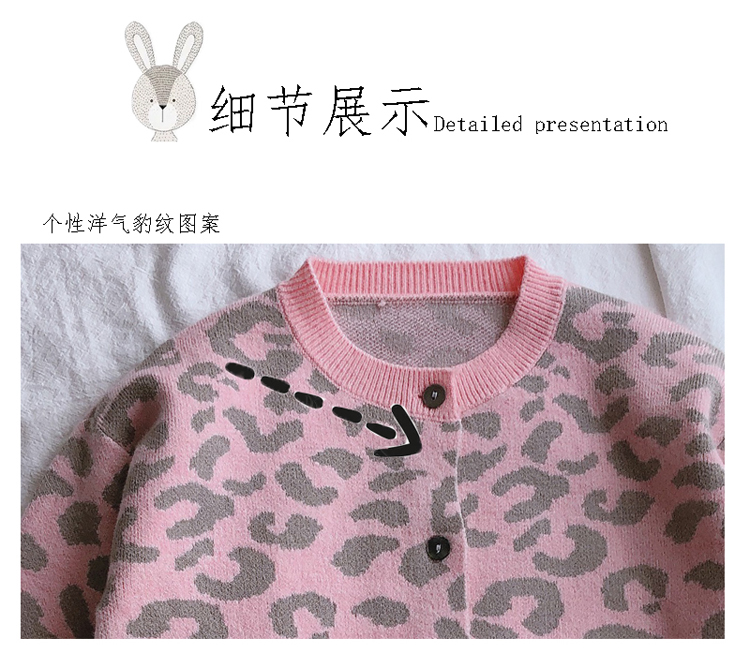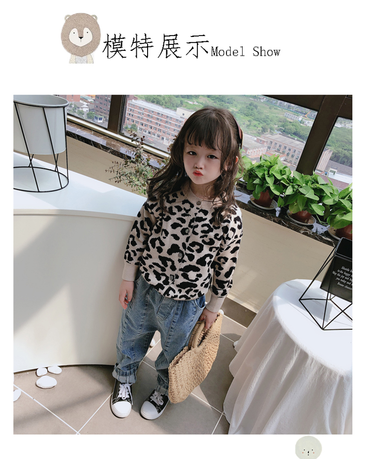 2019春秋季新款 女童寶寶豹紋毛衣外套 兒童甜美針織衫開衫上衣1入