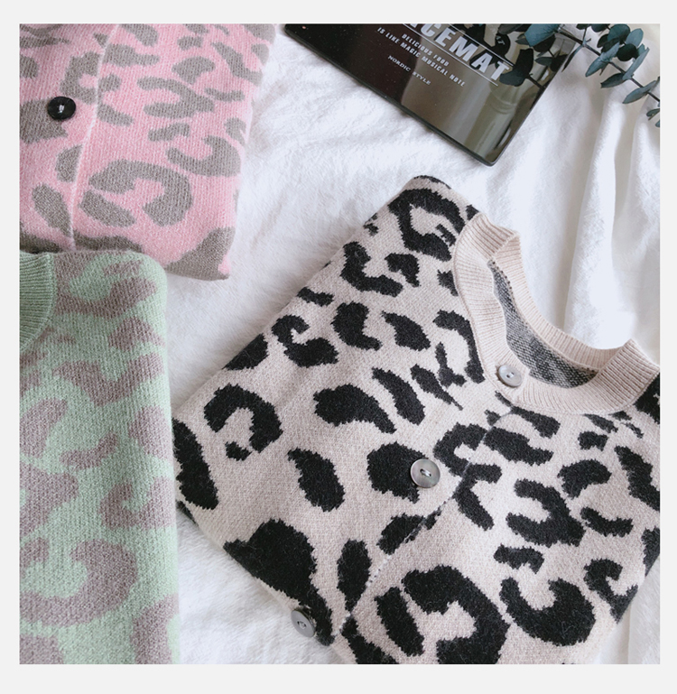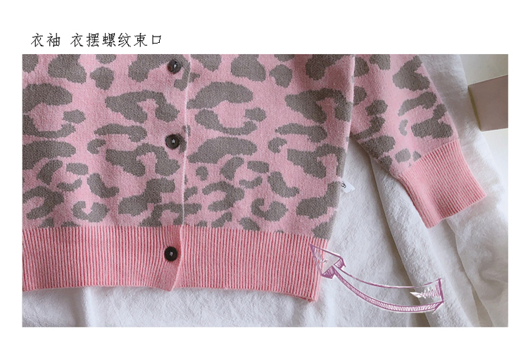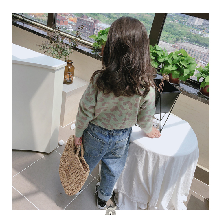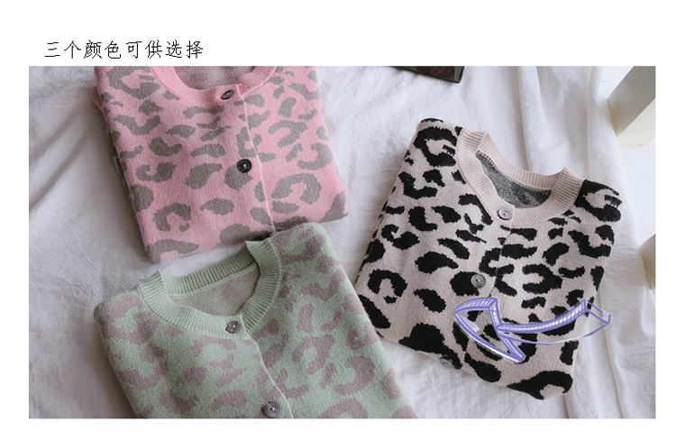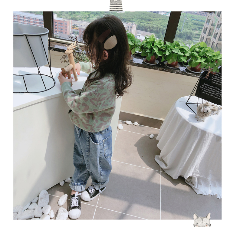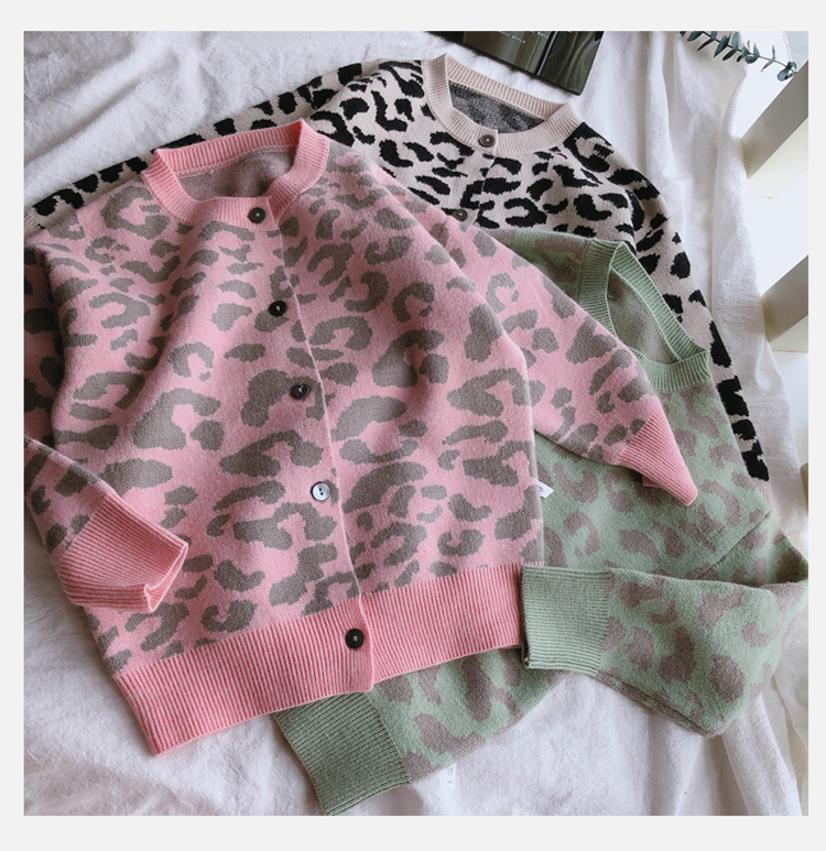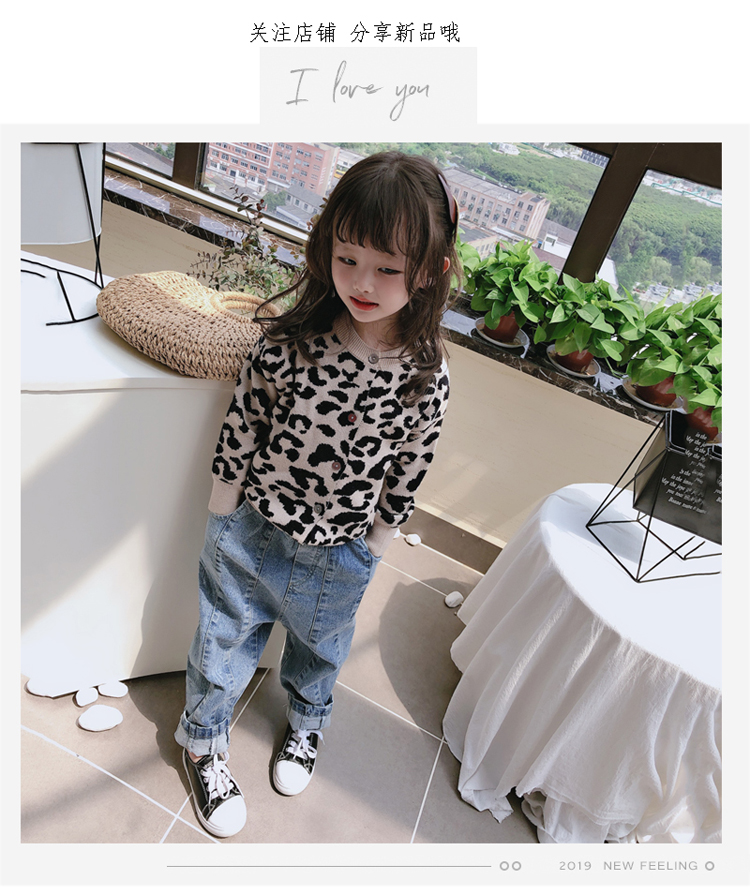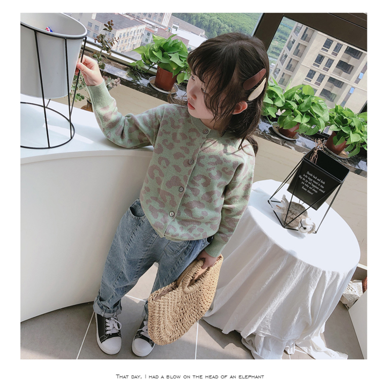 2019春秋季新款 女童寶寶豹紋毛衣外套 兒童甜美針織衫開衫上衣1入