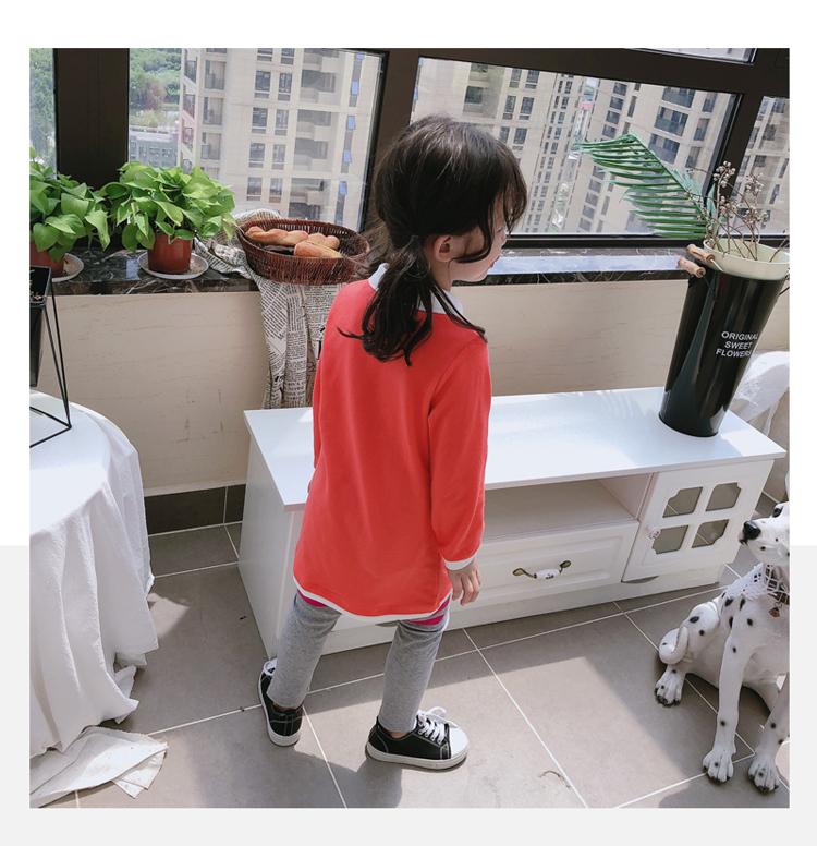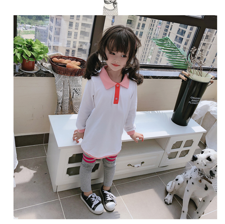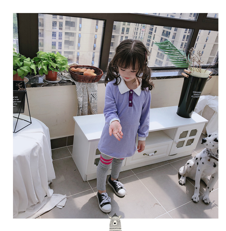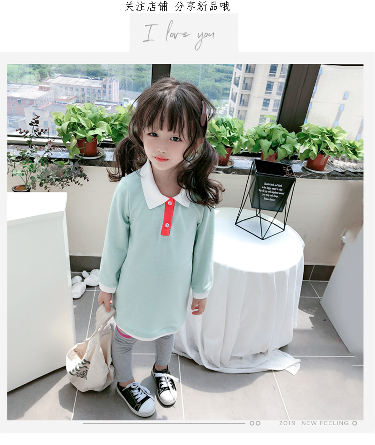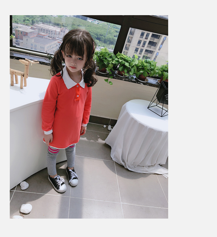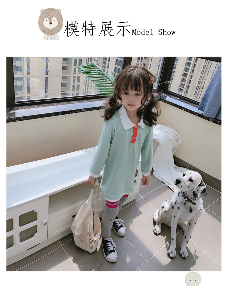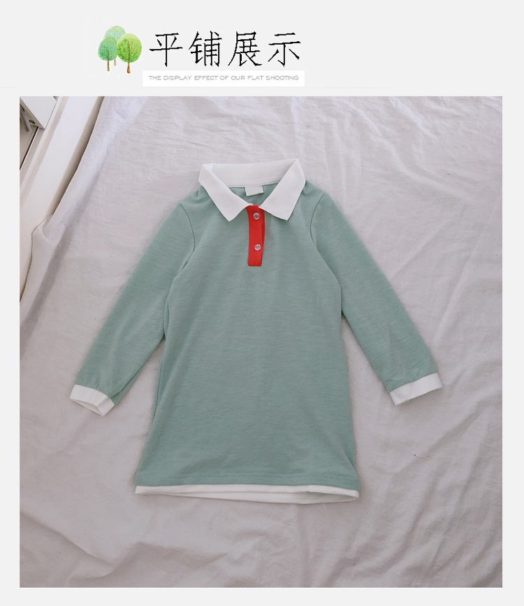 2019秋季新款 中小童甜美風童裙 女童寶寶翻領糖果色長袖連衣裙1入