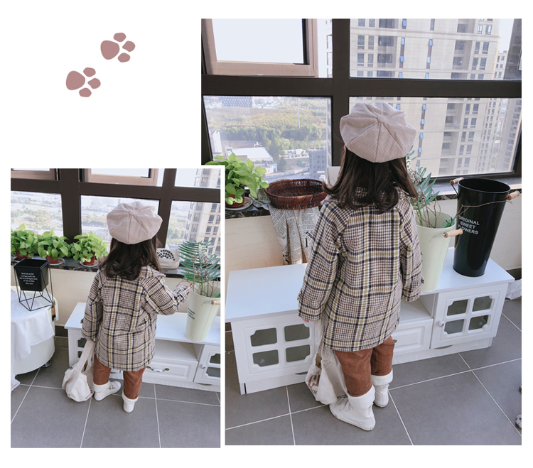 2019冬季新款 女童寶寶氣質中長款上衣衣 中小童格子毛絨翻領外套1入