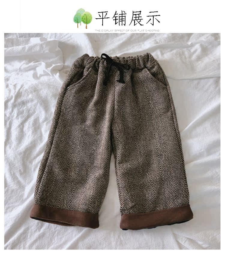 2019冬季新款 中小童簡約寬松加絨加厚褲子 女童舒適拼接款休閑褲1入