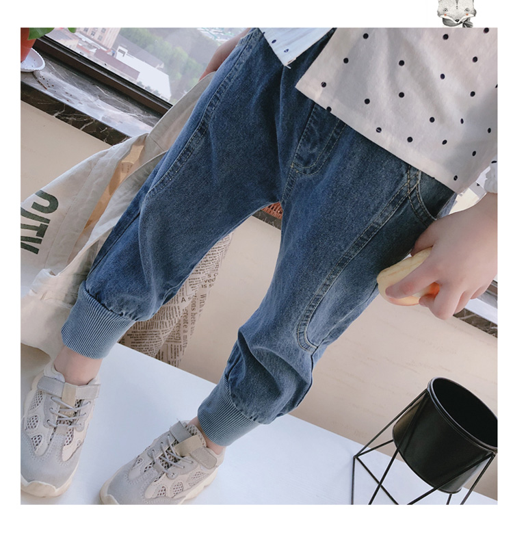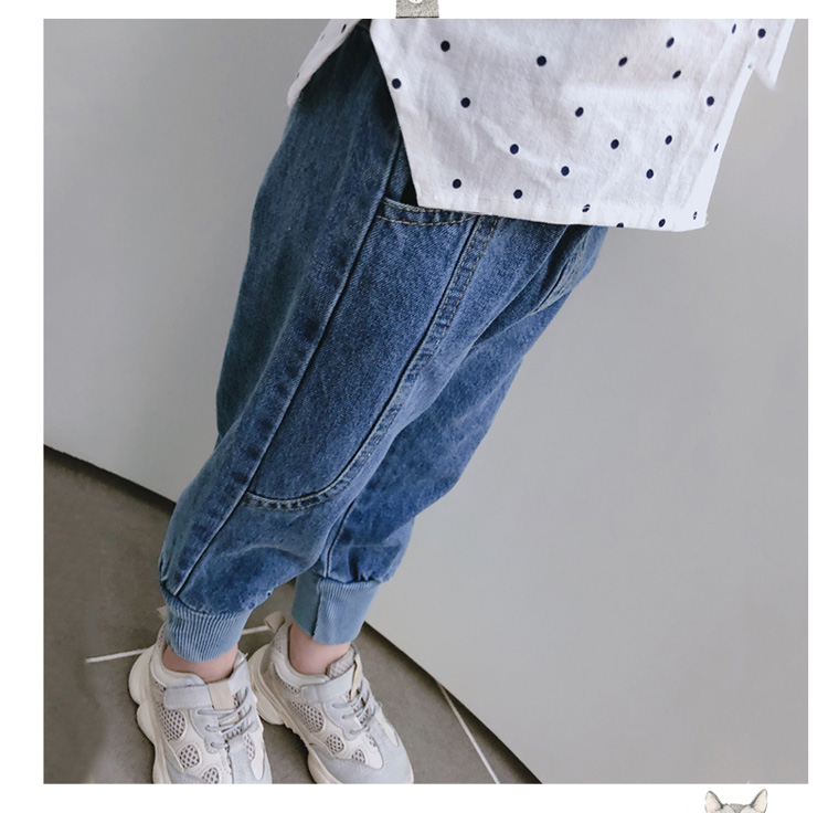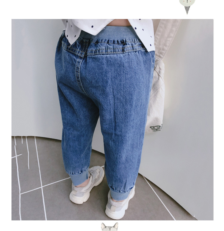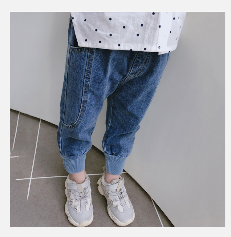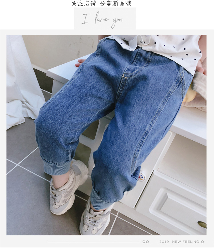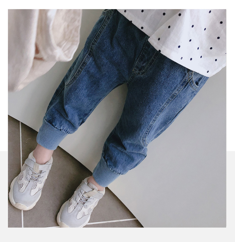 2019童裝夏季新款 中小童螺紋收口休閑褲 男女童寶寶帥氣牛仔褲1入