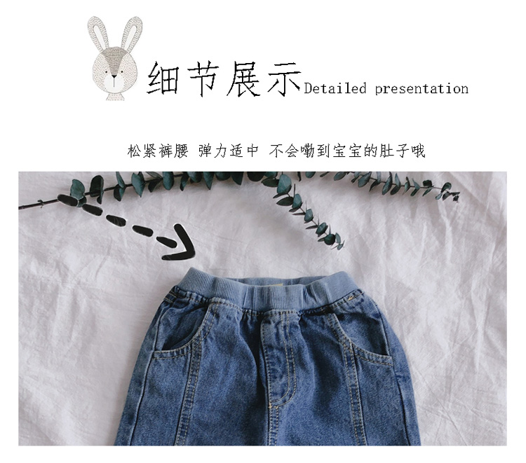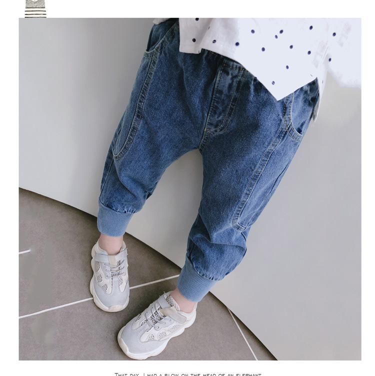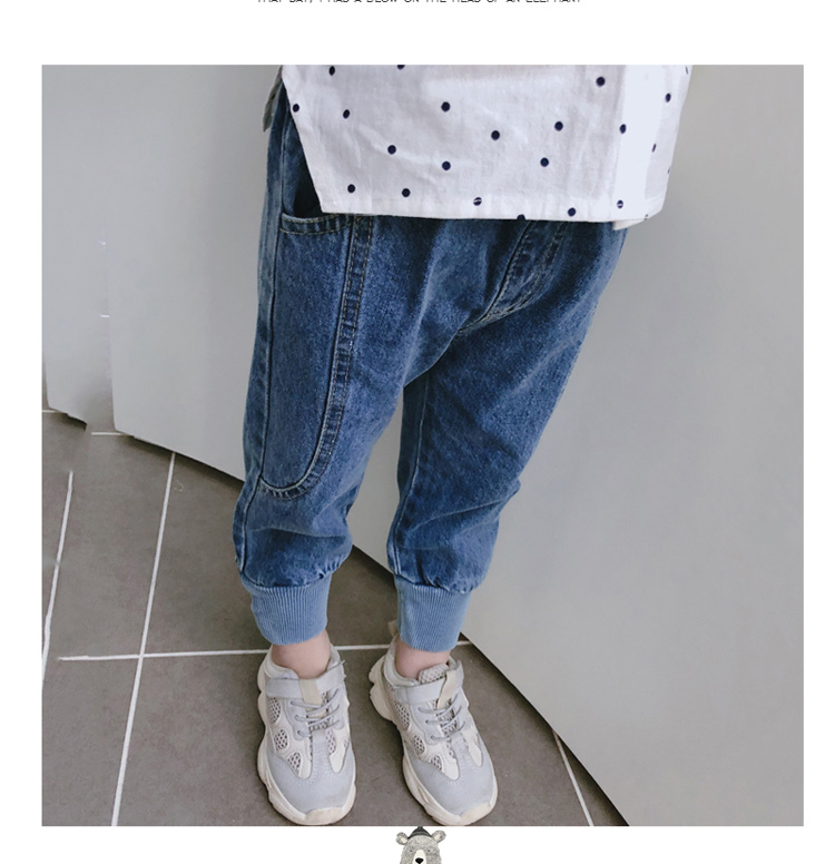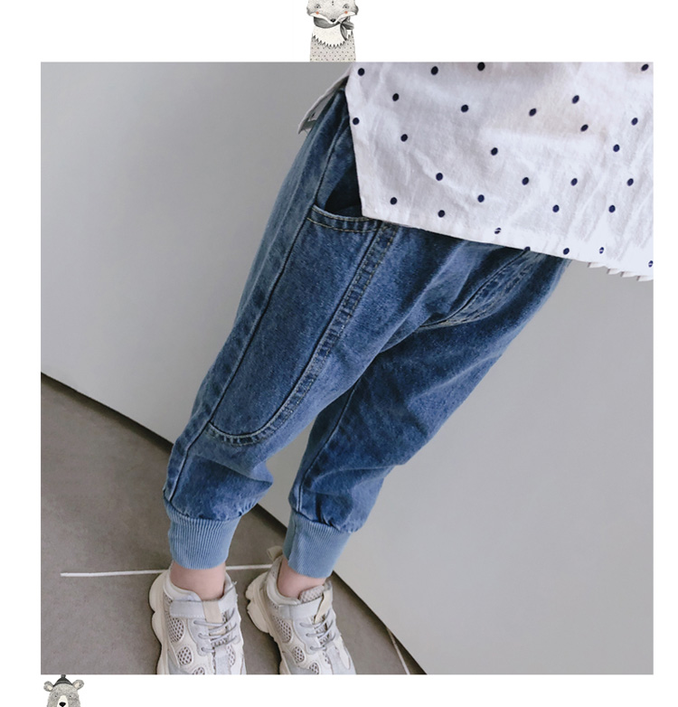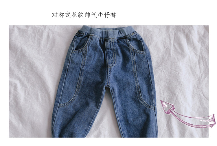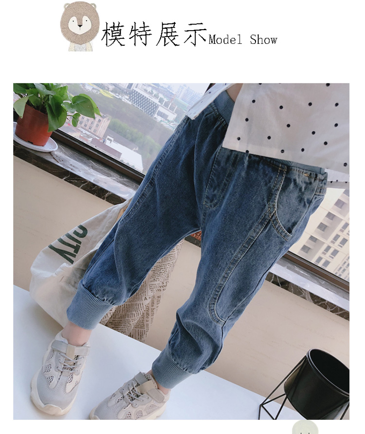 2019童裝夏季新款 中小童螺紋收口休閑褲 男女童寶寶帥氣牛仔褲1入