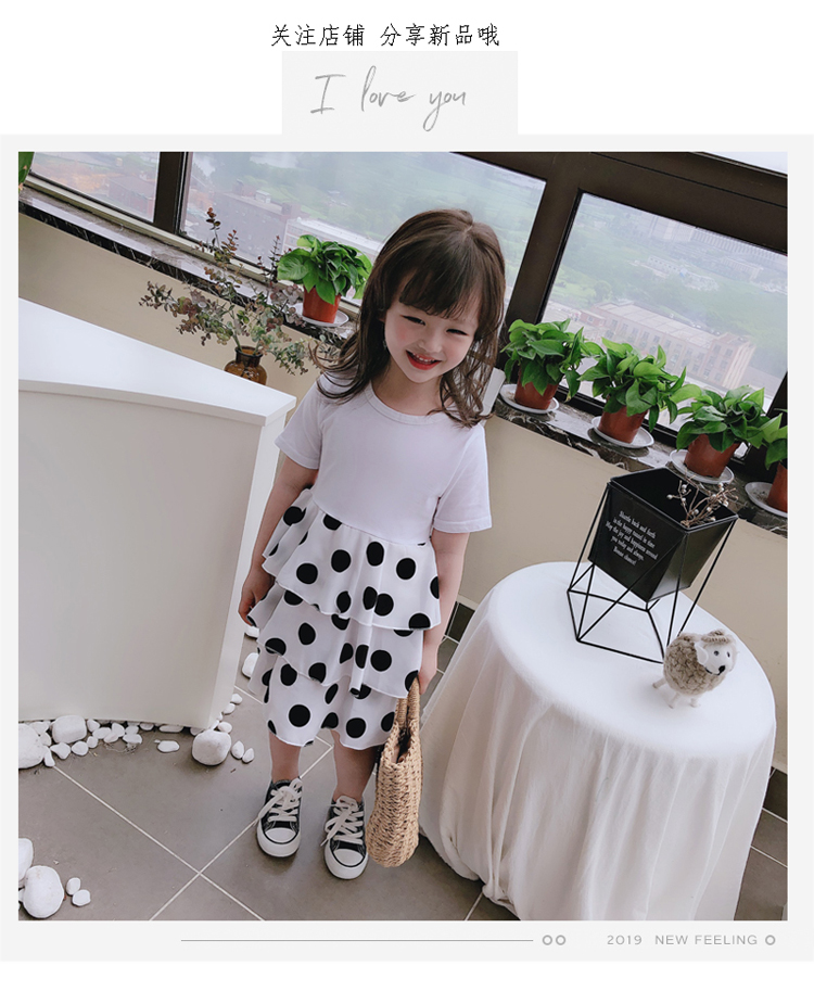 2019夏季新款女童可愛甜美圓點連衣裙 中小童個性洋氣拼接蛋糕裙1入