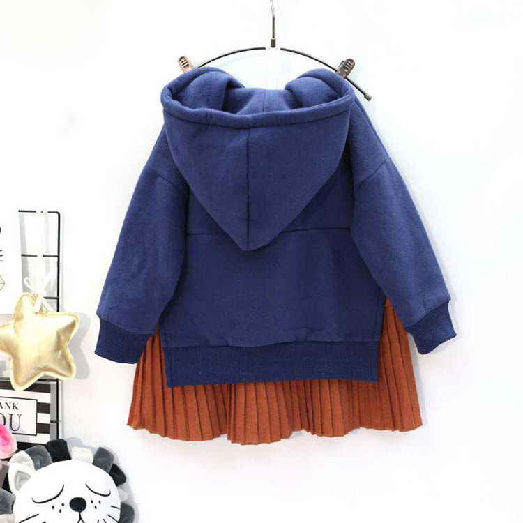 2018女童春秋季運動風連衣裙 中小童連帽衛衣半身裙假兩件童裙潮1入