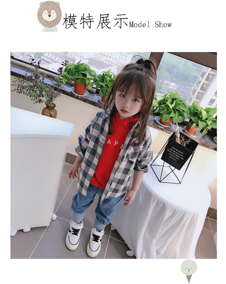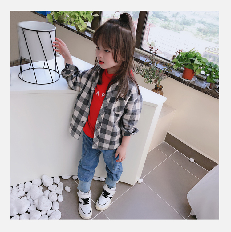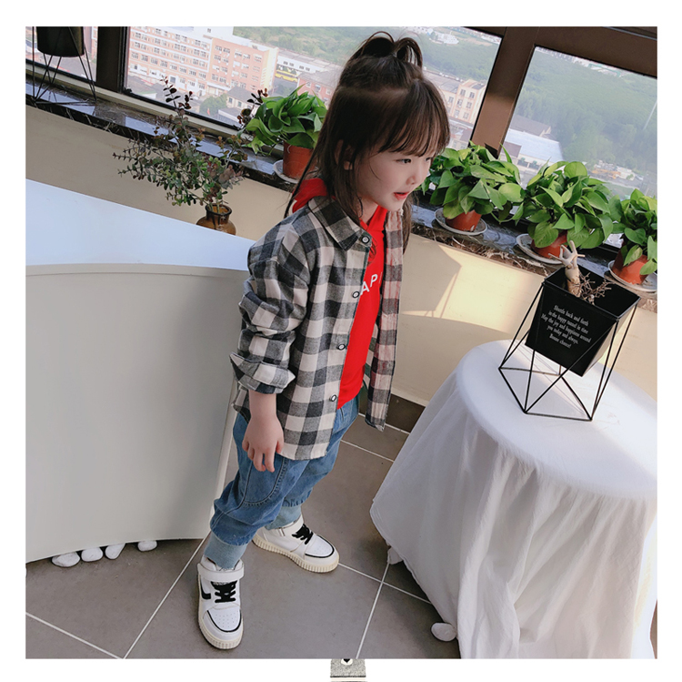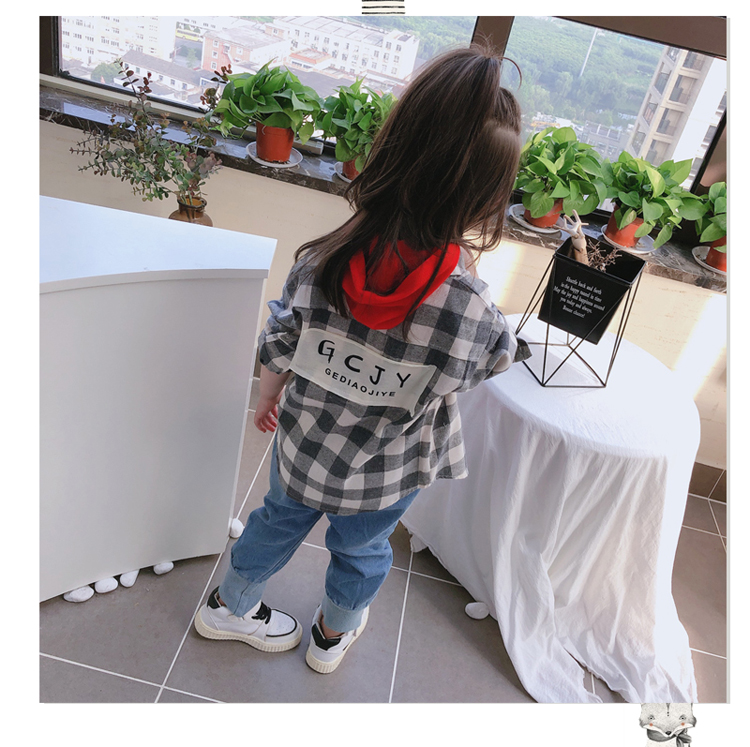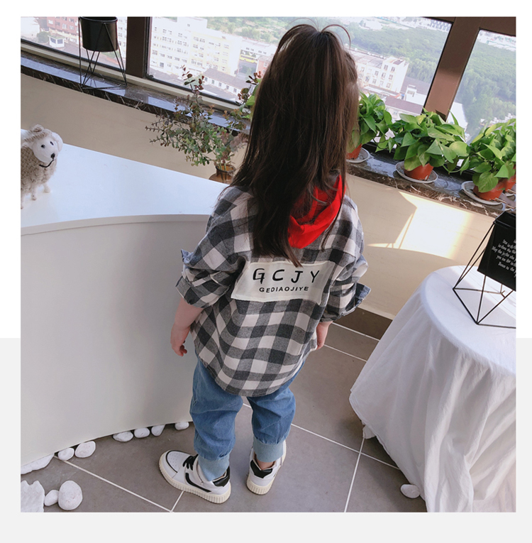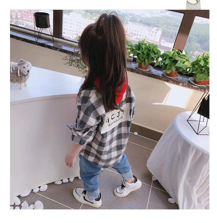 2019春秋季 男女童寶寶字母印花襯衫 中小童簡約立領格子上衣1入