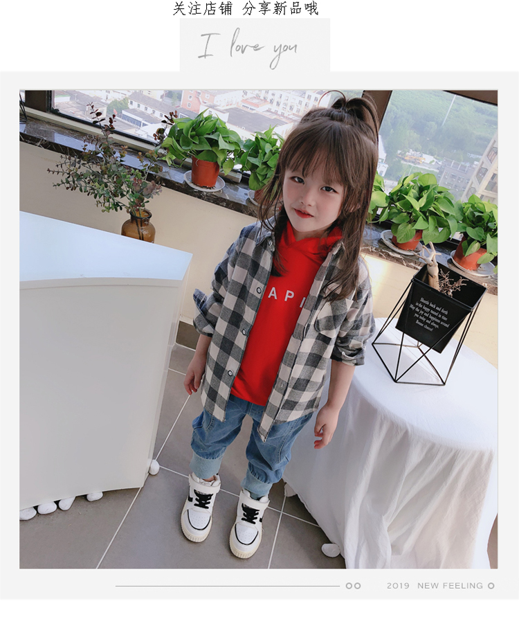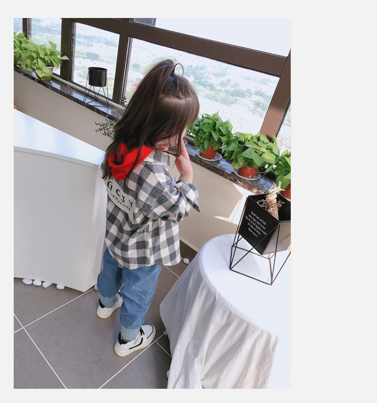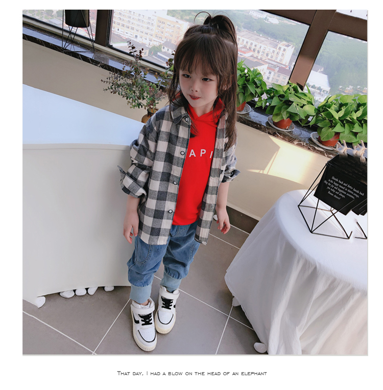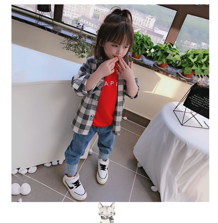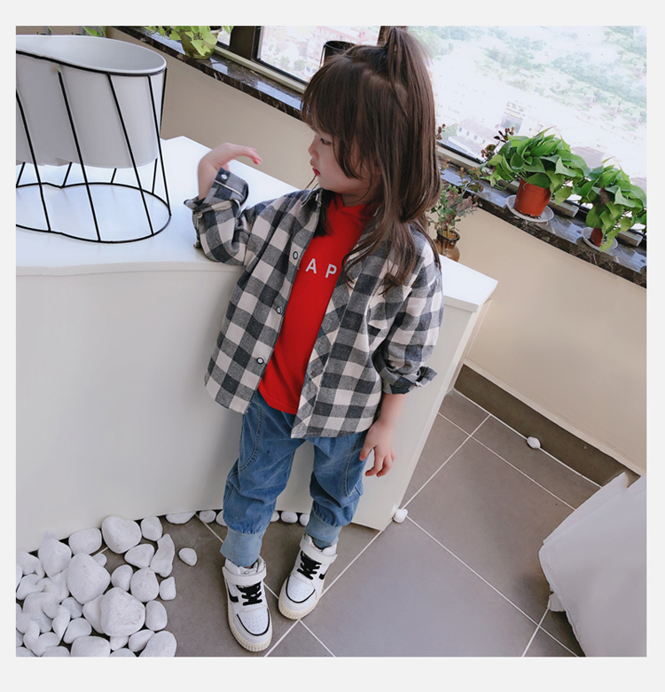 2019春秋季 男女童寶寶字母印花襯衫 中小童簡約立領格子上衣1入