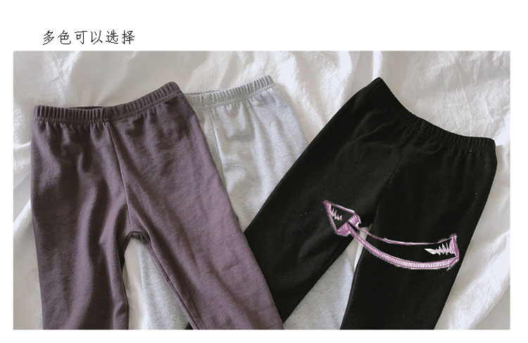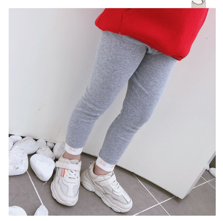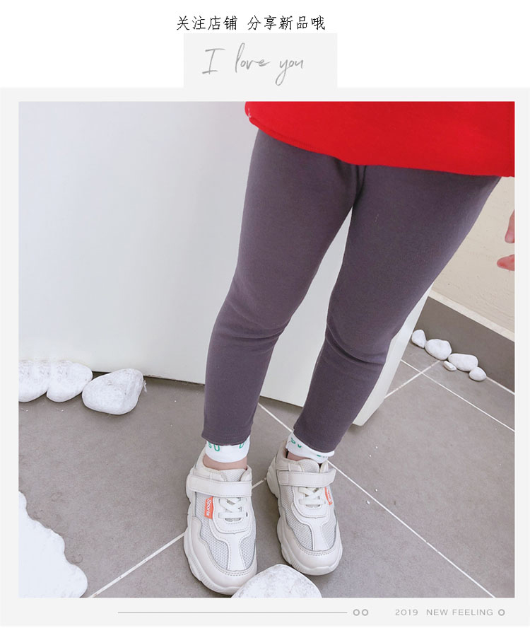 2019中小童春秋季新款 女童褲腳拼接款純色緊身褲 舒適修身打底褲1入