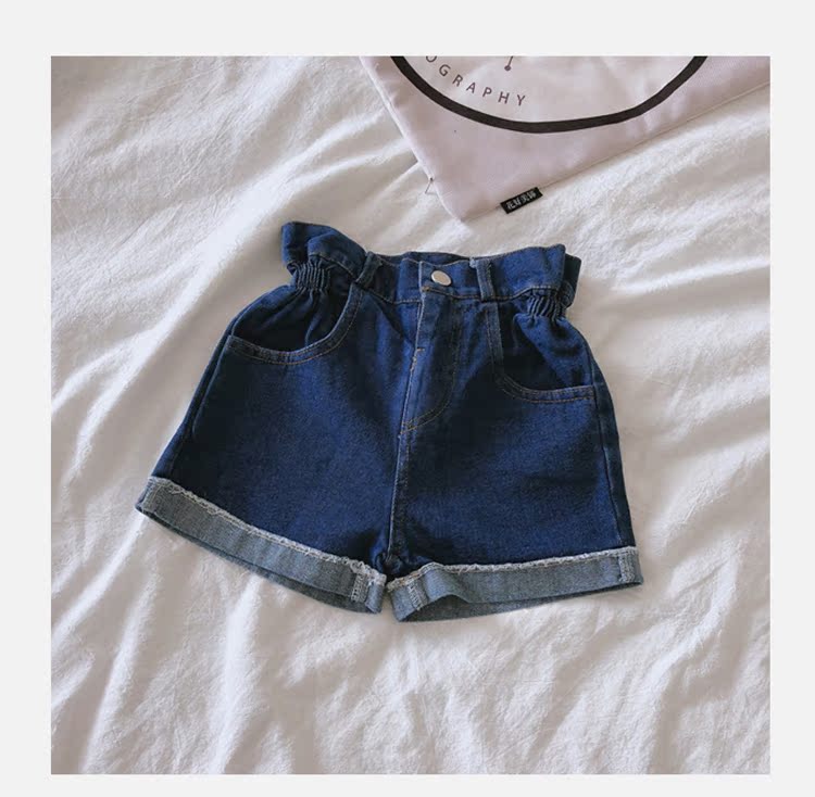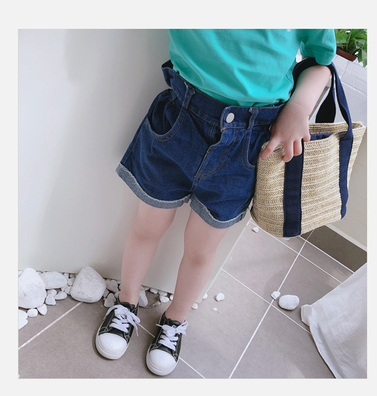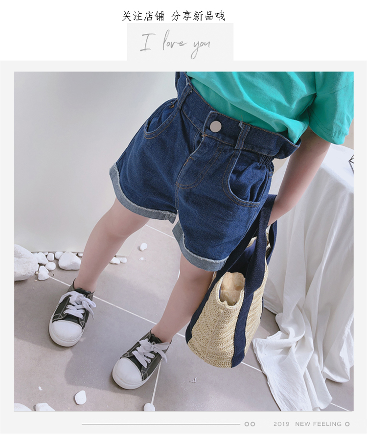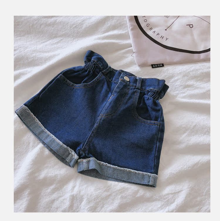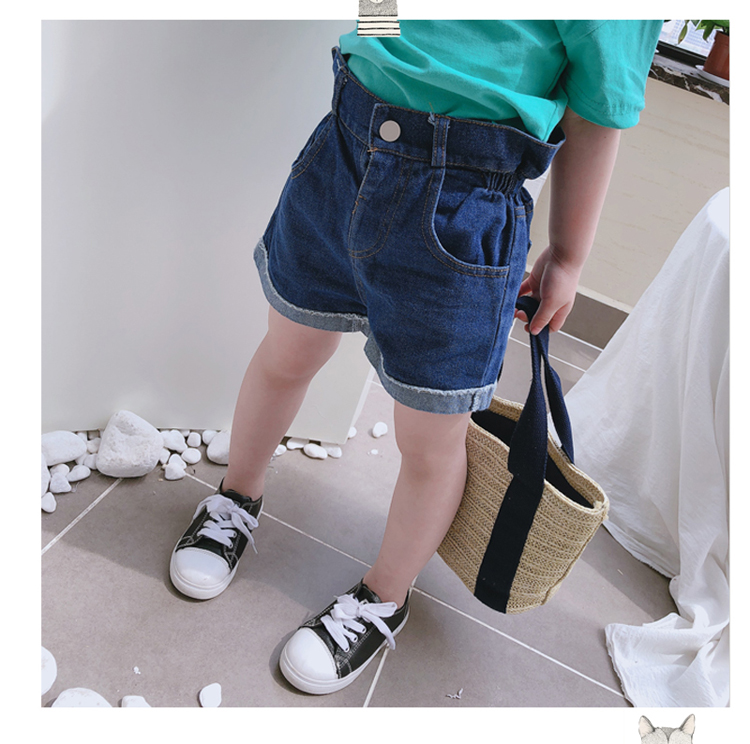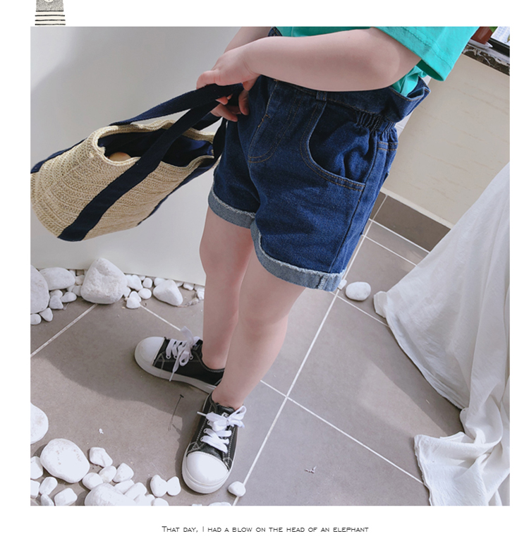 2019新款夏裝 中小童潮流寬松百搭休閑褲 女童顯瘦深色牛仔短褲1入