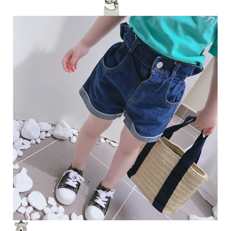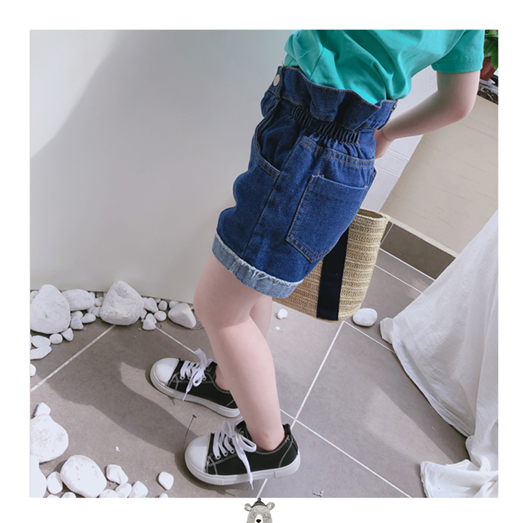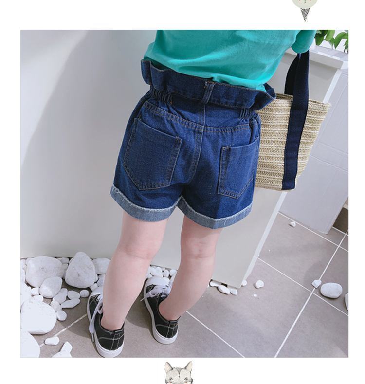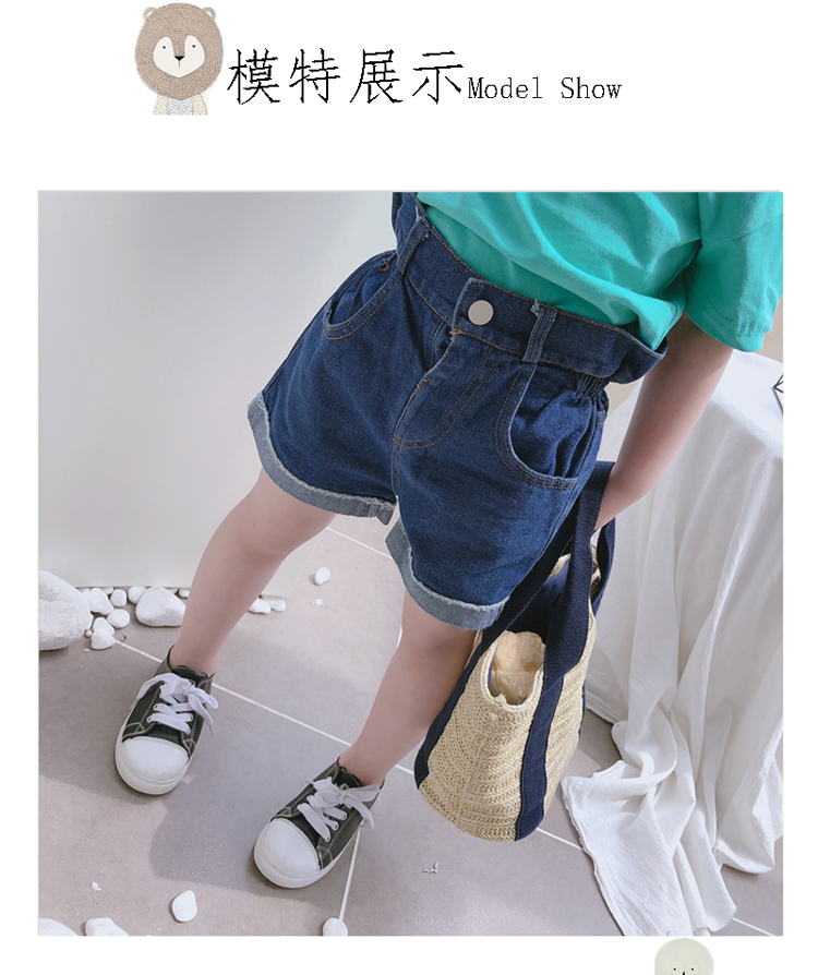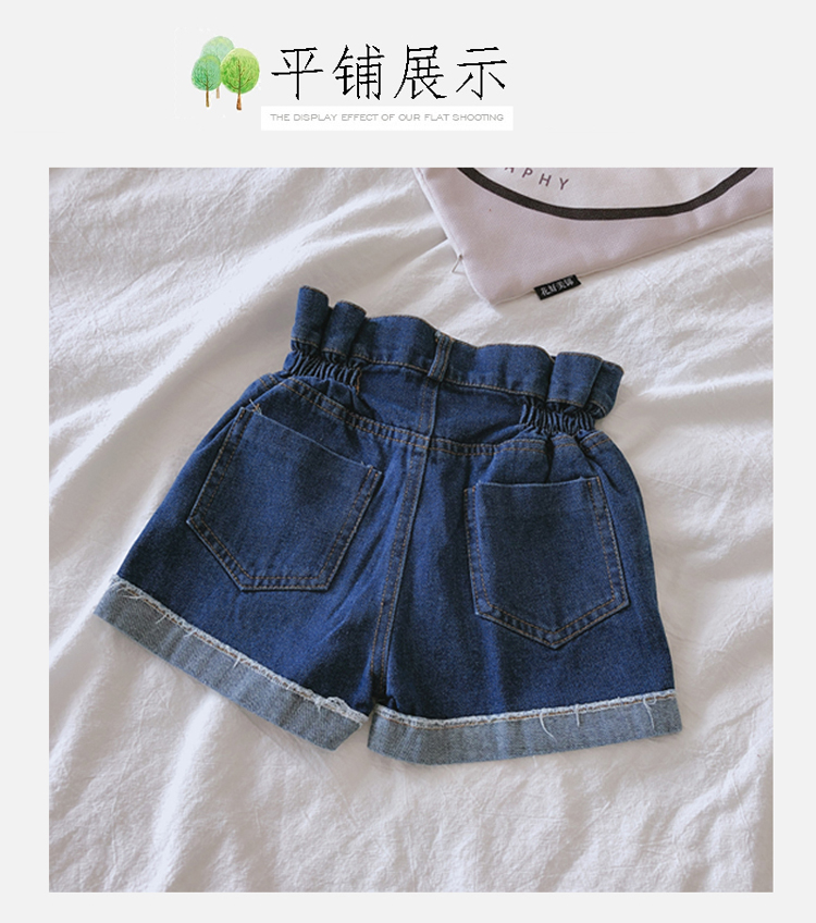 2019新款夏裝 中小童潮流寬松百搭休閑褲 女童顯瘦深色牛仔短褲1入