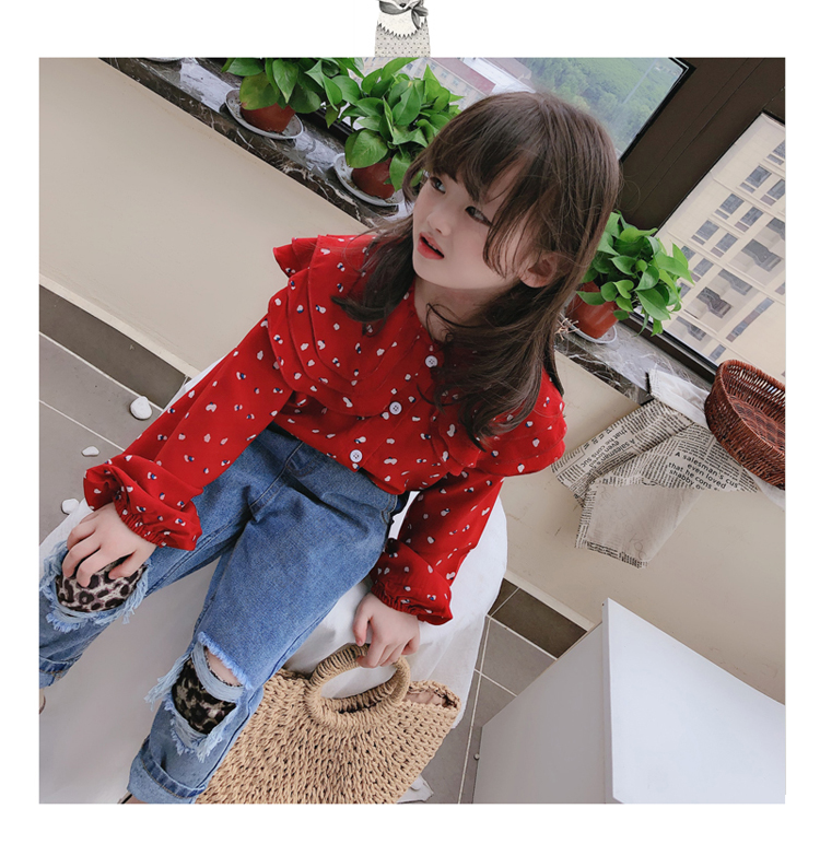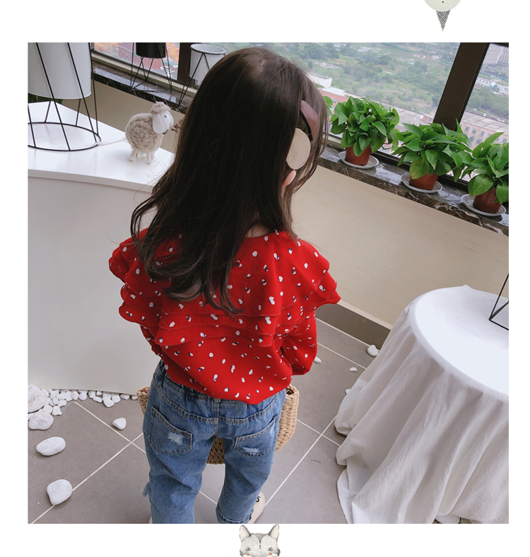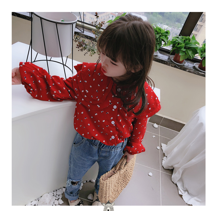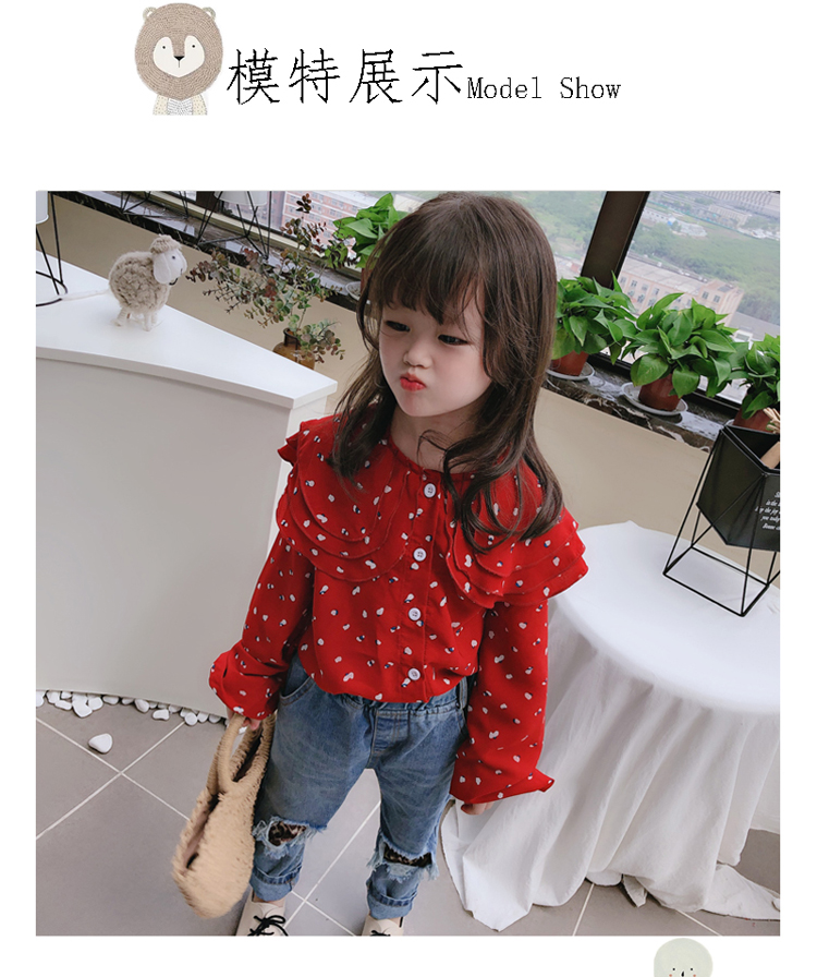 2019春秋季新款 女童可愛甜美印花小清新襯衫 中小童個性翻領上衣1入