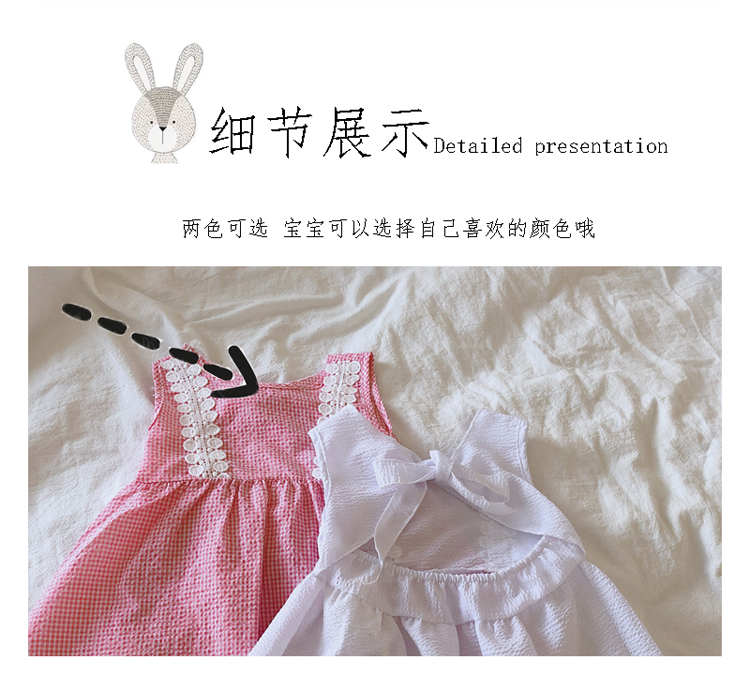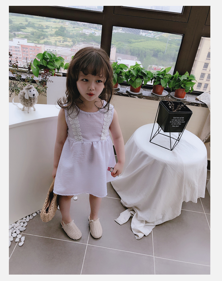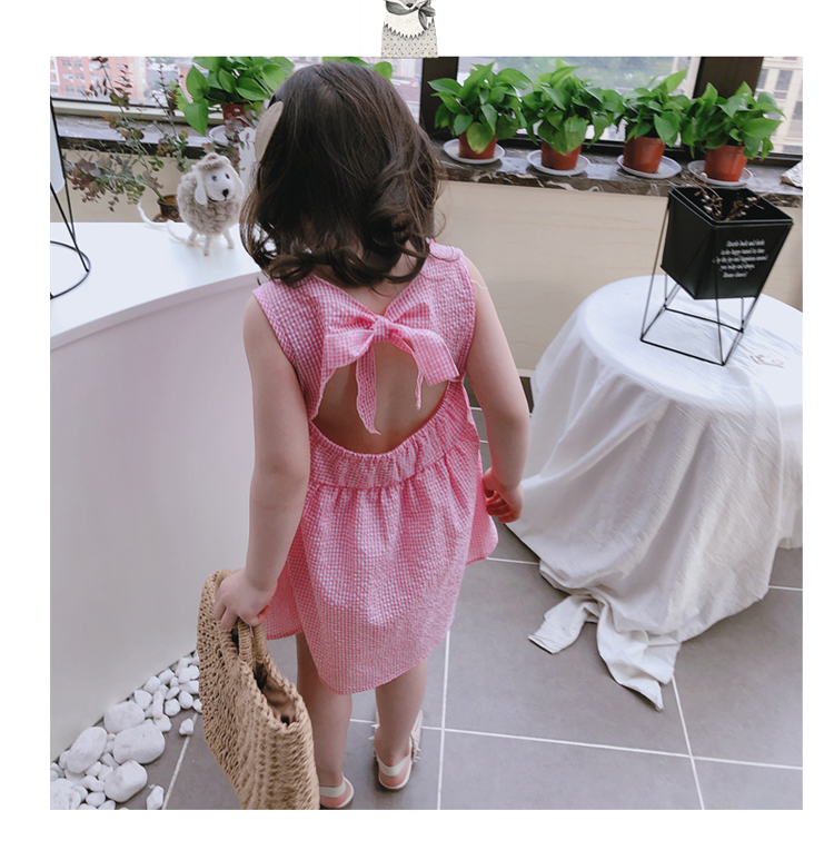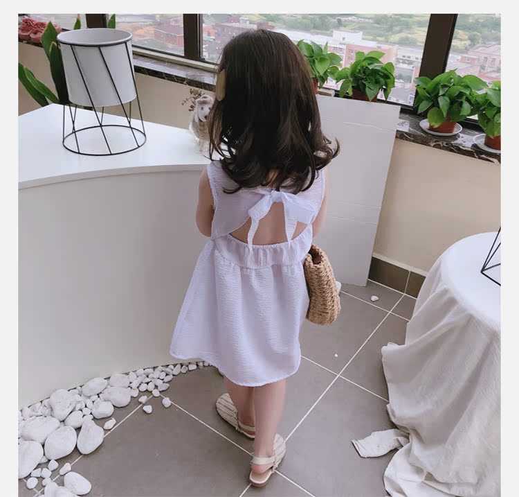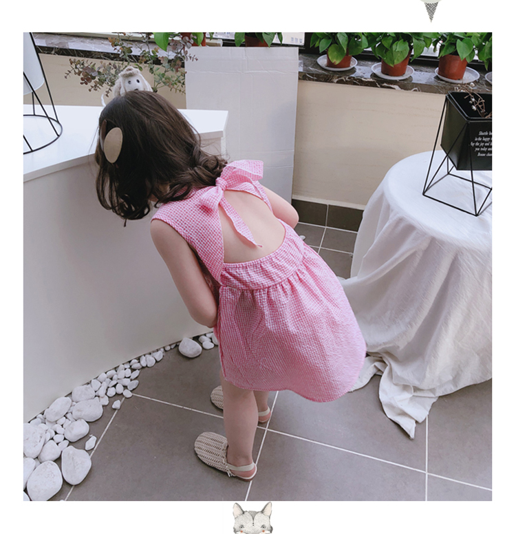 2019夏季新款 中小童無袖花邊露背連衣裙 女童寶寶小清新公主裙1入