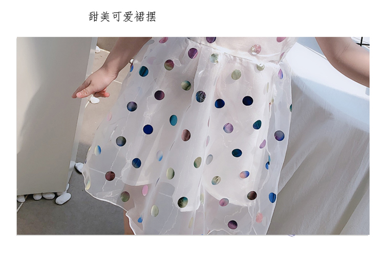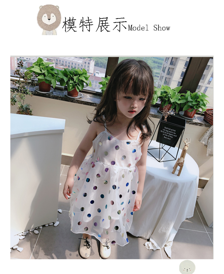 2019兒童夏季新款小清新波點吊帶裙 女童寶寶甜美可愛網紗公主裙1入
