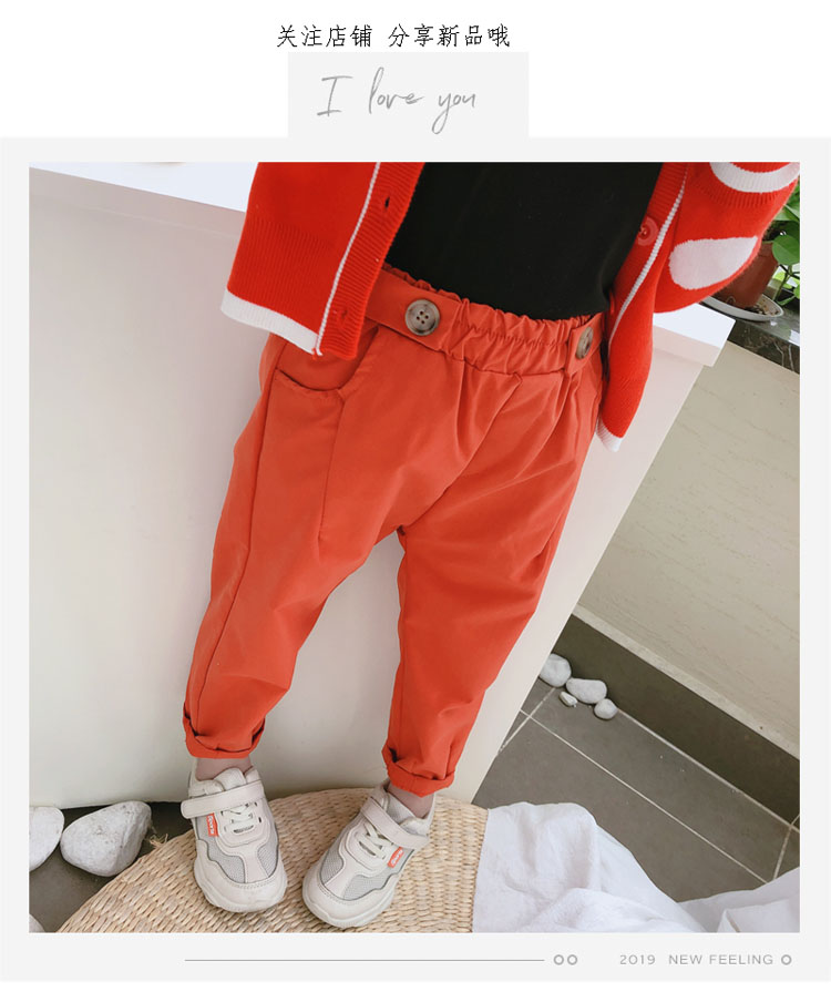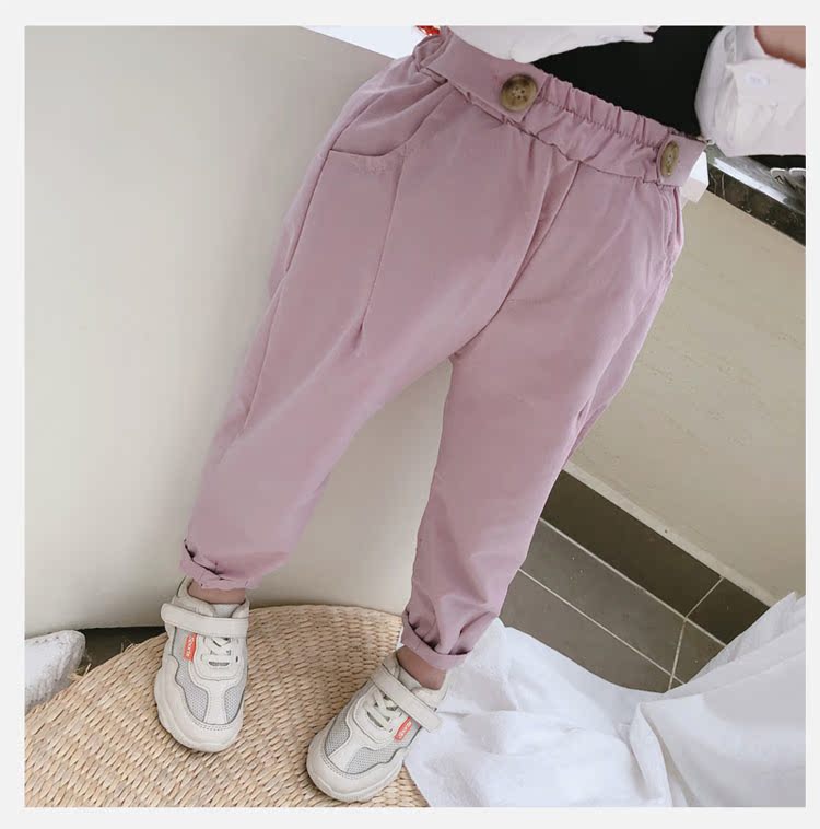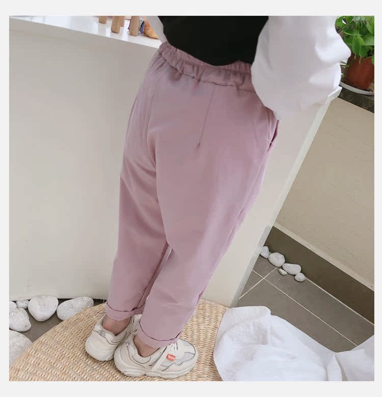 2019春秋季新款 男女童舒適休閑長褲 中小童帥氣寬松純色哈倫褲1入