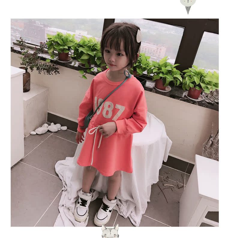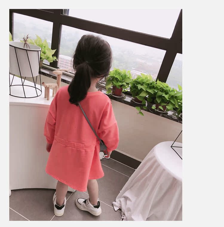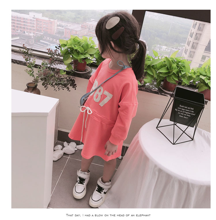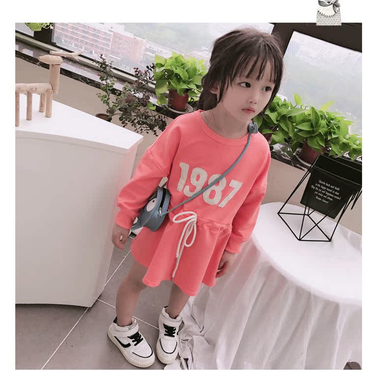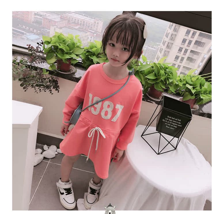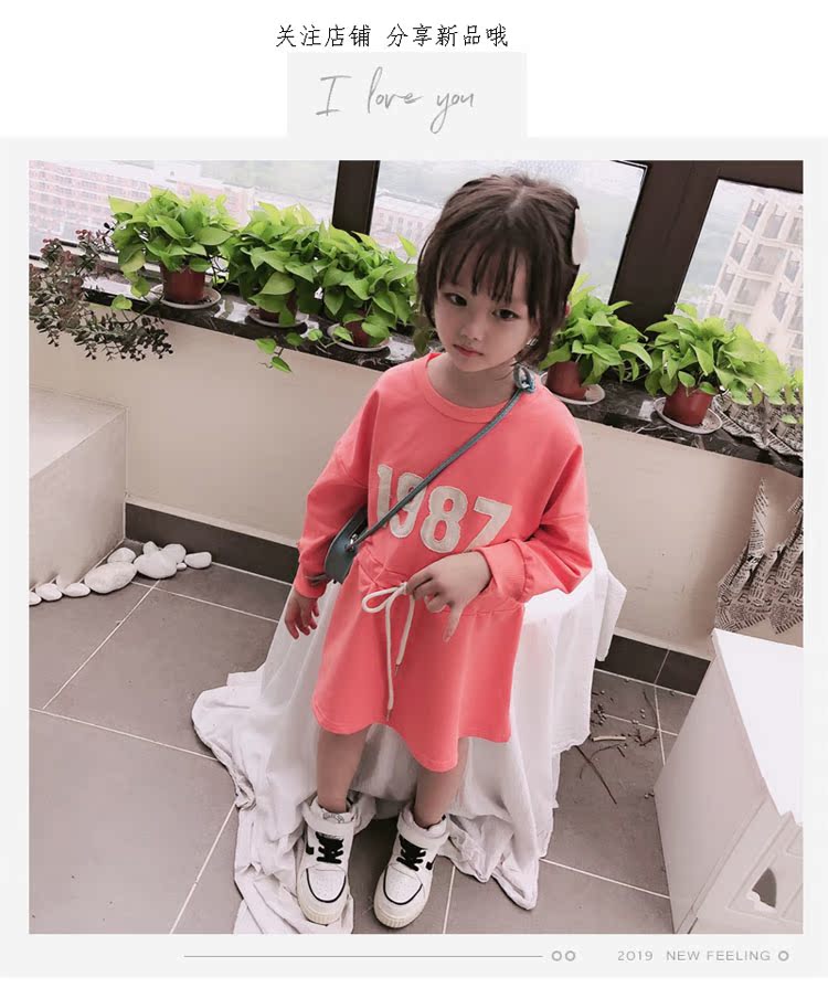2019春秋季新款 女童可愛小清新連衣裙 兒童舒適甜美收腰T恤裙1入