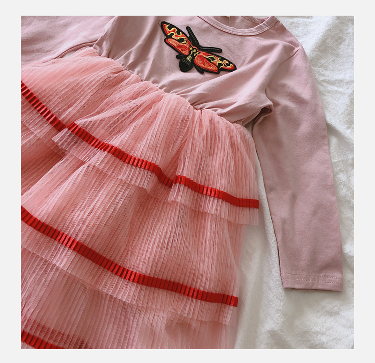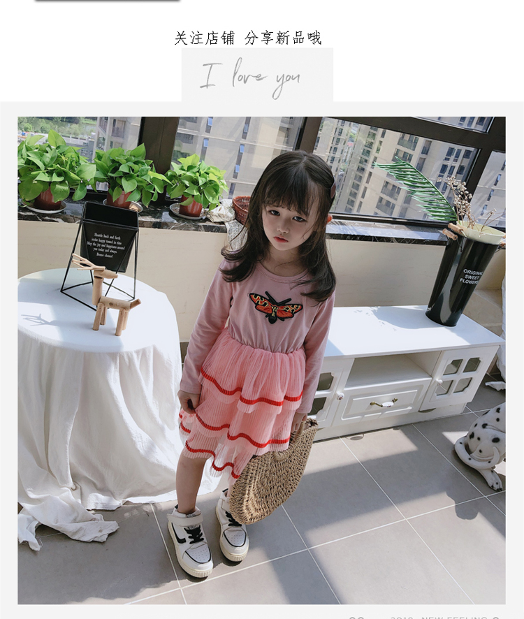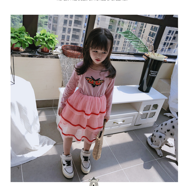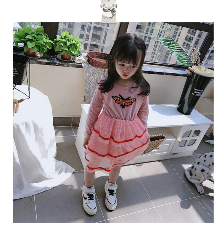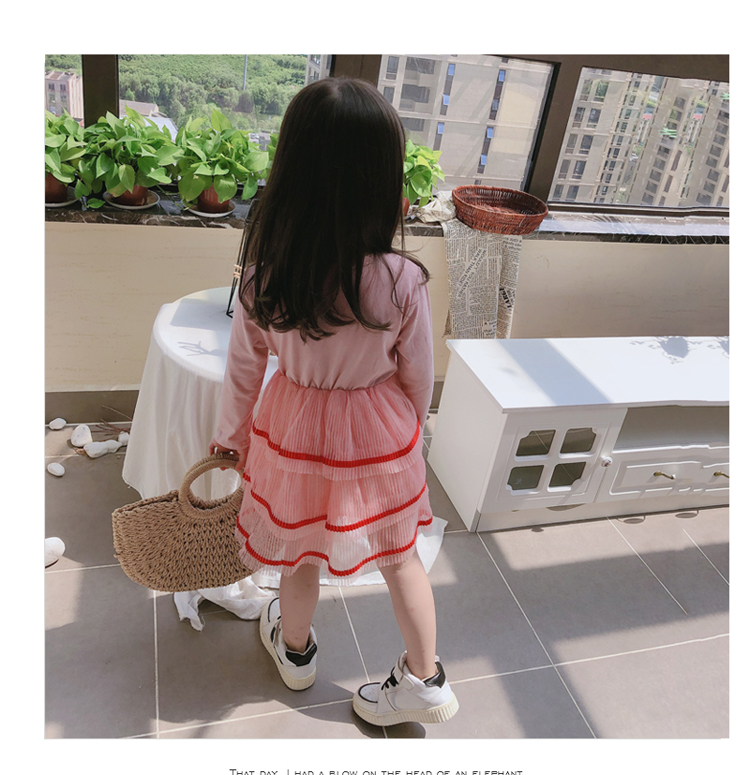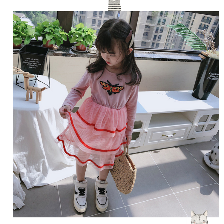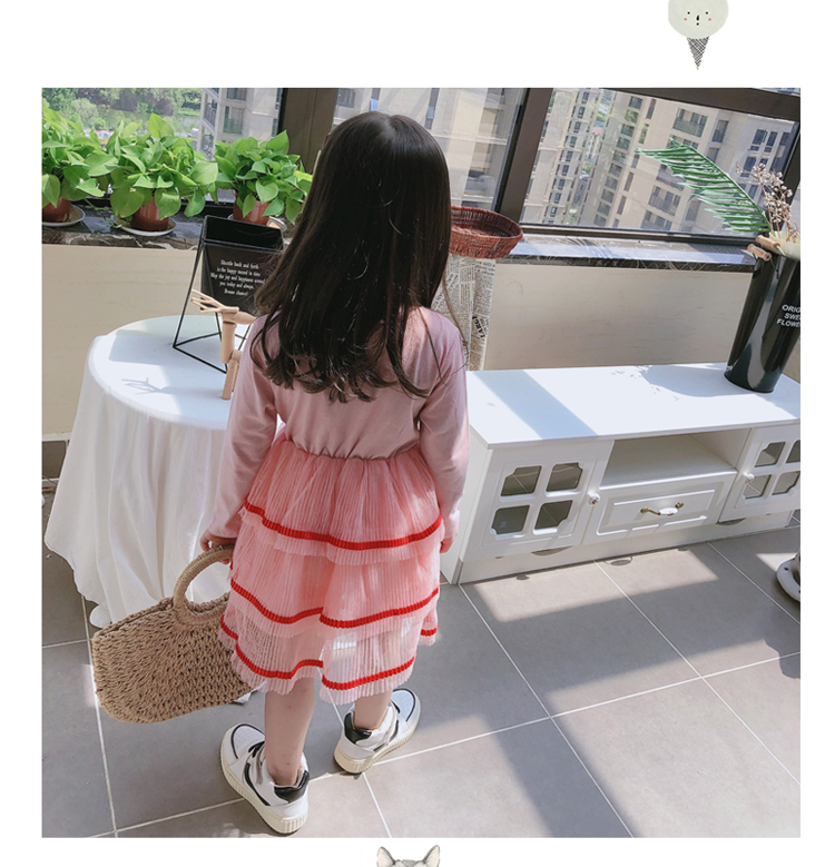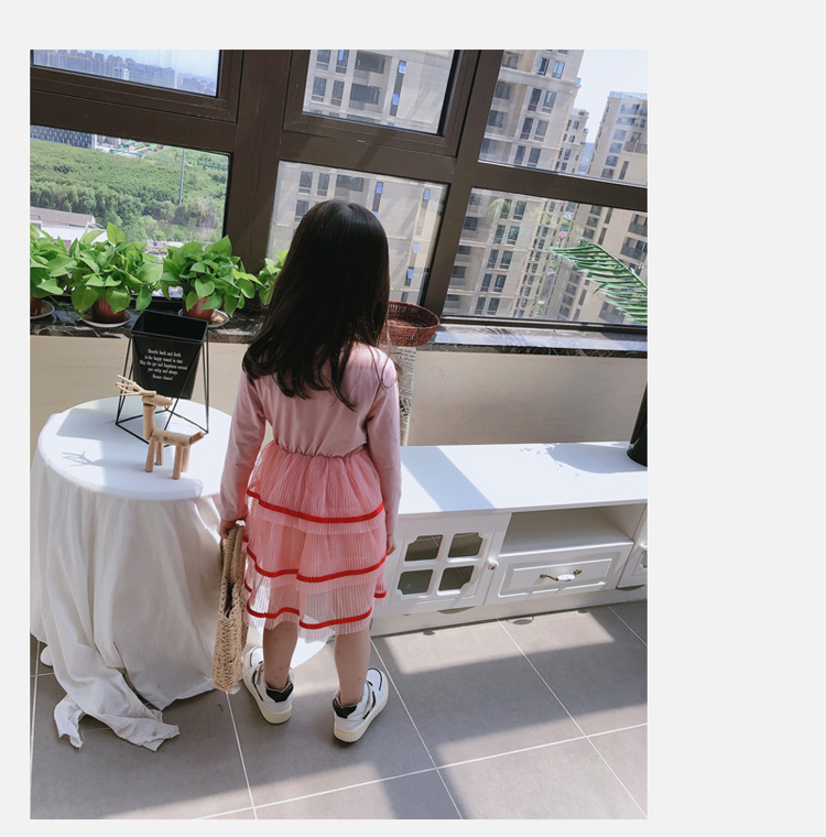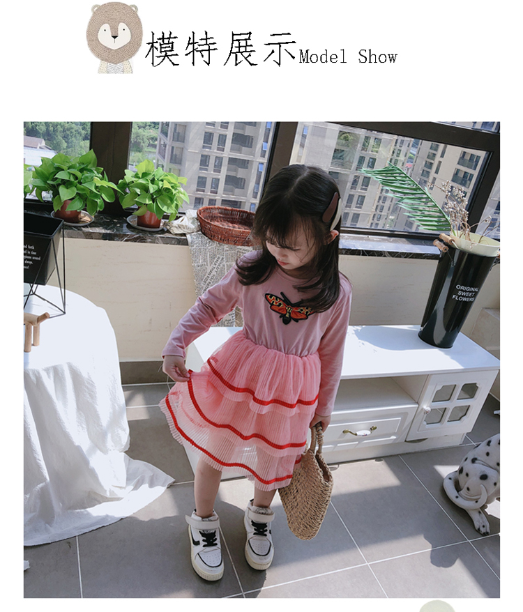 2019春秋季新款 女童可愛甜美連衣裙 中小童個性洋氣拼接蛋糕裙1入