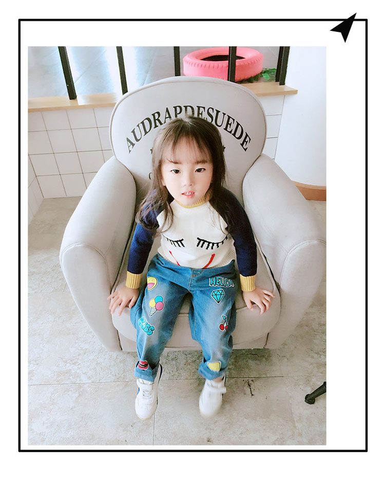 2018女寶寶可愛卡通兒童毛衣 女童春秋季新款寬松長袖套頭上衣1入