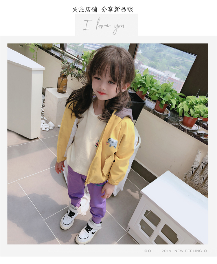 2019春秋季新款 男女童卡通圖案外套 中小童可愛舒適連帽上衣1入