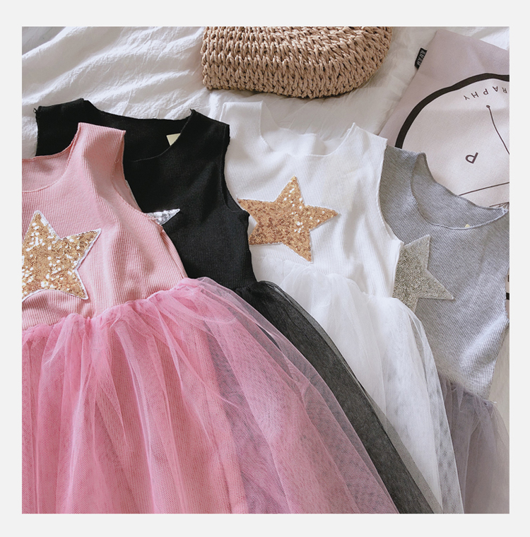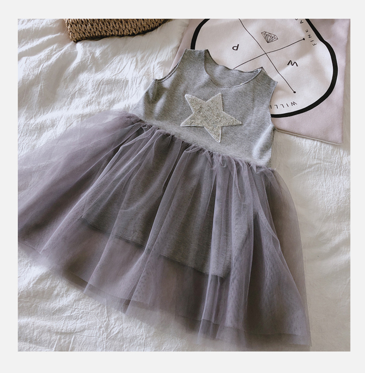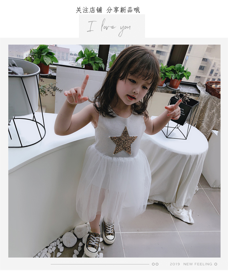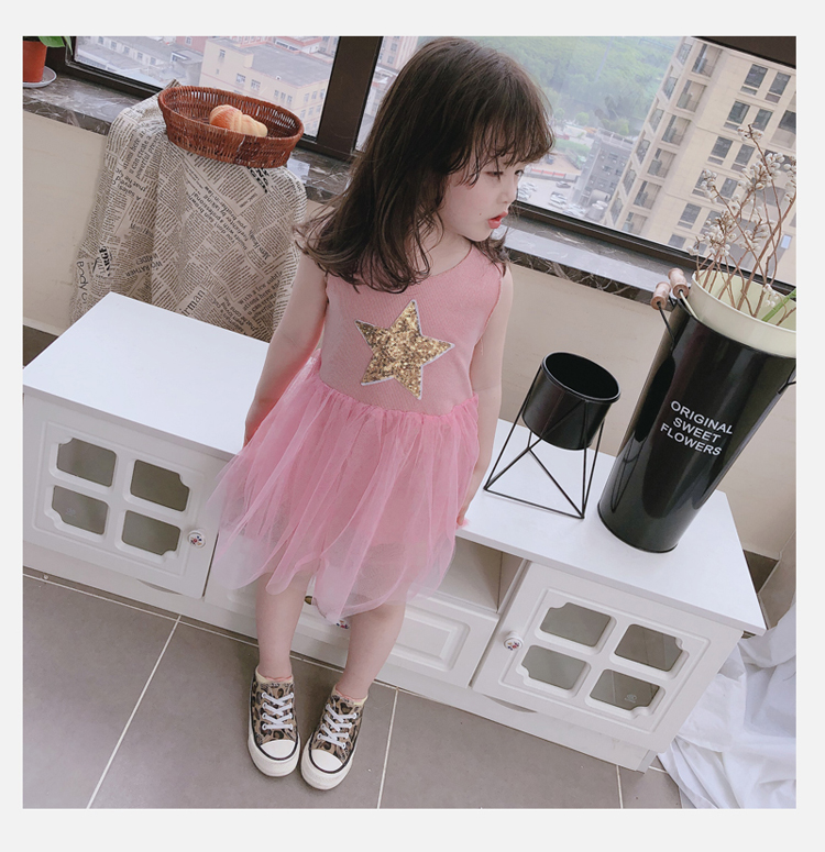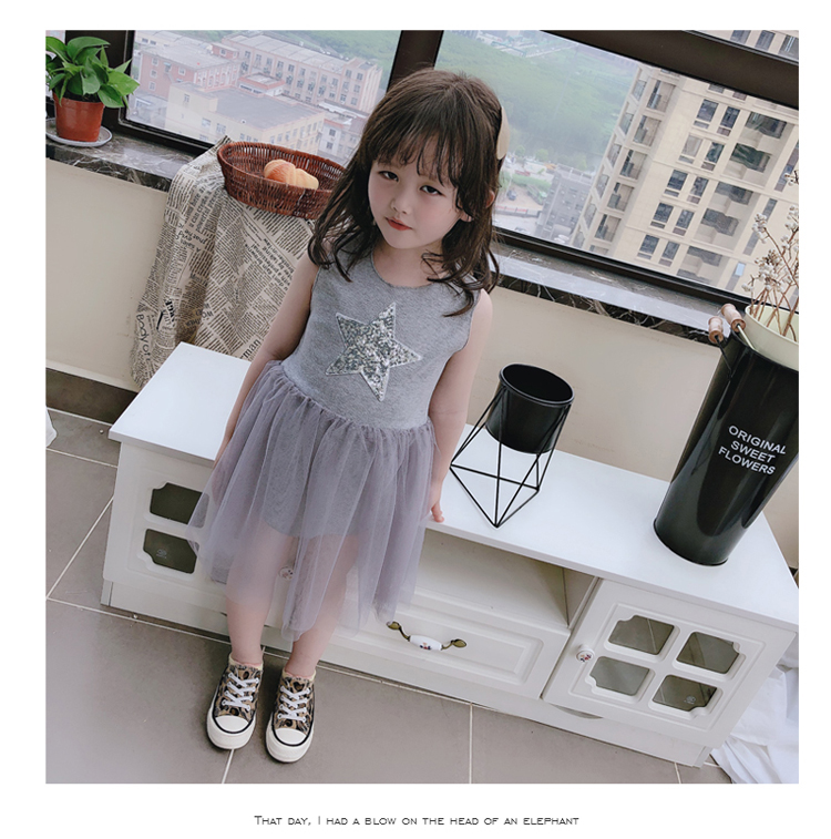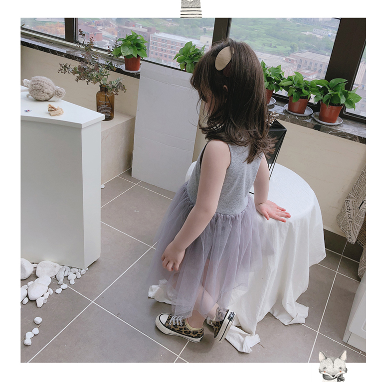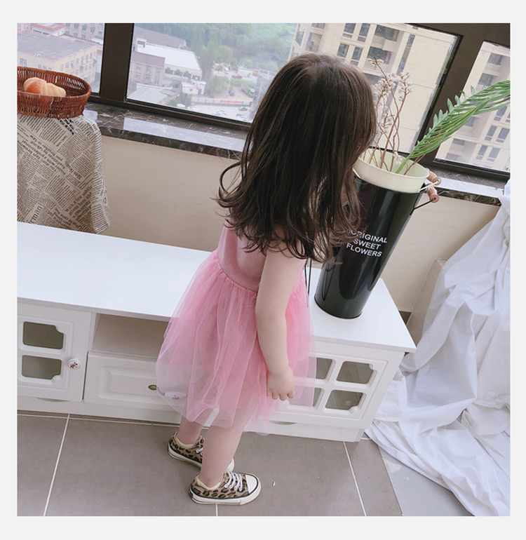 2019夏季新款 女童寶寶舒適裙子 中小童洋氣無袖網紗拼接連衣裙1入