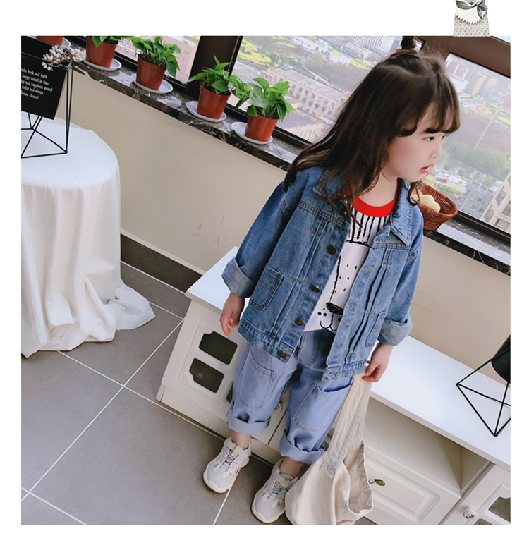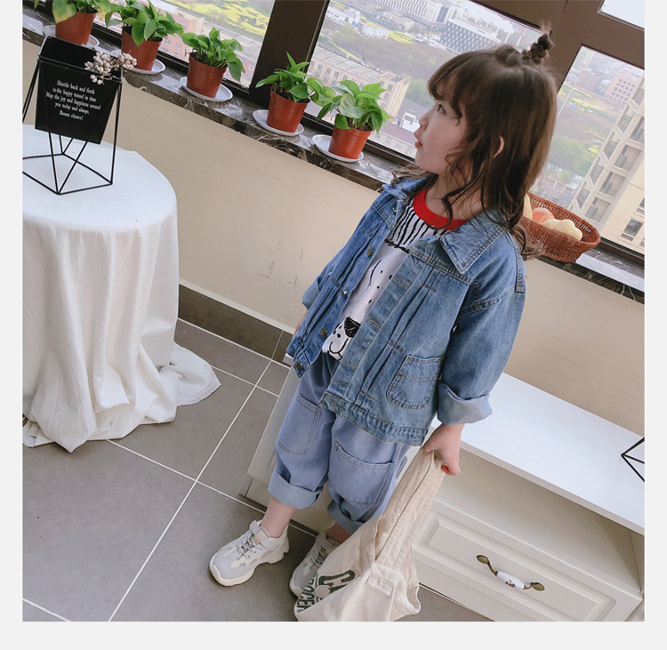 2019春季新款兒童開衫上衣 中小童長袖卡通 男女童寶寶牛仔外套1入