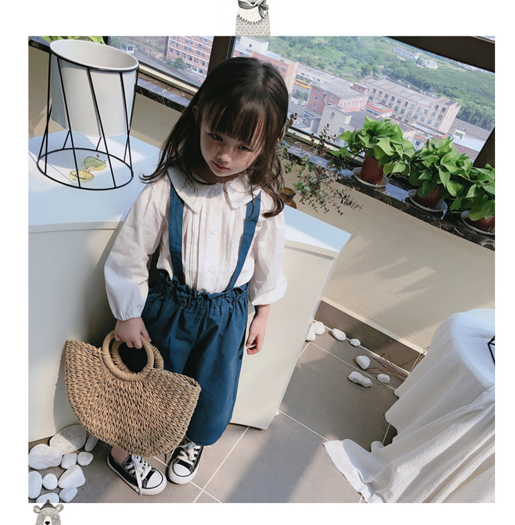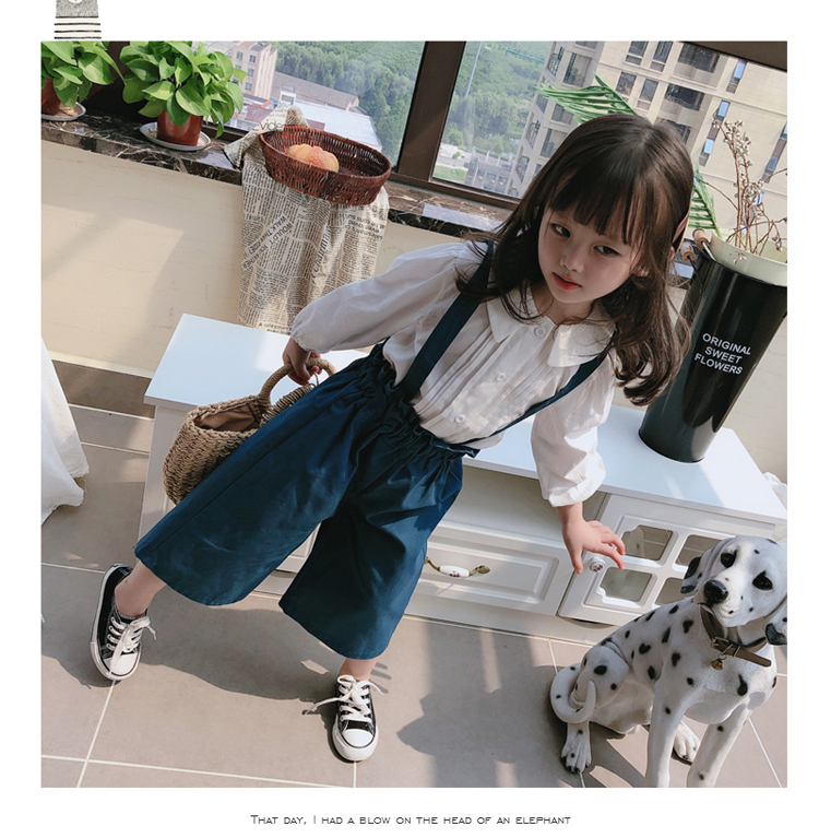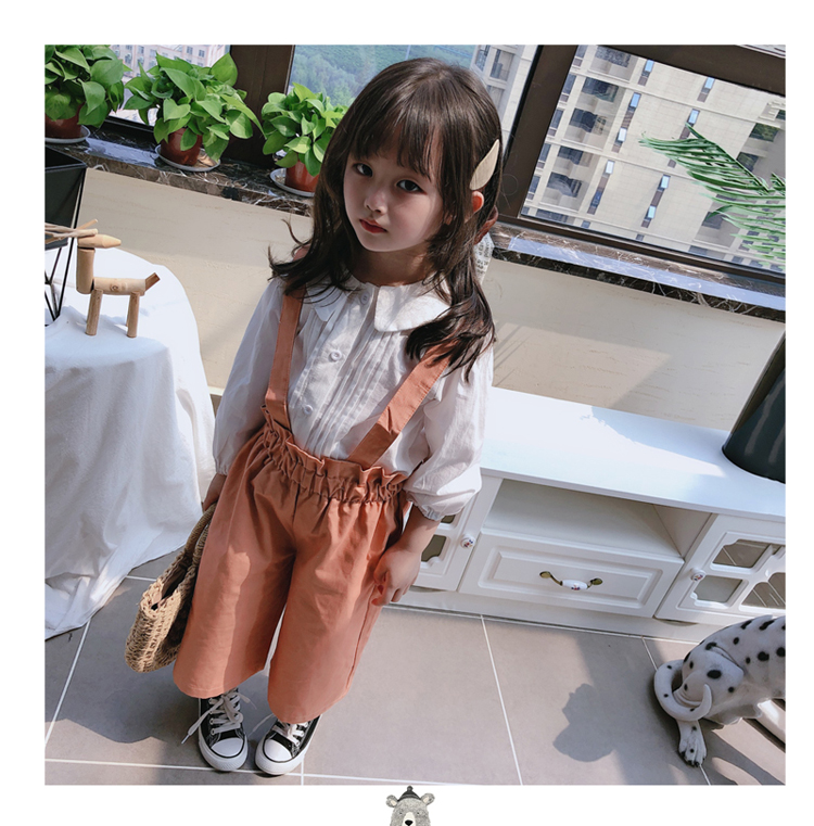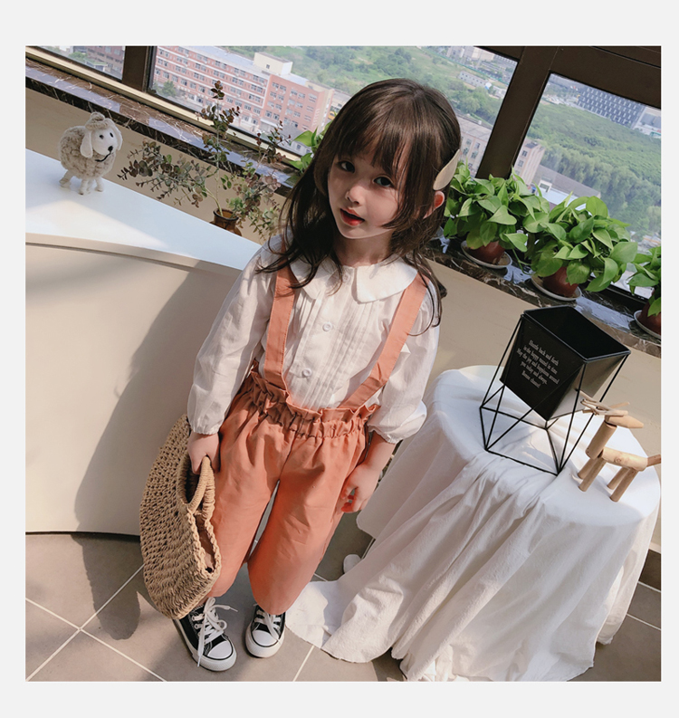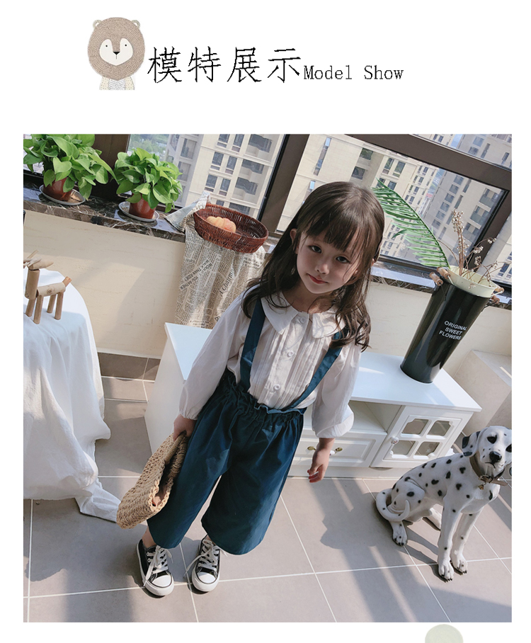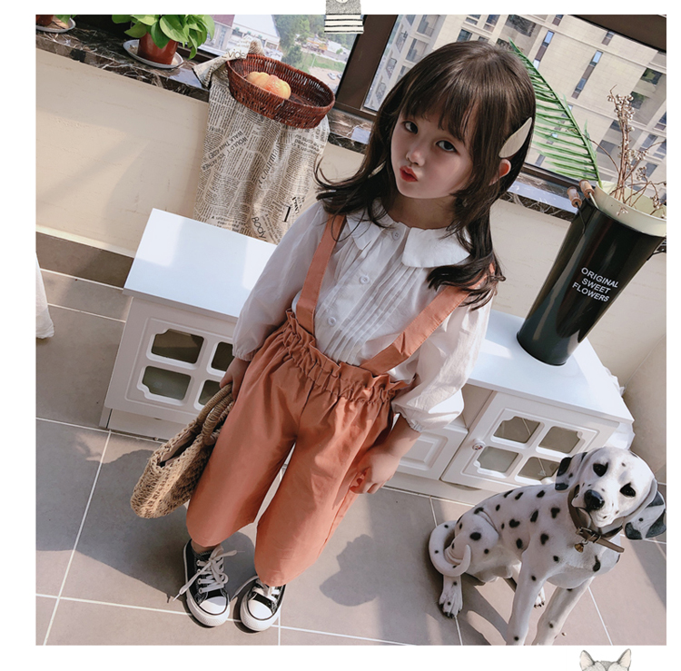 2019春秋季童裝 女童寶寶純色襯衫+闊腿褲兩件套 中小童背帶褲1入