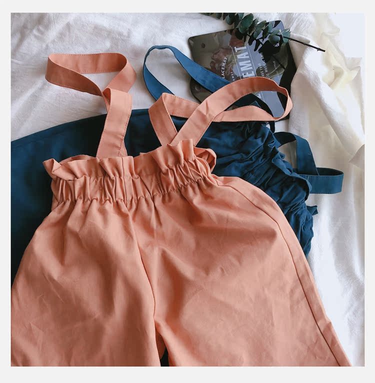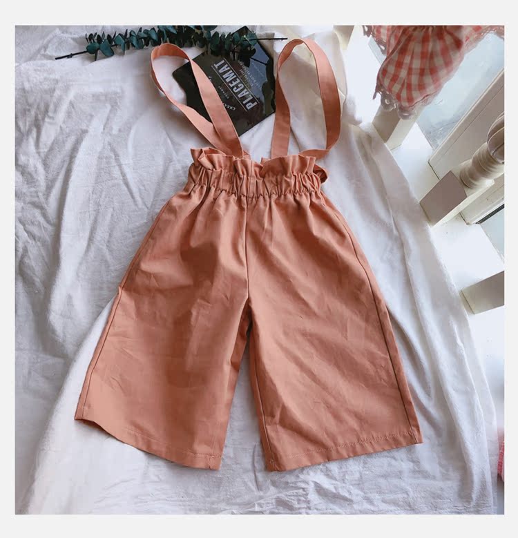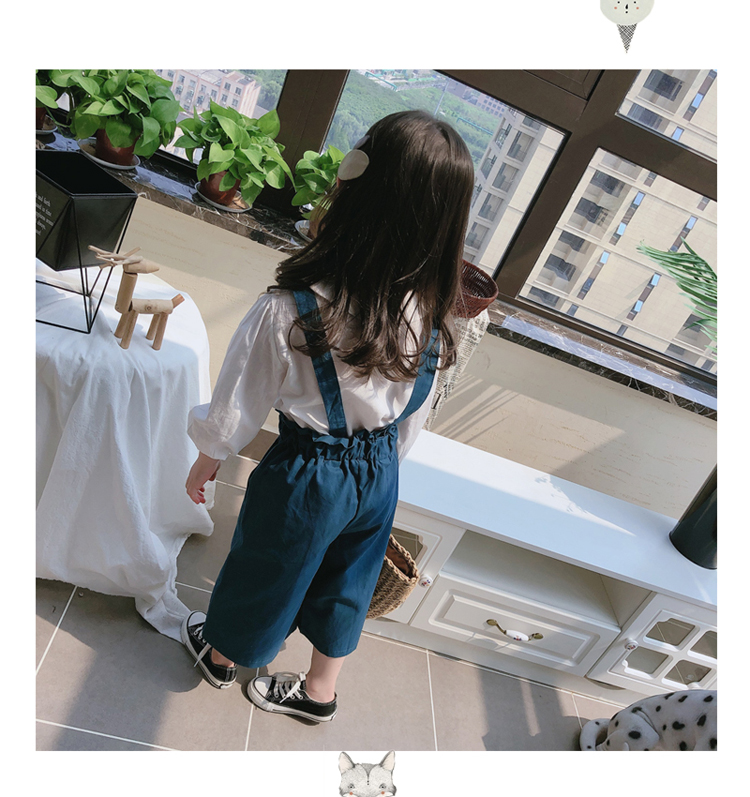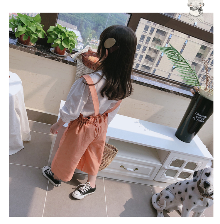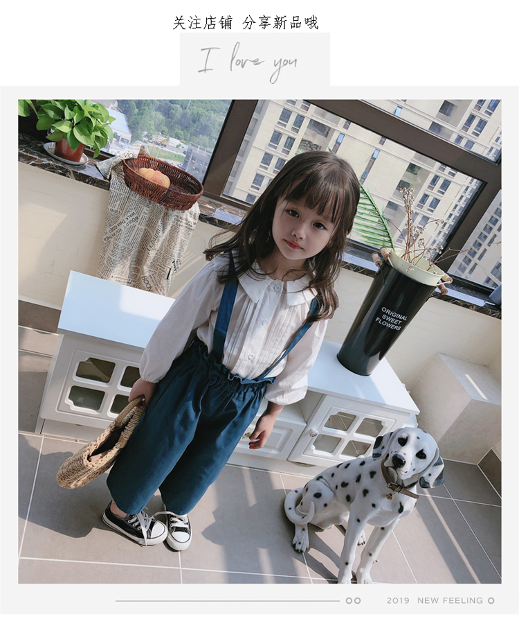 2019春秋季童裝 女童寶寶純色襯衫+闊腿褲兩件套 中小童背帶褲1入