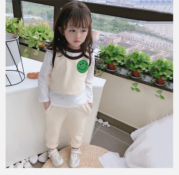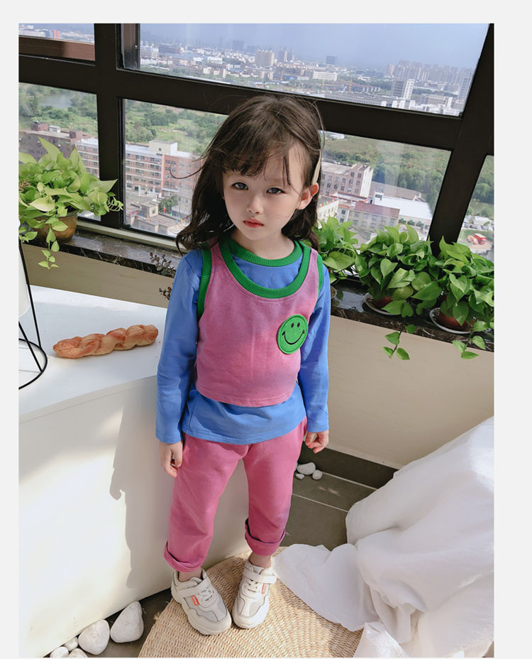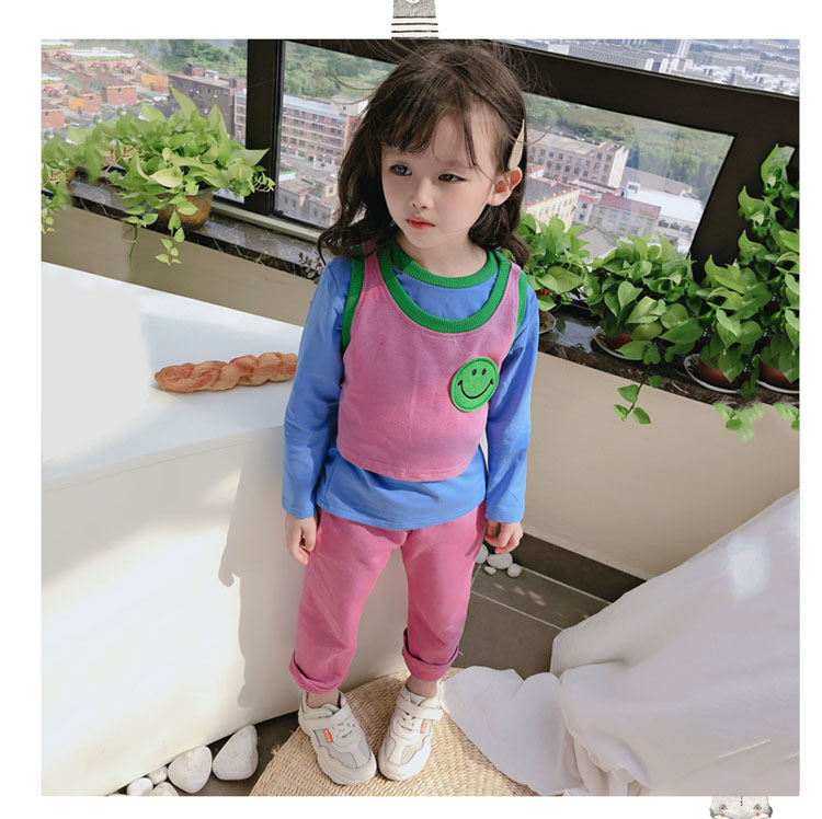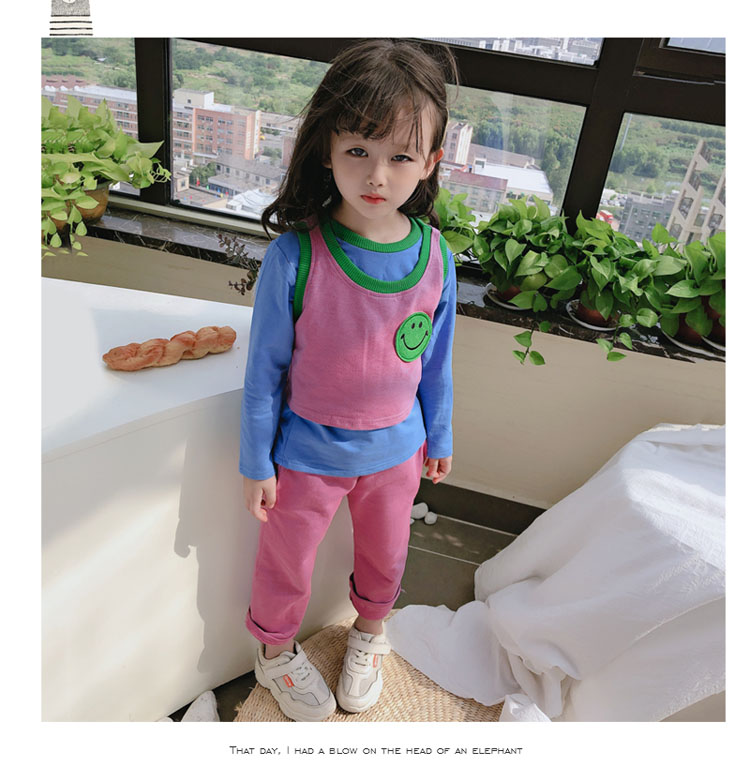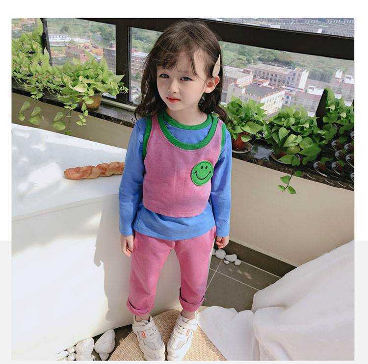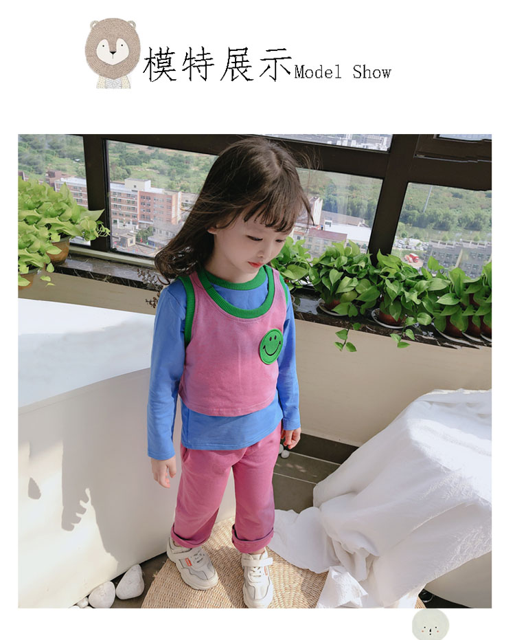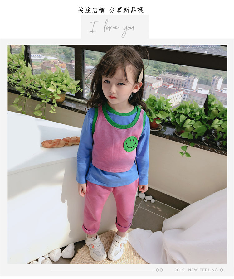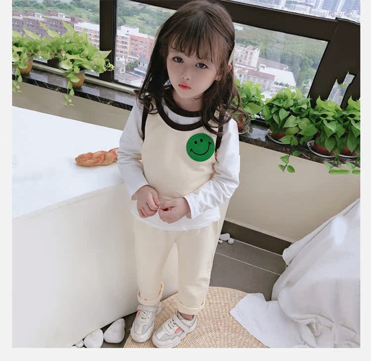 2019春秋季新款 兒童帥氣吊帶寶寶寬松三件套 女童舒適百搭套裝潮1入