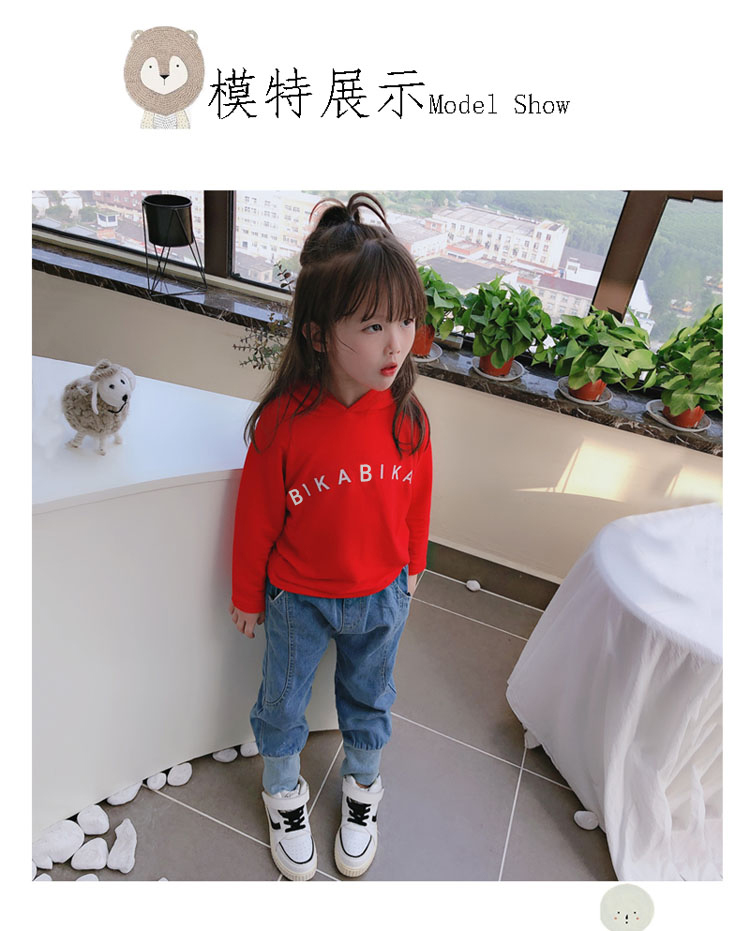 2019春秋季新款 男女童寶寶字母印花衛衣 兒童可愛帥氣連帽上衣1入