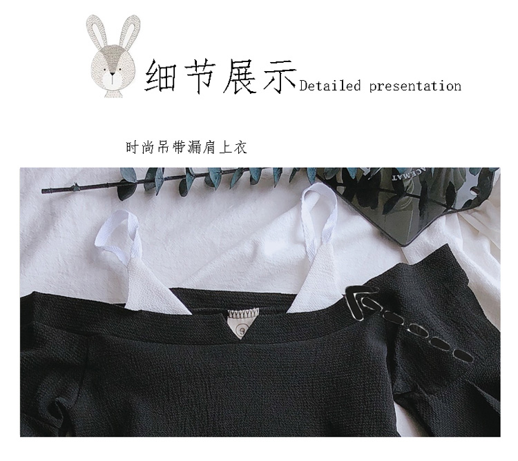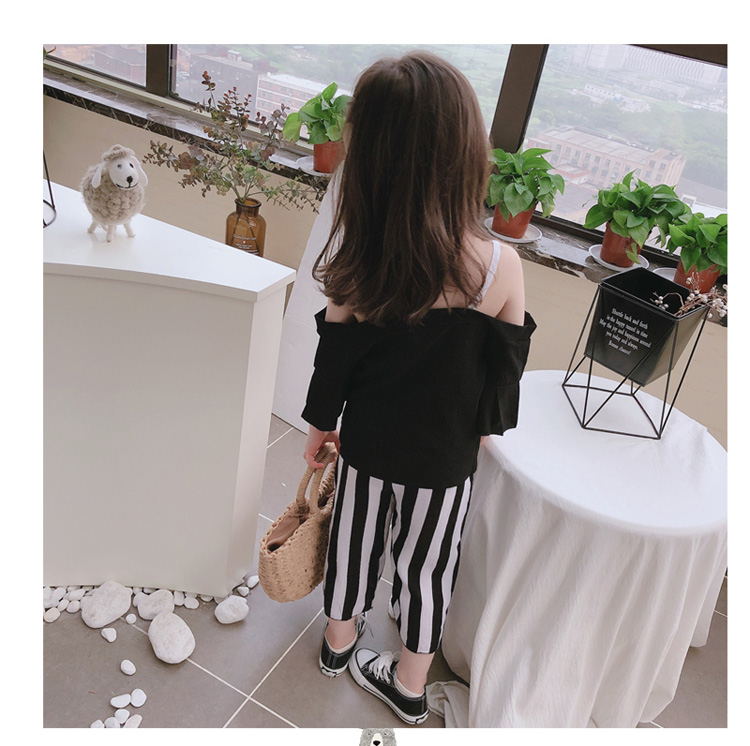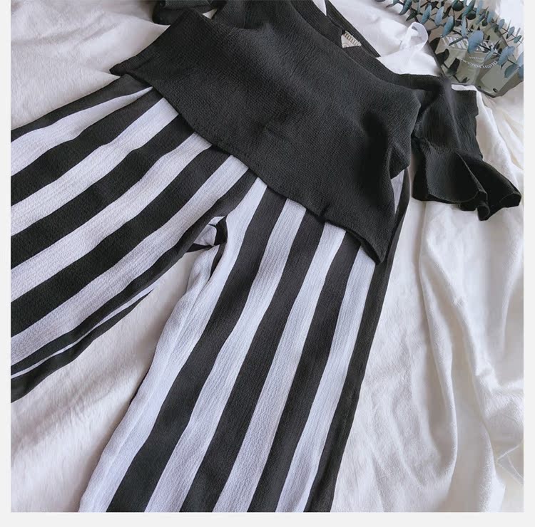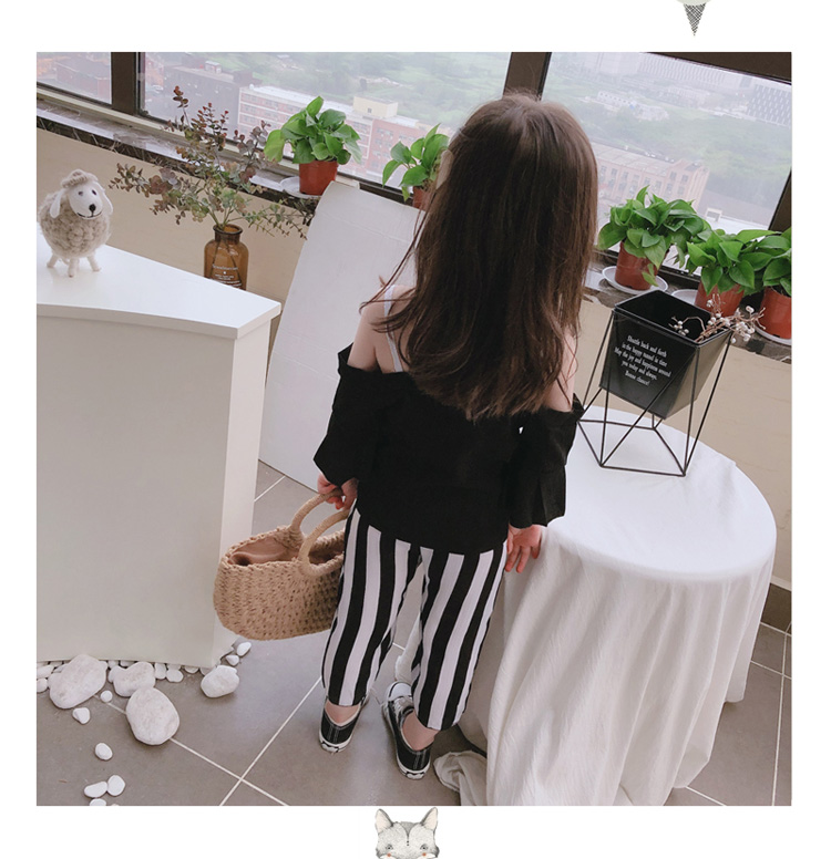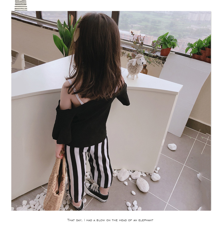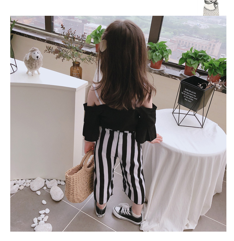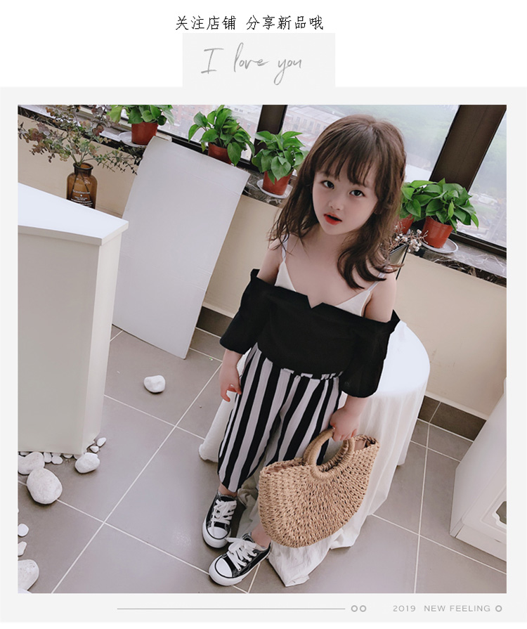 2019女童寶寶夏季新款休閑喇叭袖吊帶上衣+中小童寬松條紋闊腿褲1入