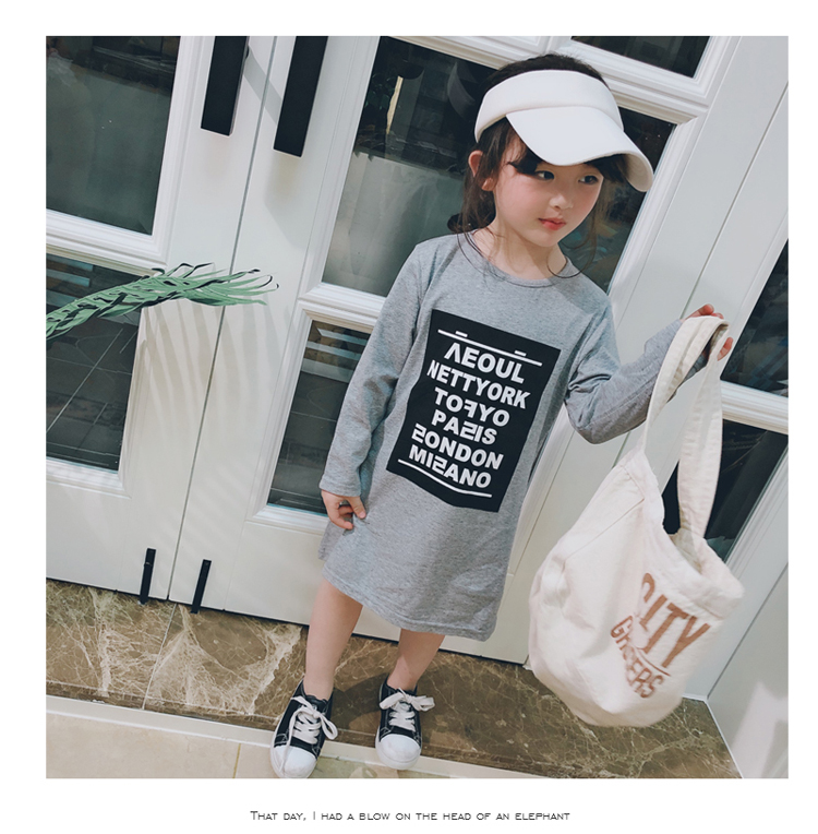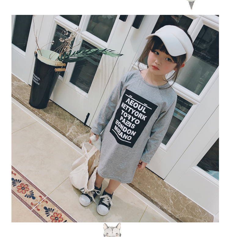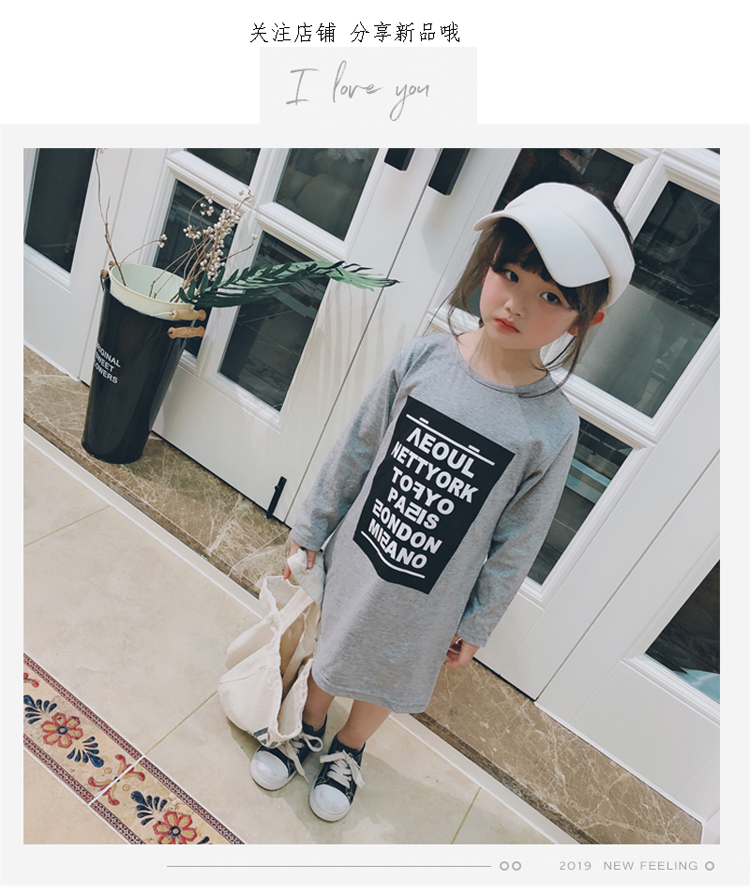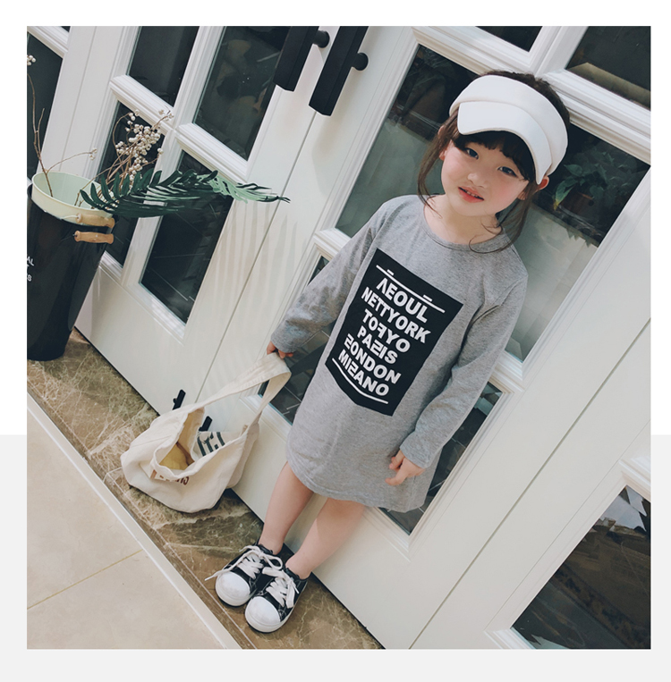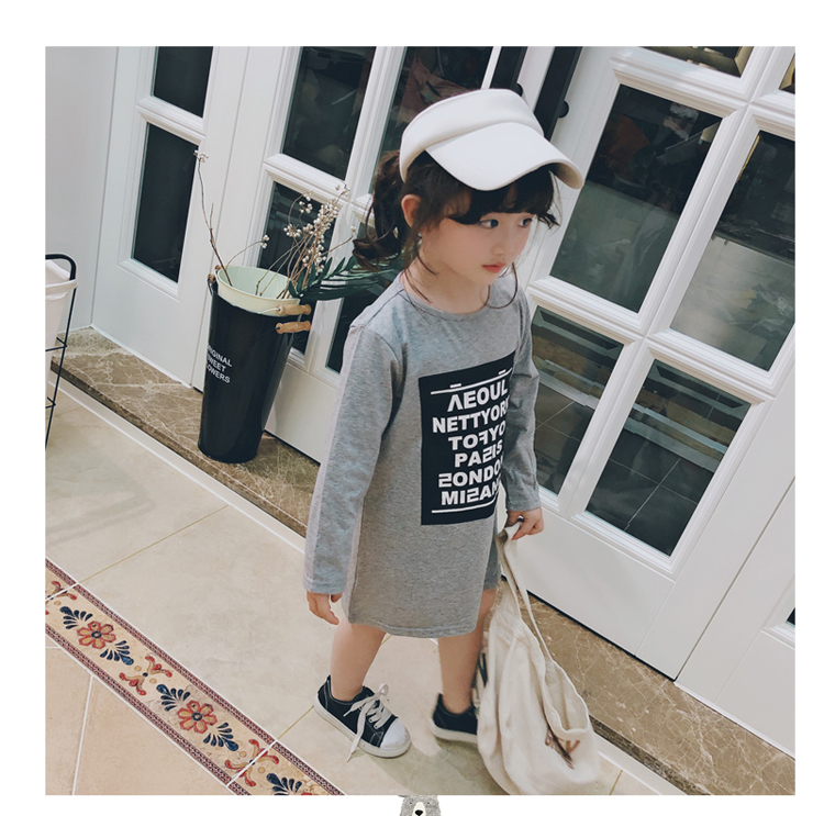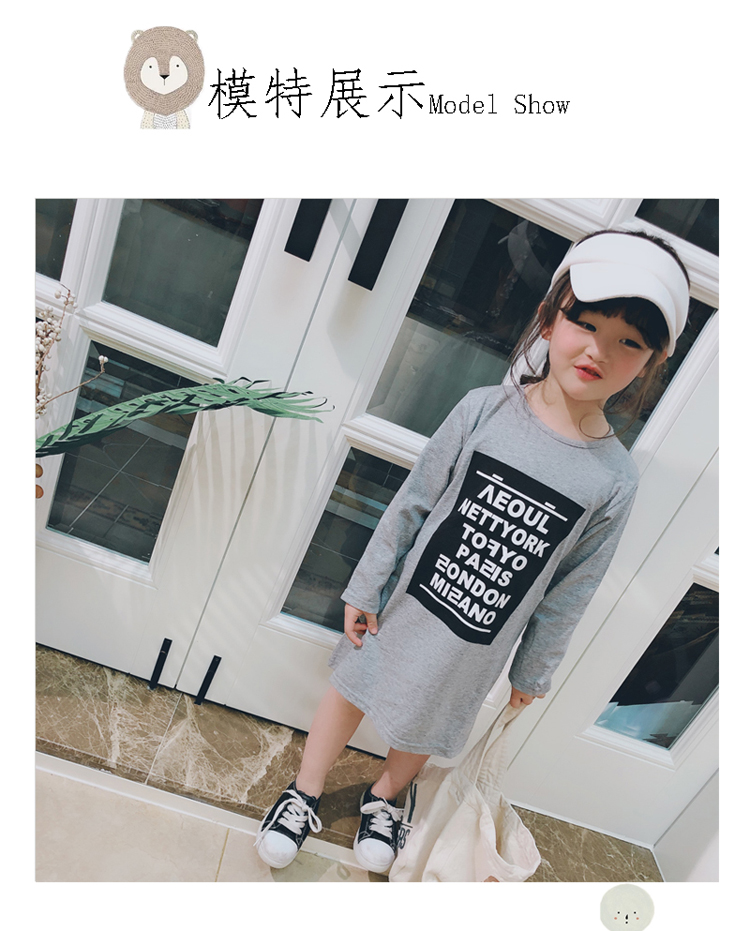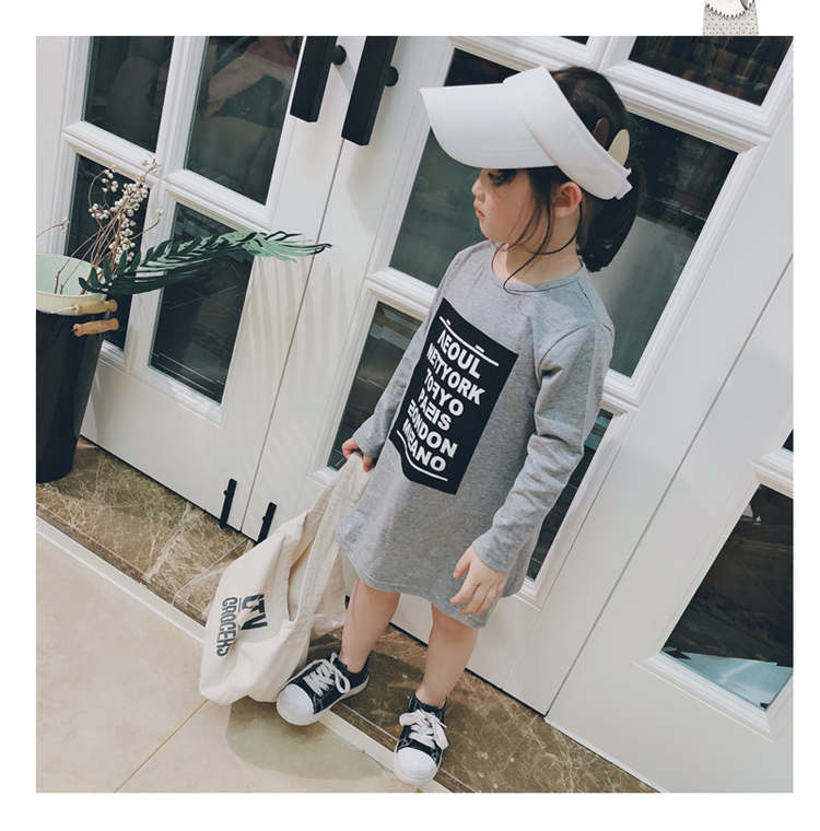 2019春裝新款女童寶寶簡約連衣裙字母印花氣質舒適裙子長袖連衣裙1入