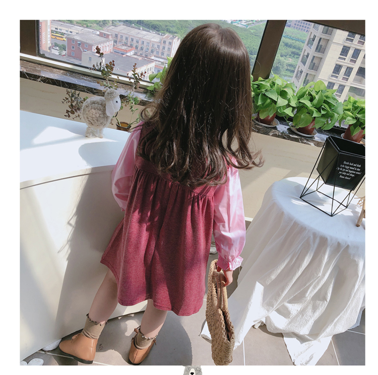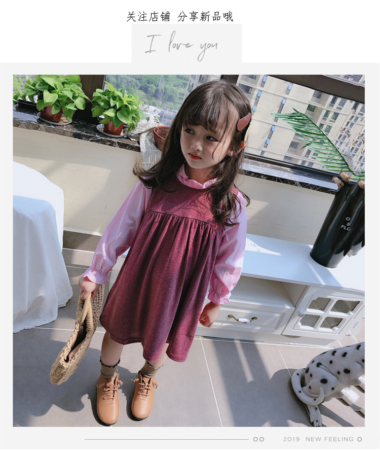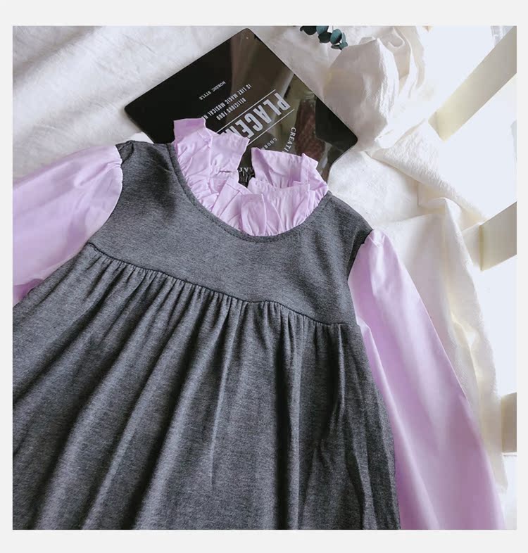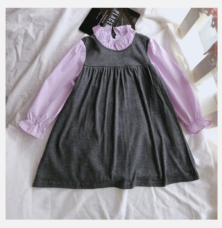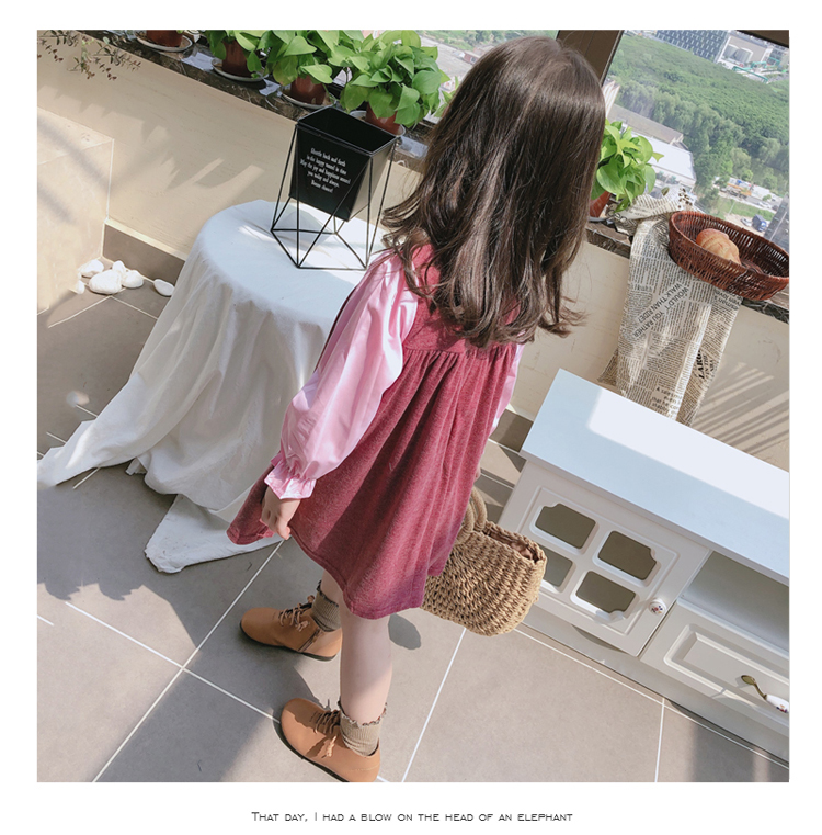 2019春秋季新款 女童個性洋氣拼接連衣裙 中小童可愛甜美花邊裙子1入