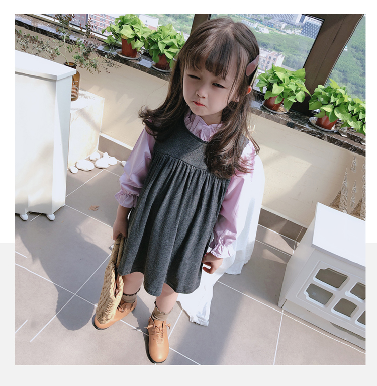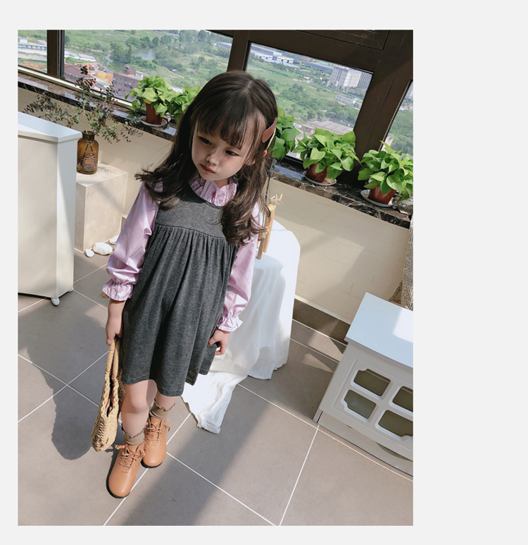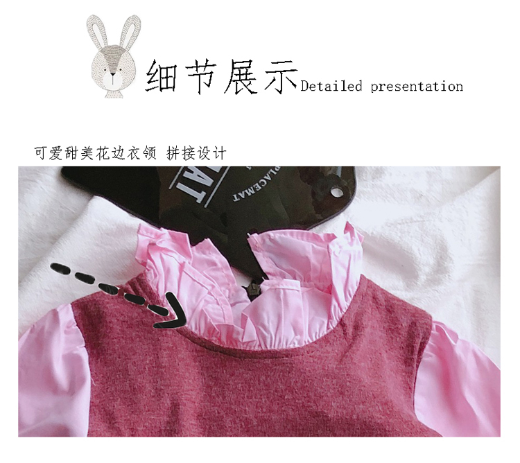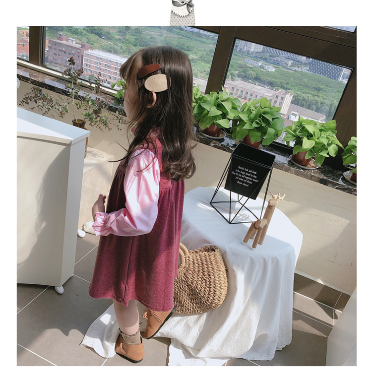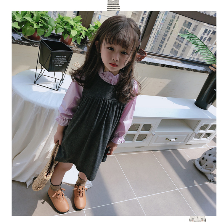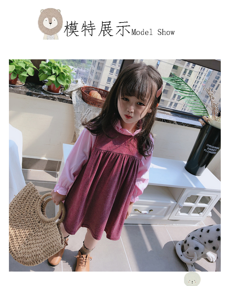 2019春秋季新款 女童個性洋氣拼接連衣裙 中小童可愛甜美花邊裙子1入