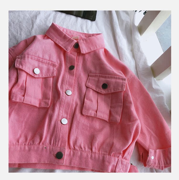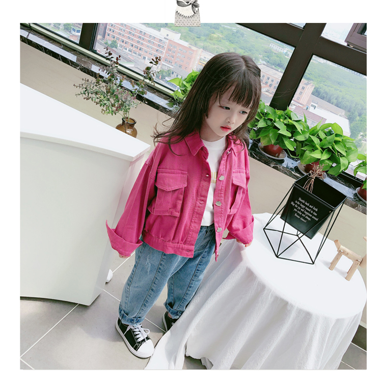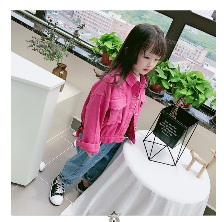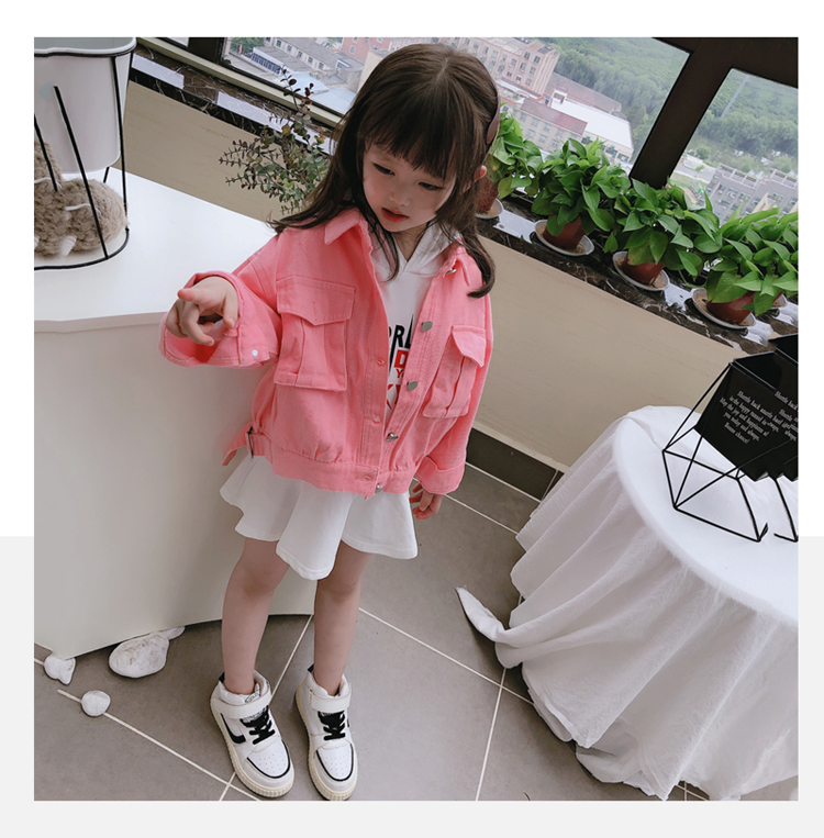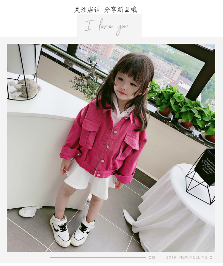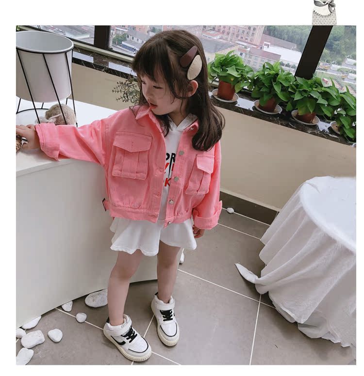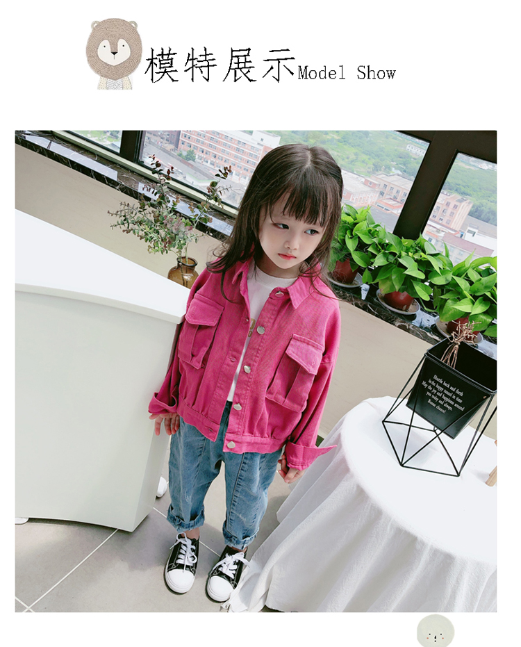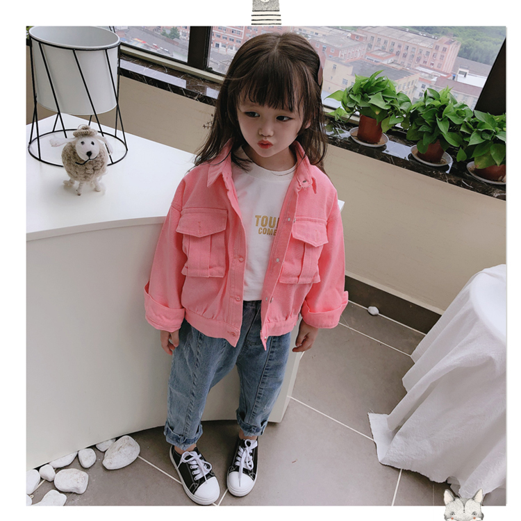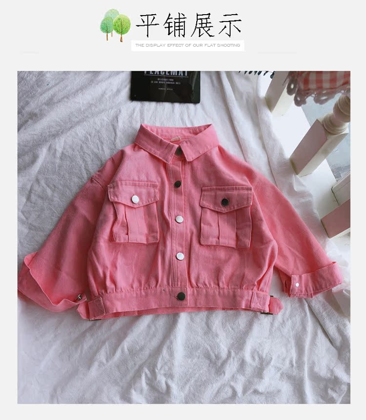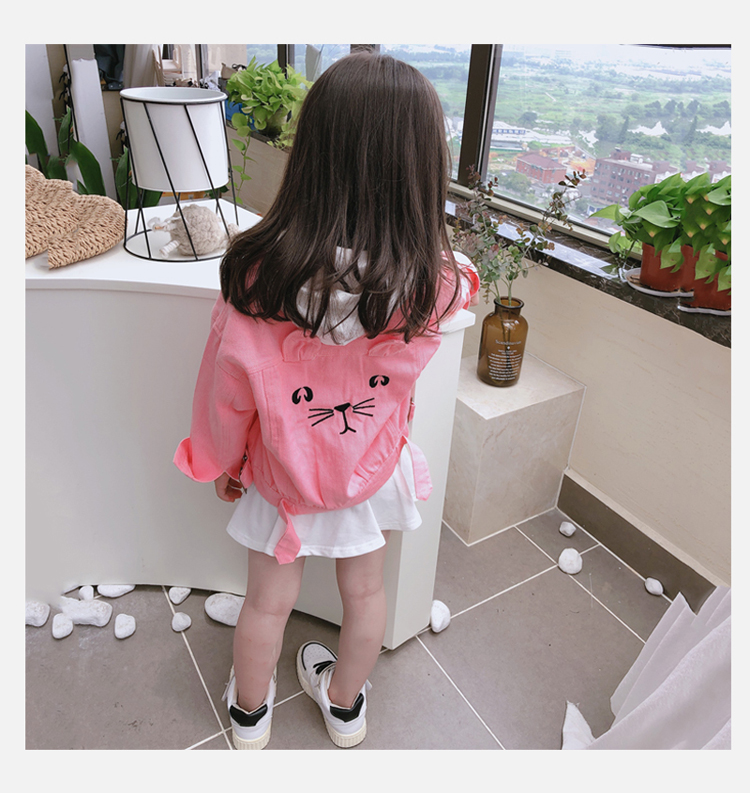 2019春秋季新款 女童寶牛仔外套 中小童可愛卡通圖案兒童開衫上衣1入