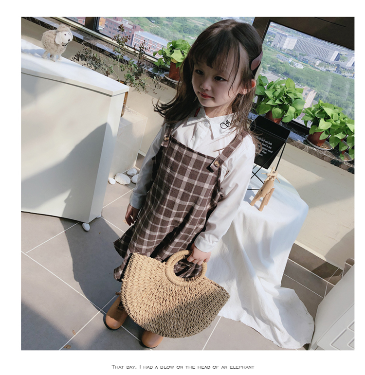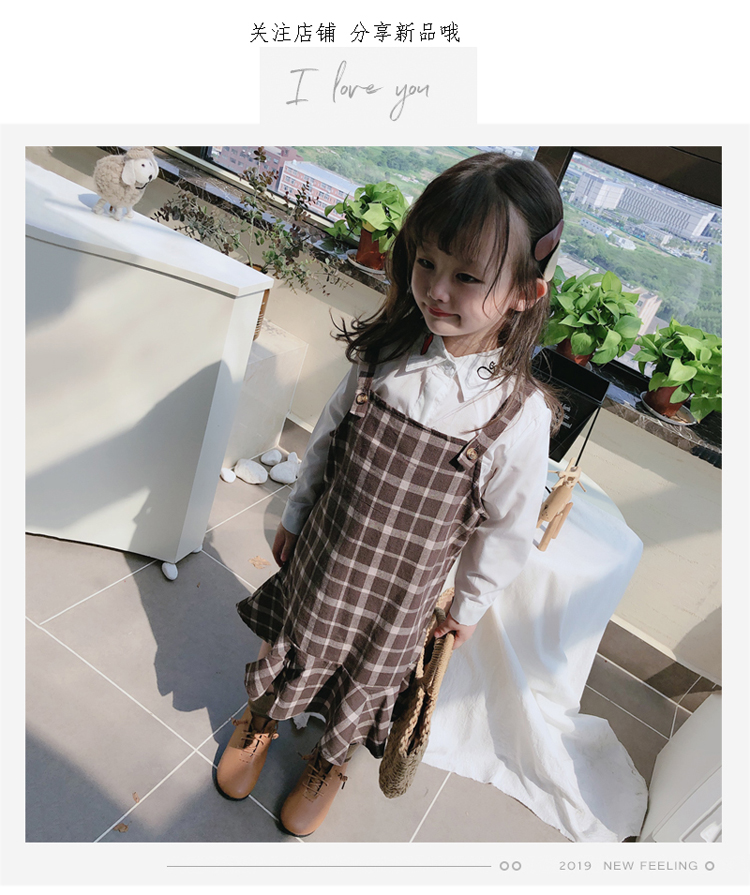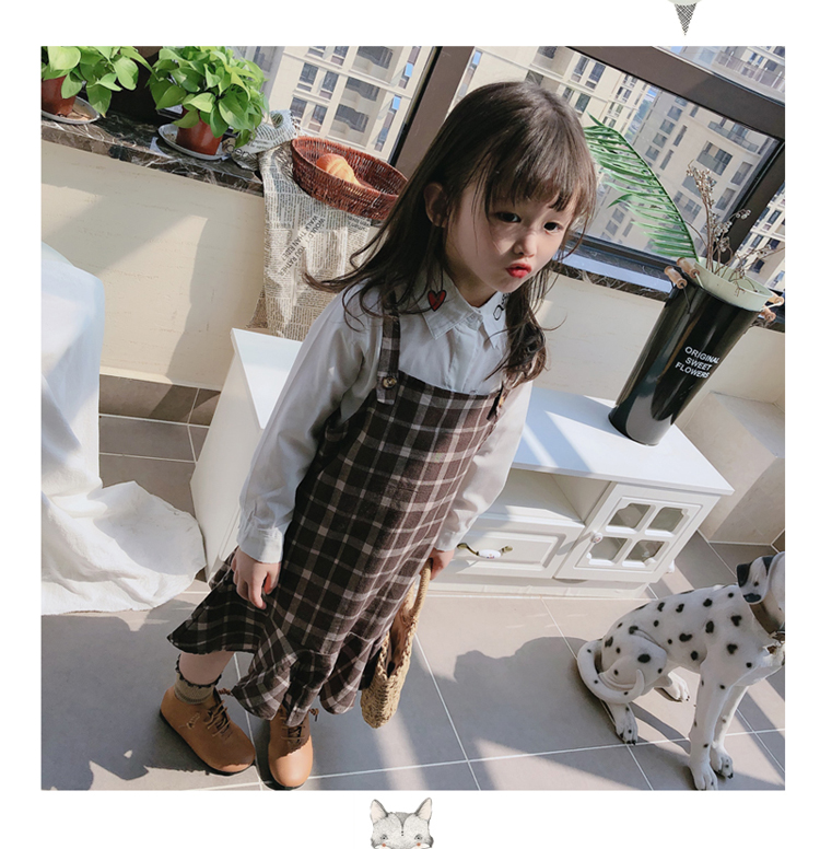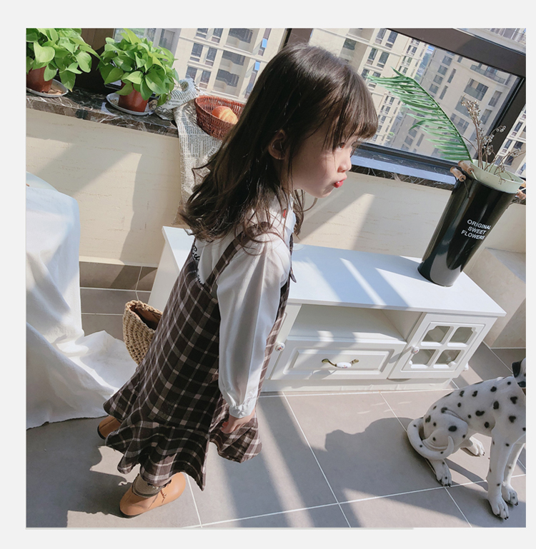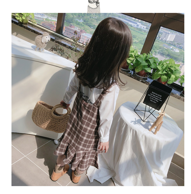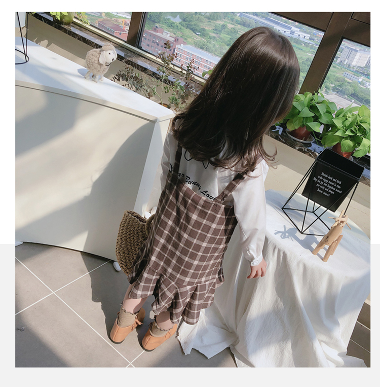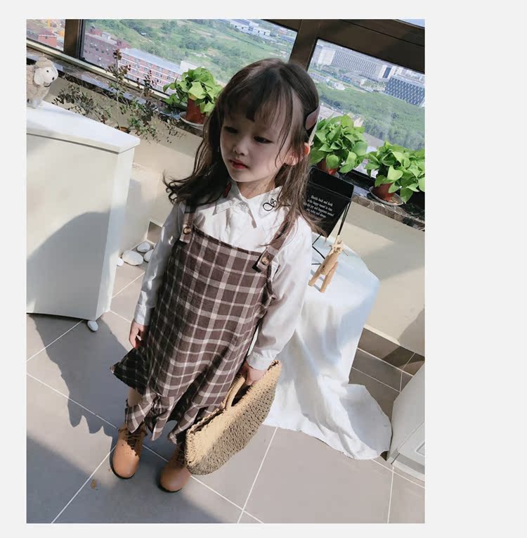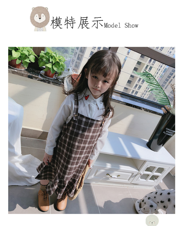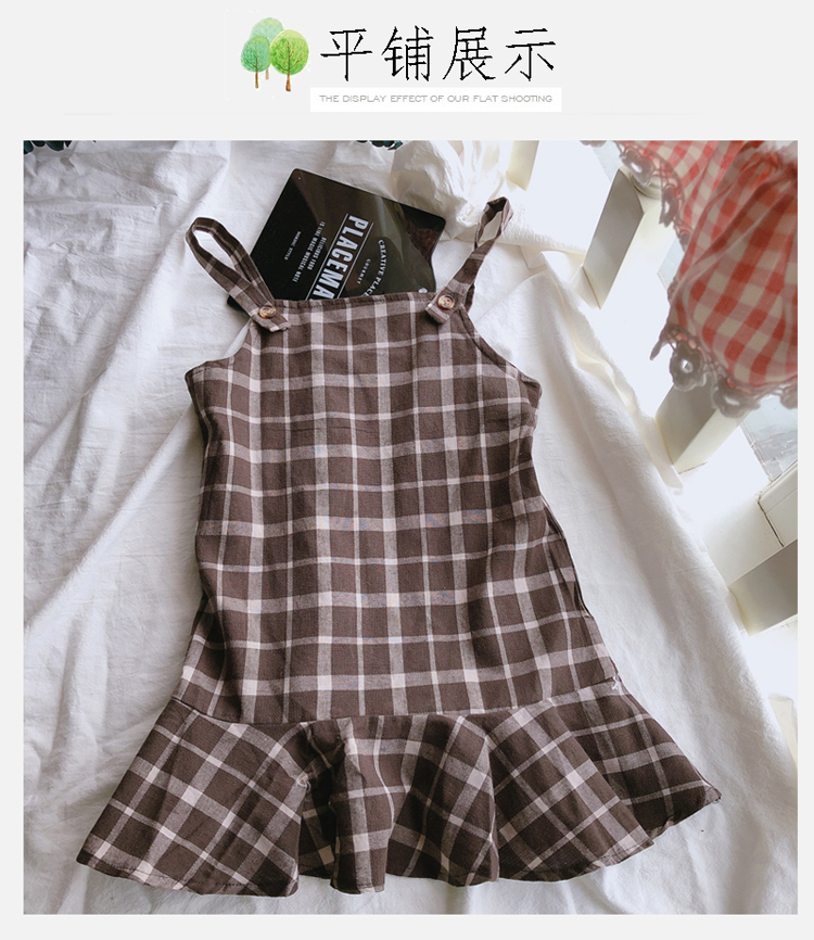 2019春秋季新款 女童個性舒適連衣裙 中小童可愛洋氣格子吊帶裙1入