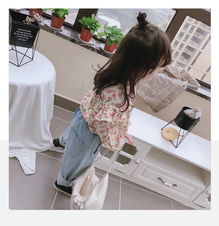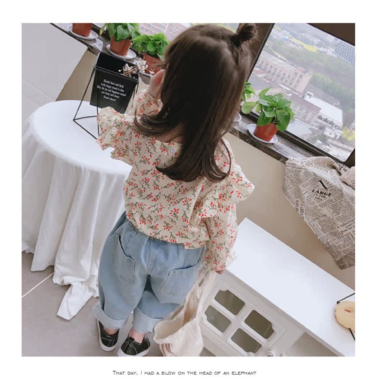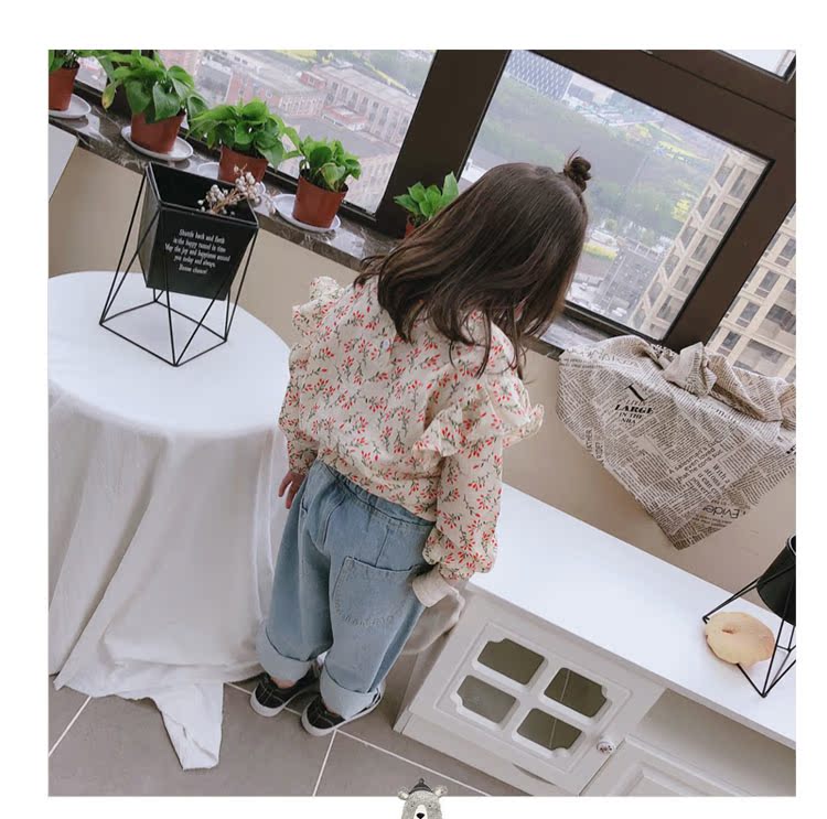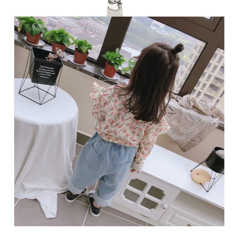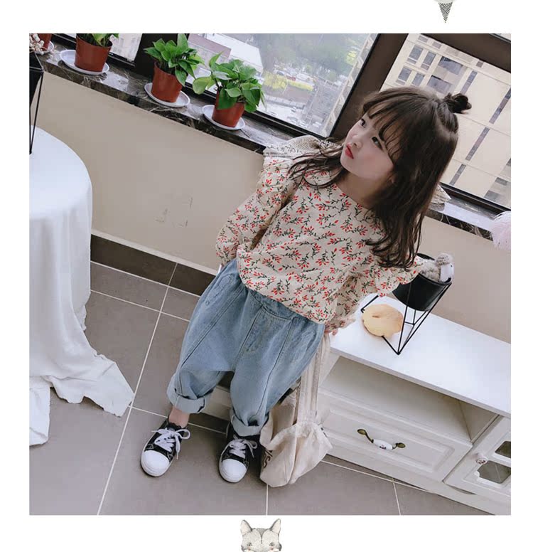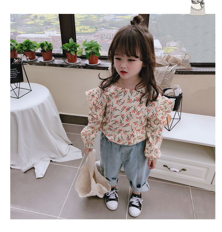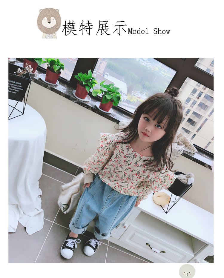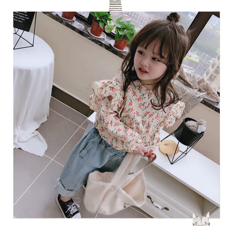 2019童裝春秋季中小童長袖束口上衣兒童碎花圓領女童寶寶T恤 潮1入