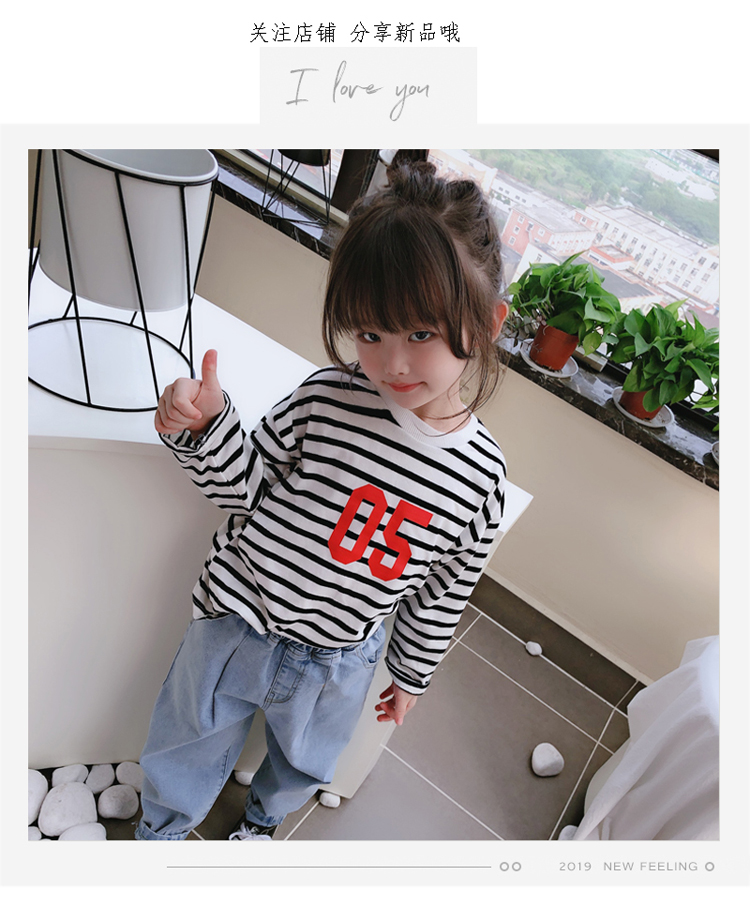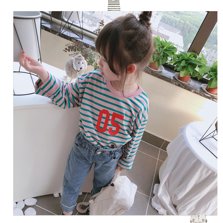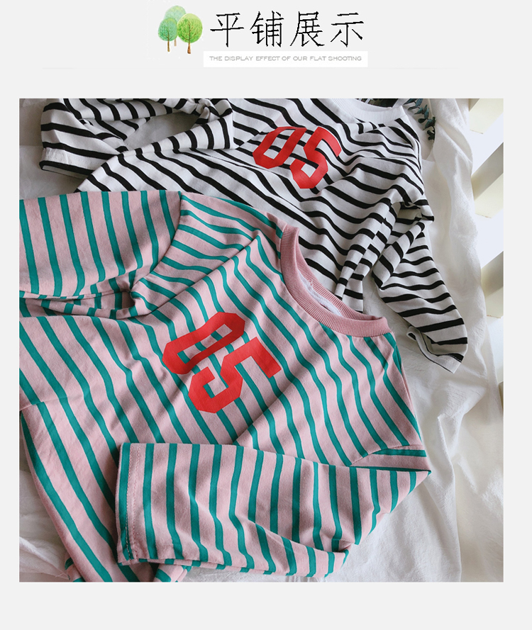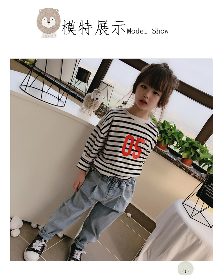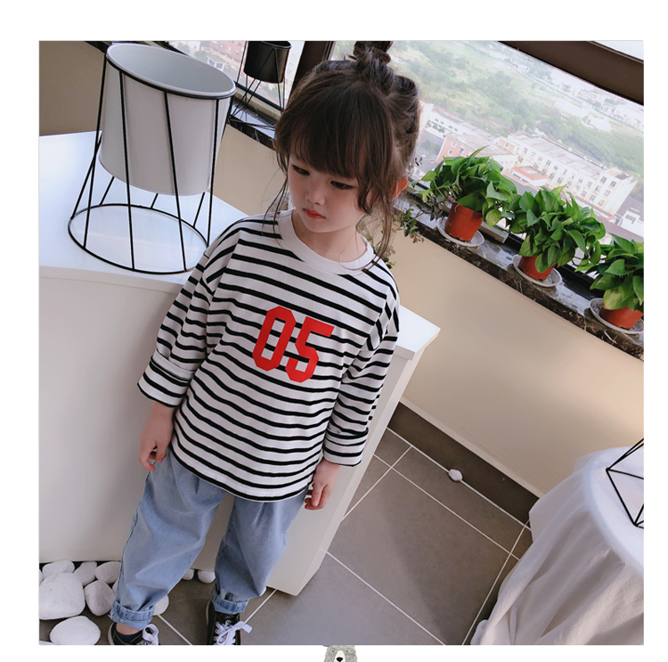 2019春秋季新款 中小童條紋數字打底衫 男女童舒適長袖套頭上衣1入