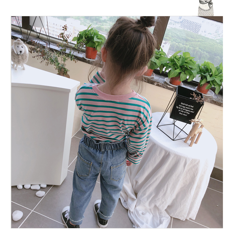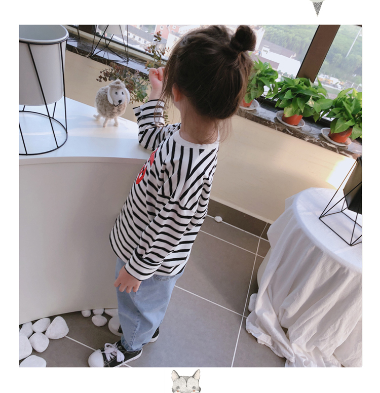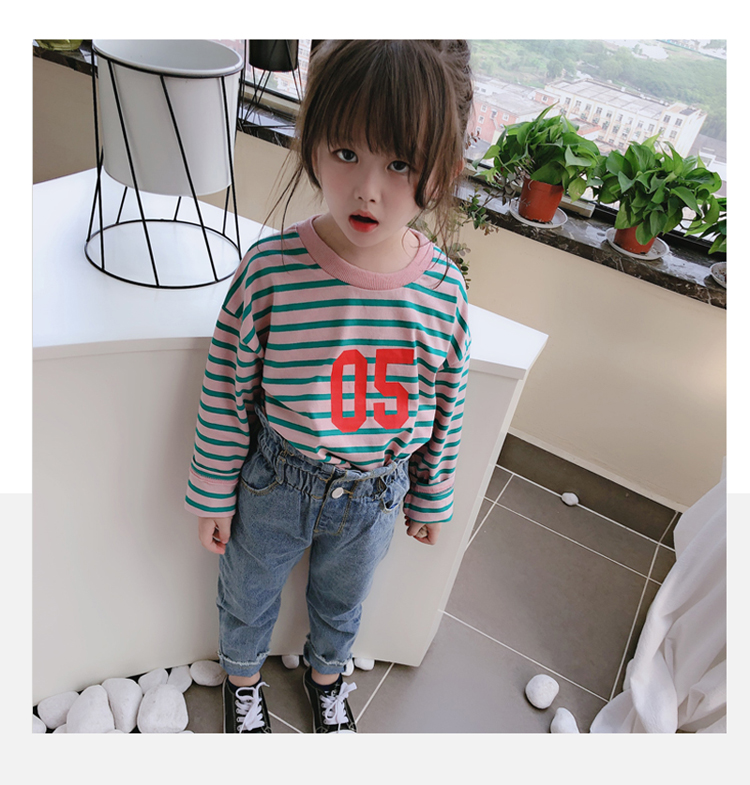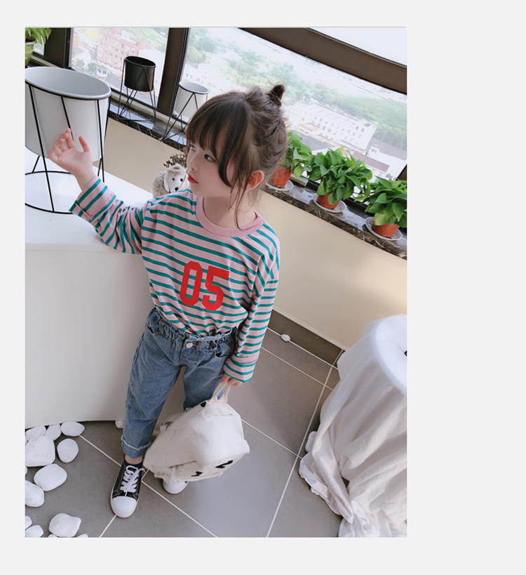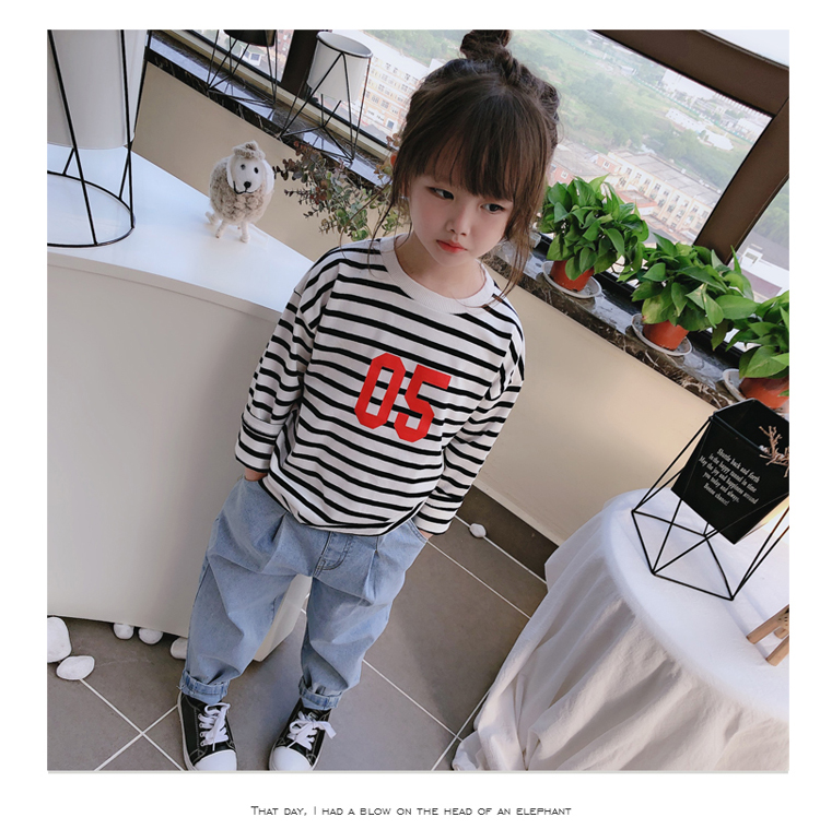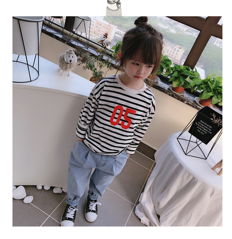 2019春秋季新款 中小童條紋數字打底衫 男女童舒適長袖套頭上衣1入