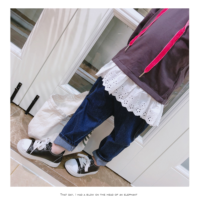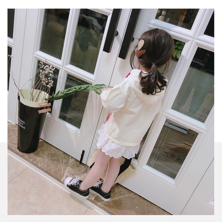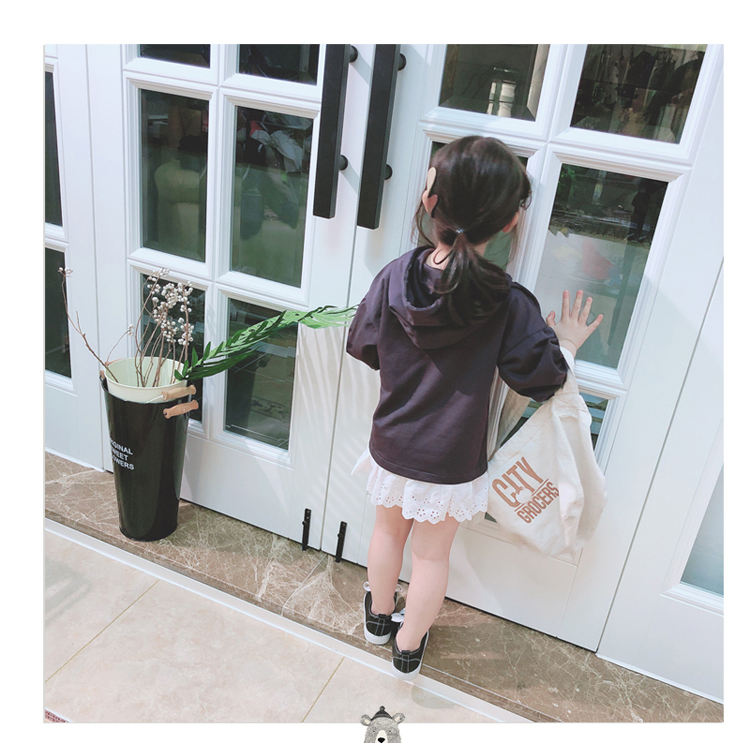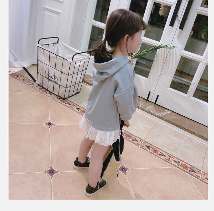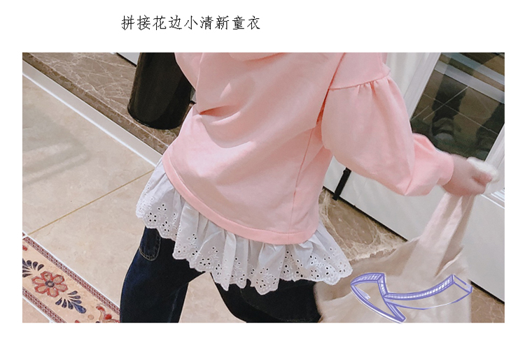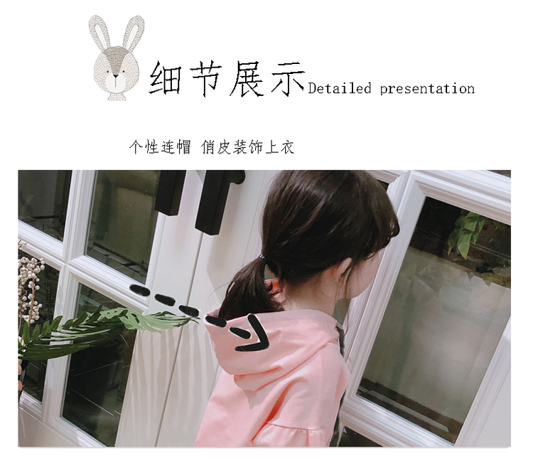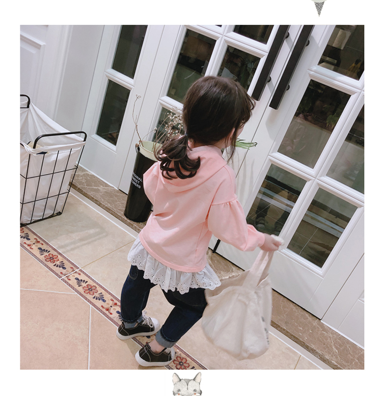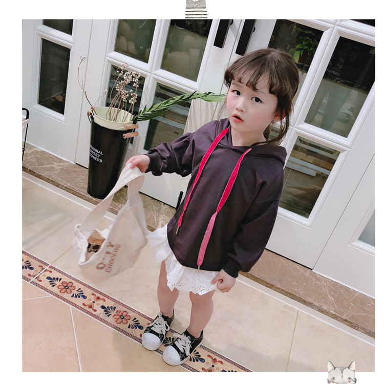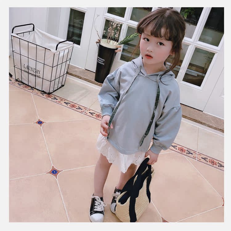 2019童裝春季新款女寶寶 兒童寬松版泡泡袖 女童拼色抽褶連帽衛衣1入