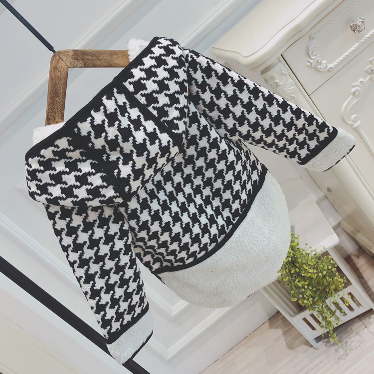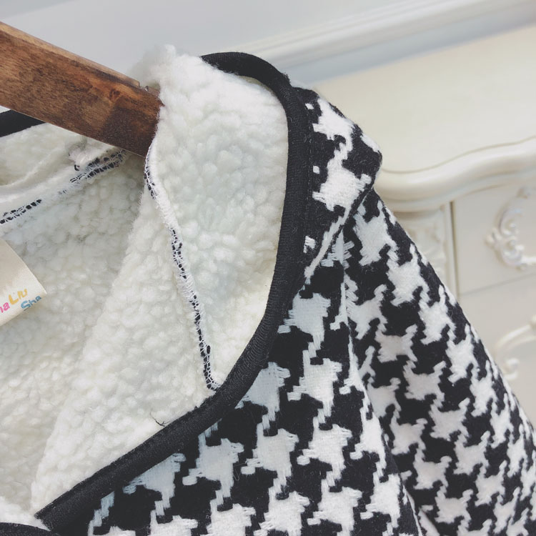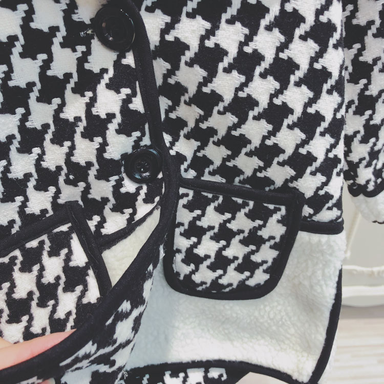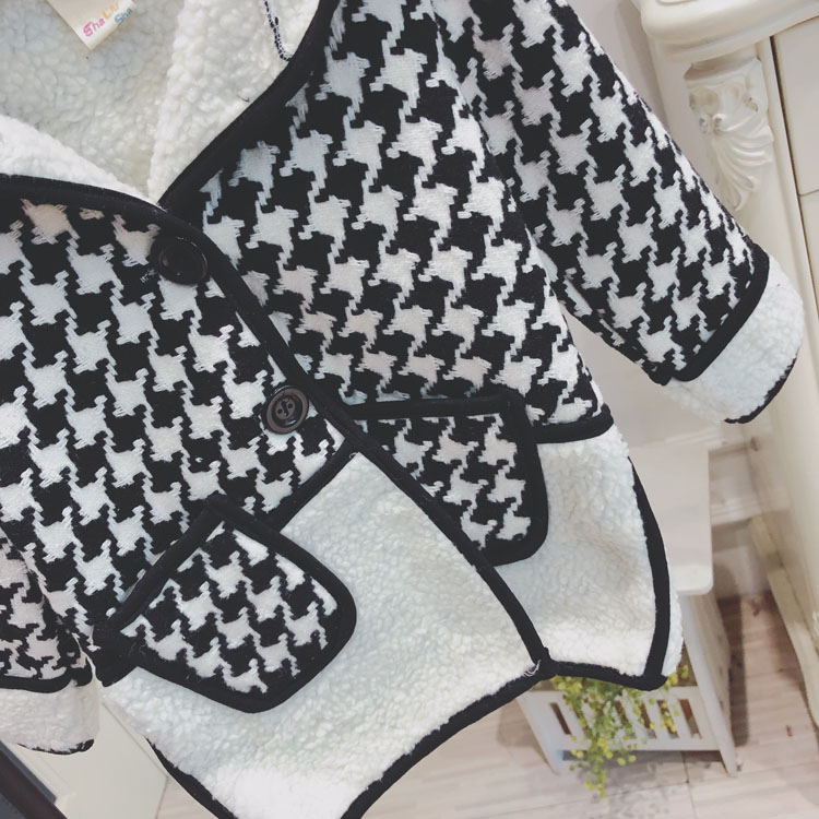 2018秋冬童裝外套新款中小童雙插兜連帽單排扣千鳥格女童大衣潮1入