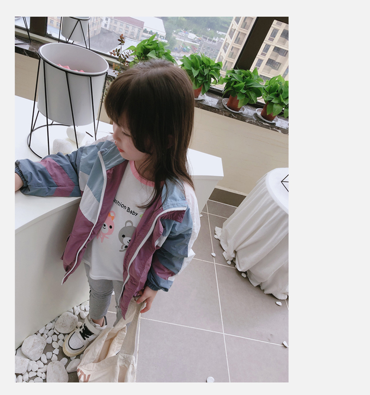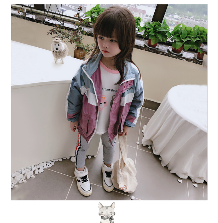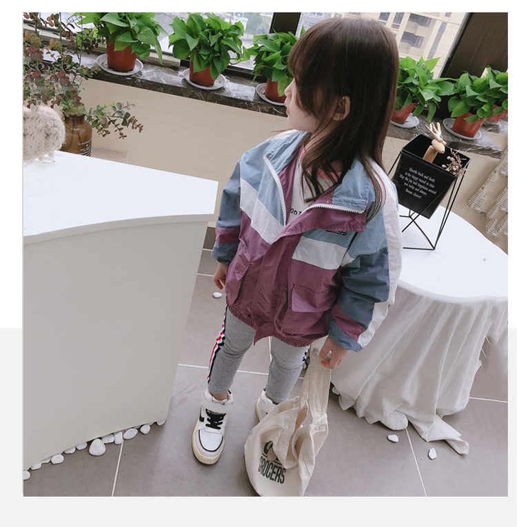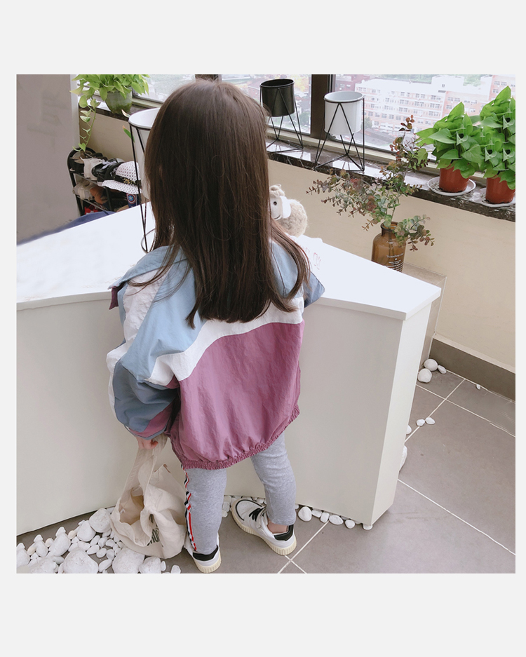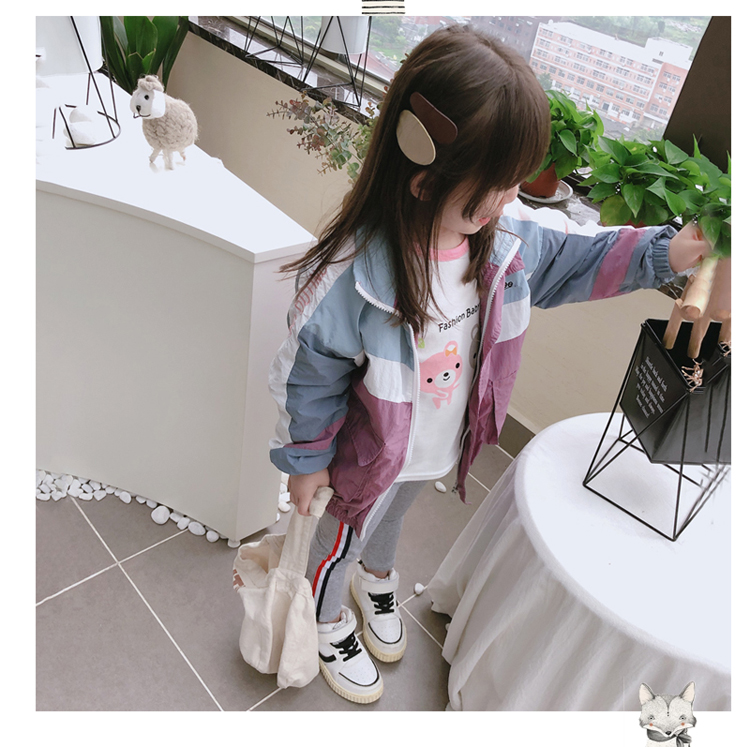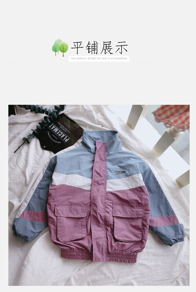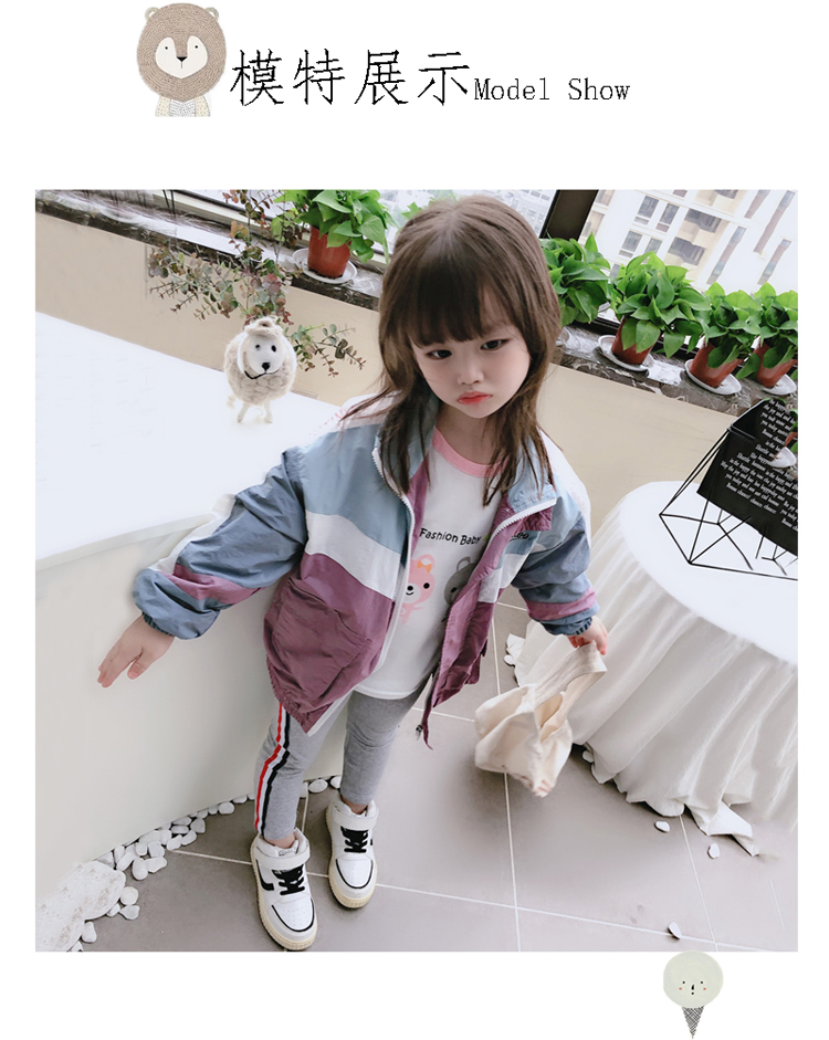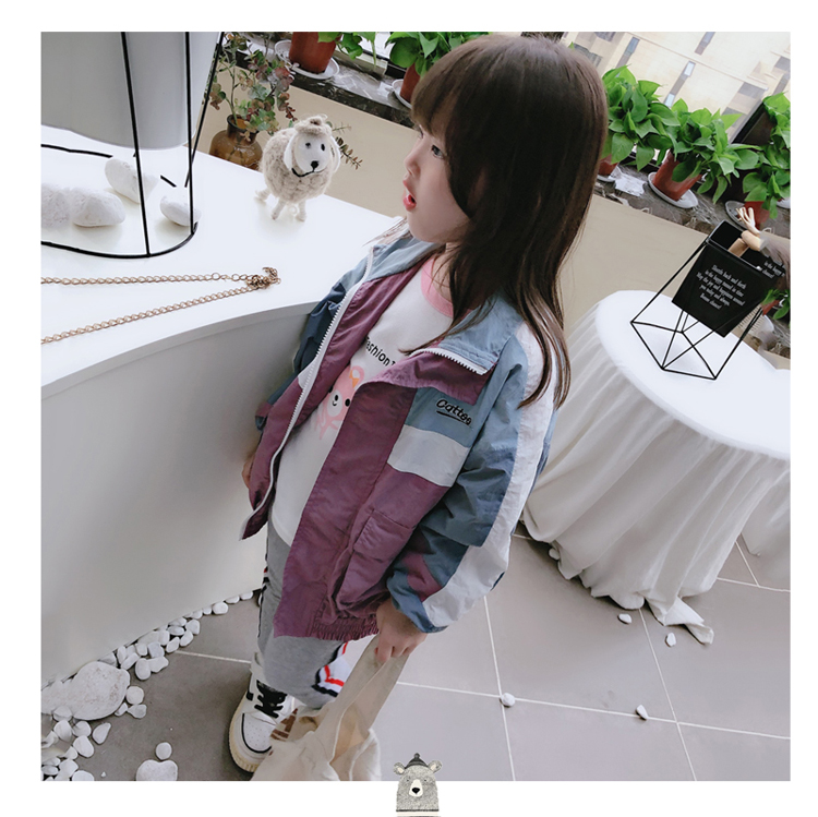 2019春秋季新款 男女童舒適翻領外套 中小童個性洋氣拼接色夾克衫1入