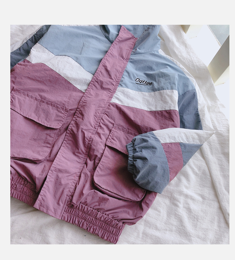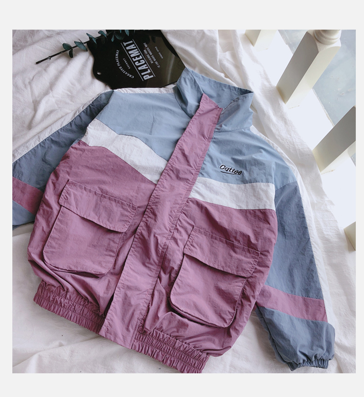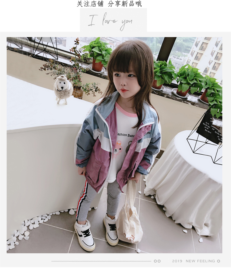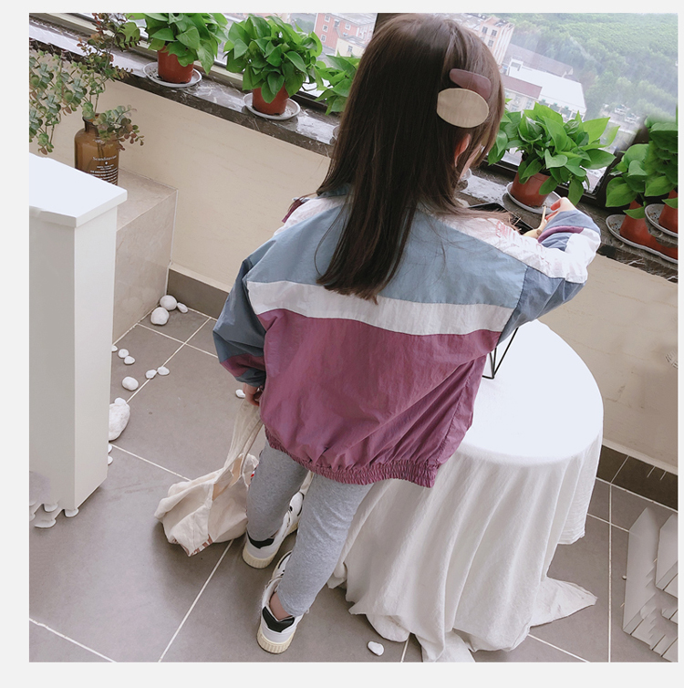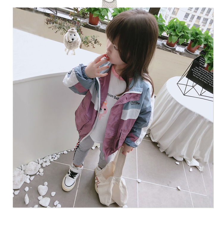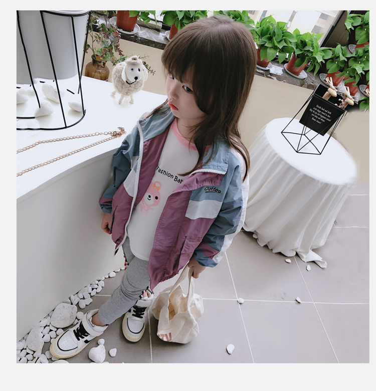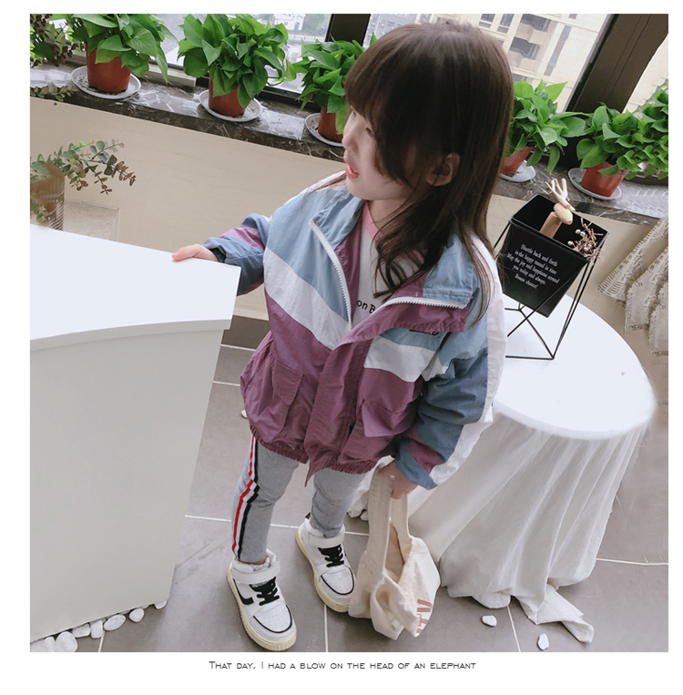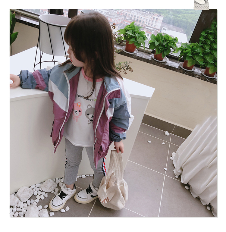 2019春秋季新款 男女童舒適翻領外套 中小童個性洋氣拼接色夾克衫1入
