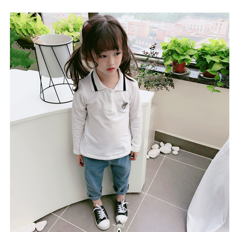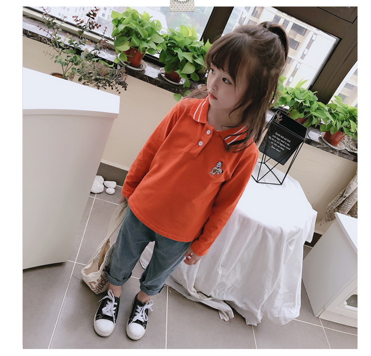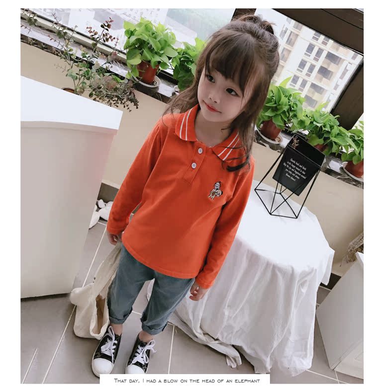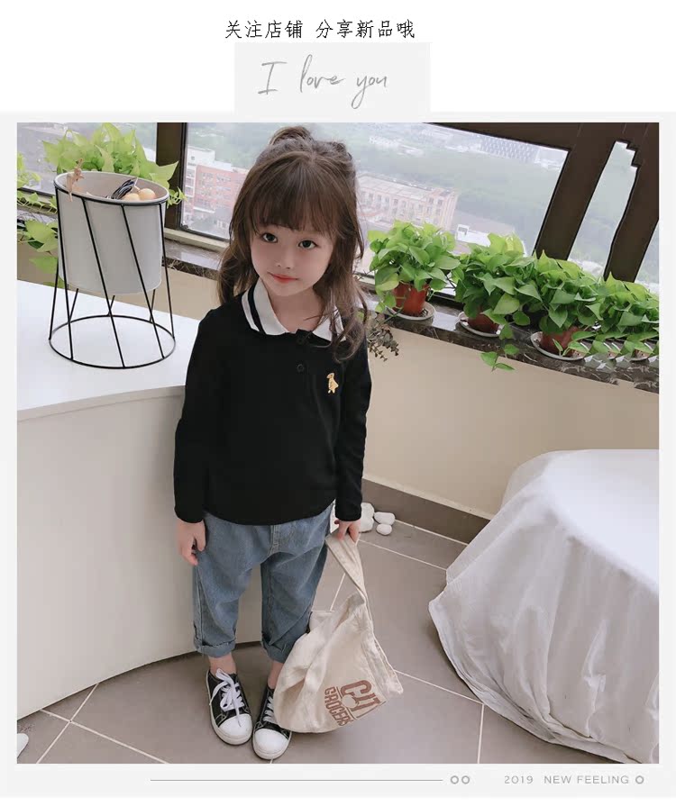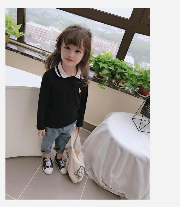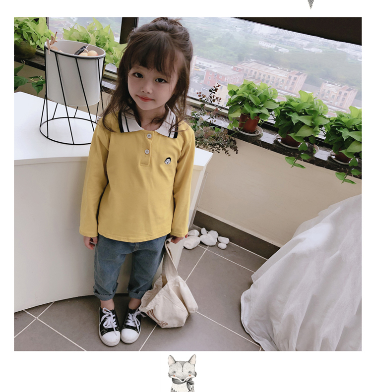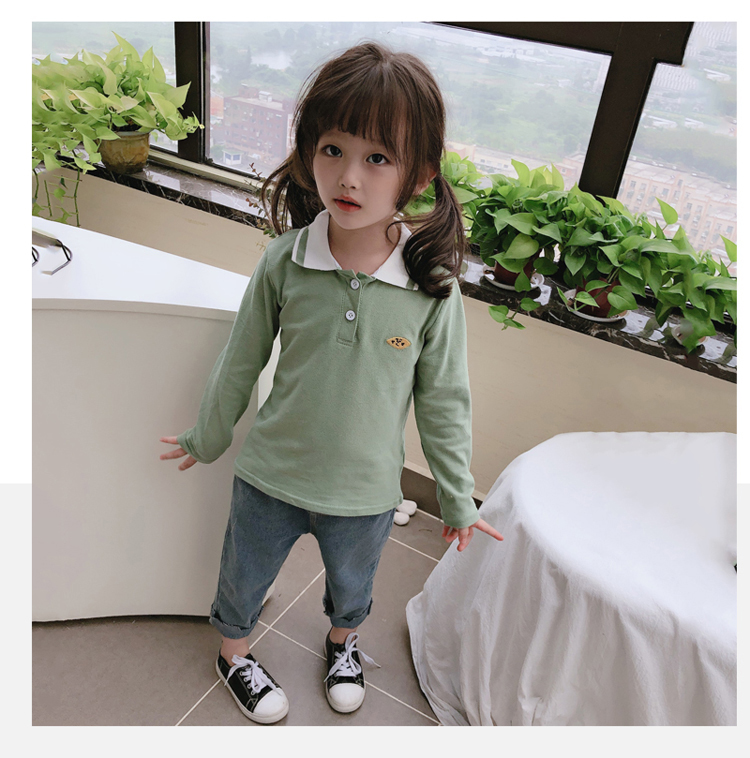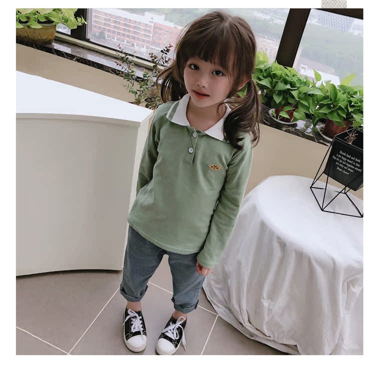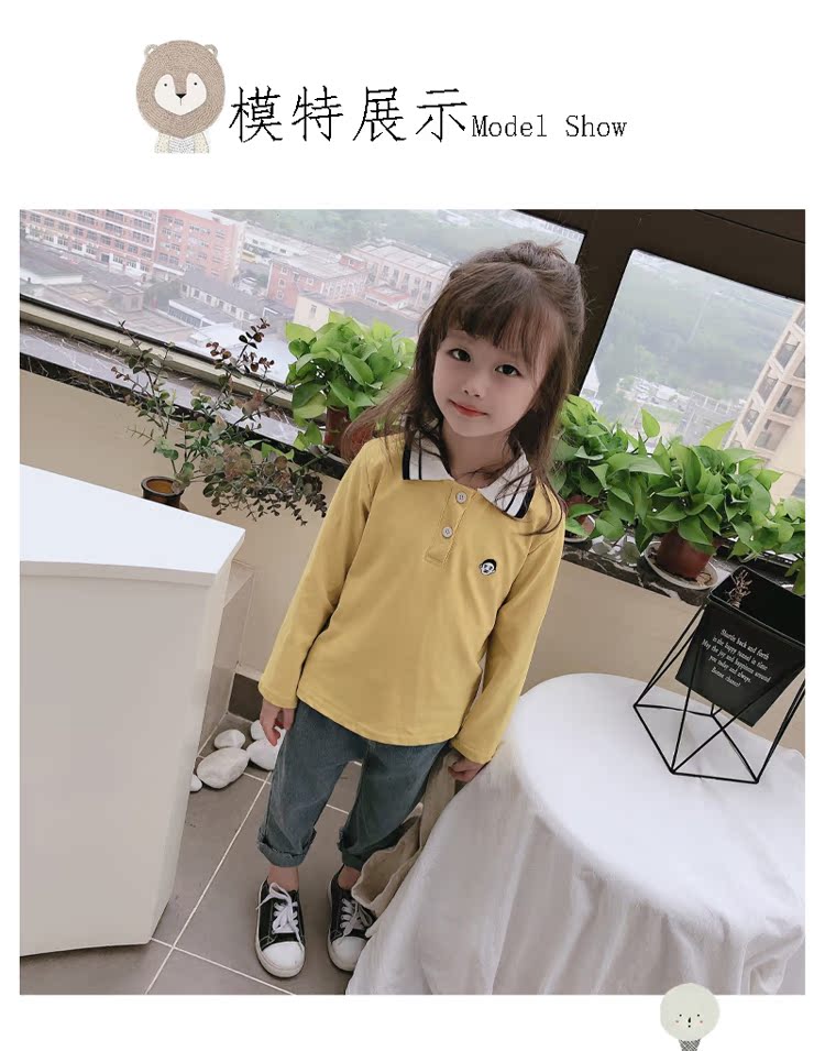 2019春秋季新款 中小女童寶寶翻領長袖T恤潮 兒童寬松翻領上衣1入