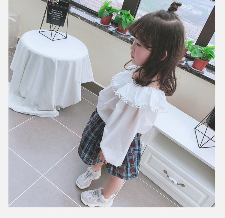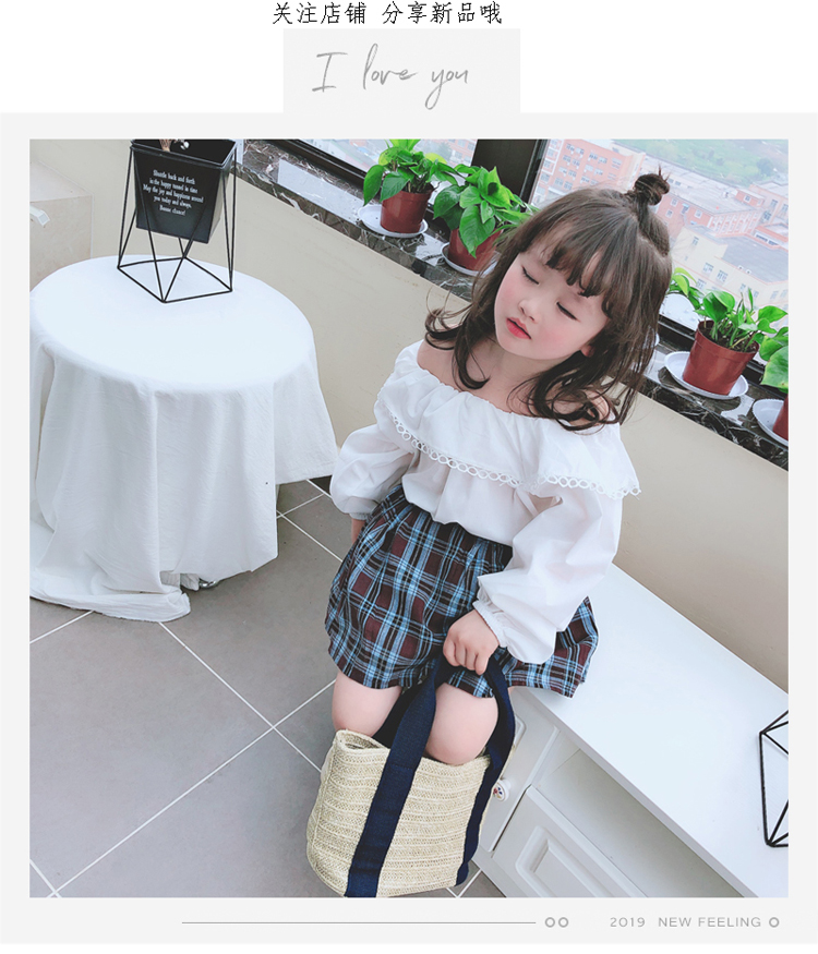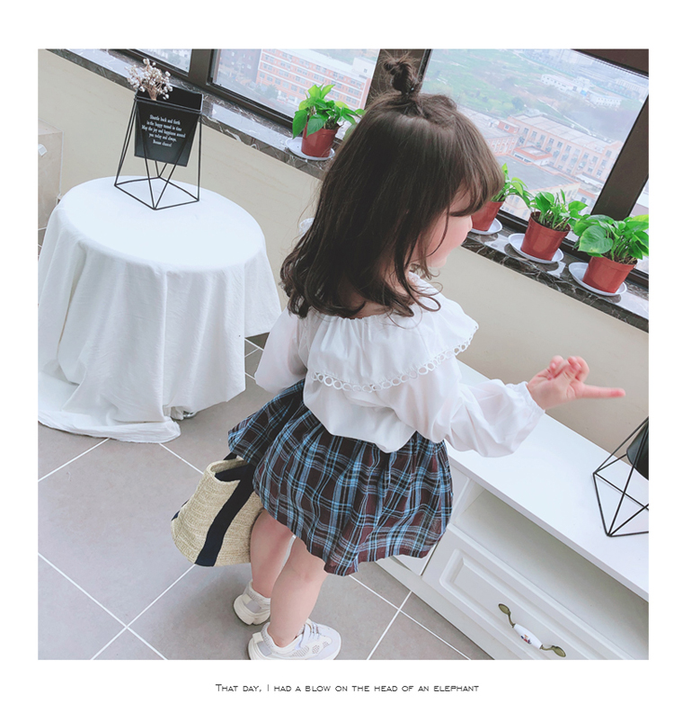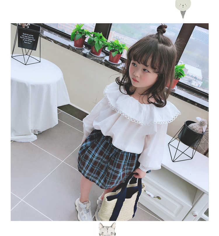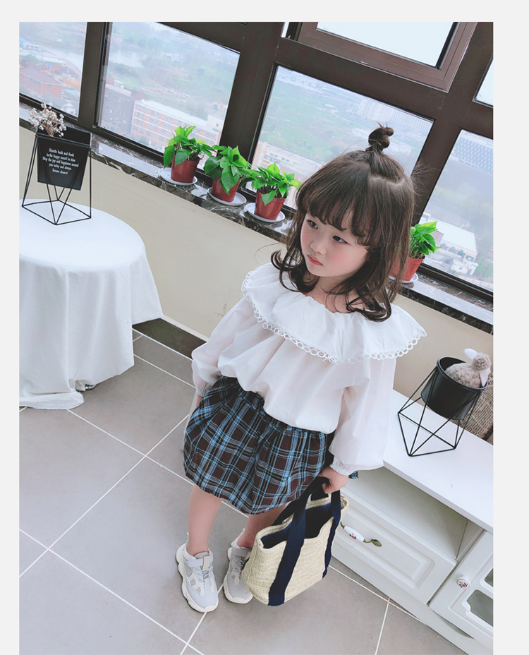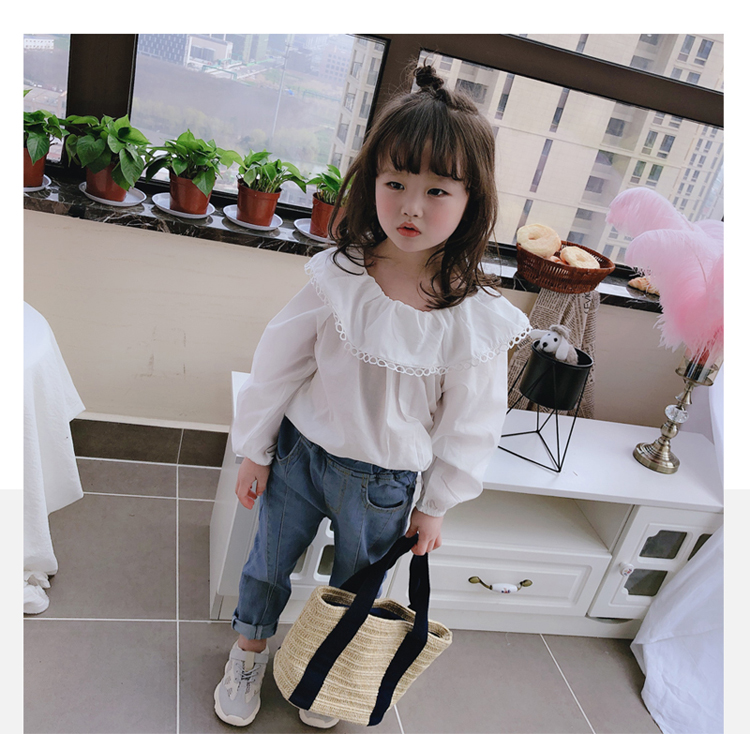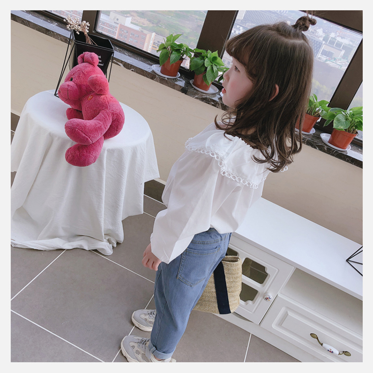 2019女童娃娃衫春季新款寶寶 小清新花邊翻領長袖襯衫兒童上衣1入