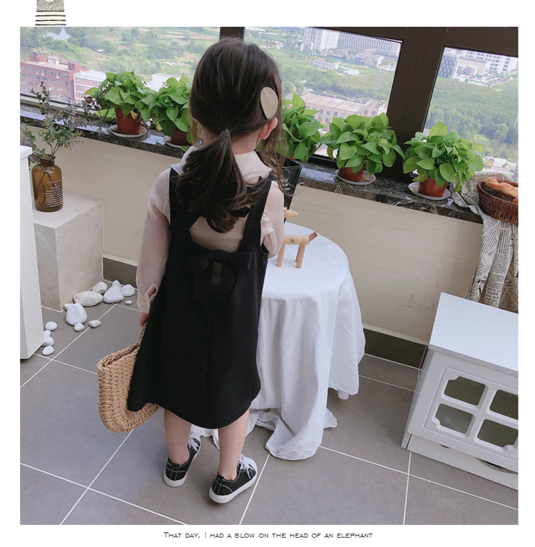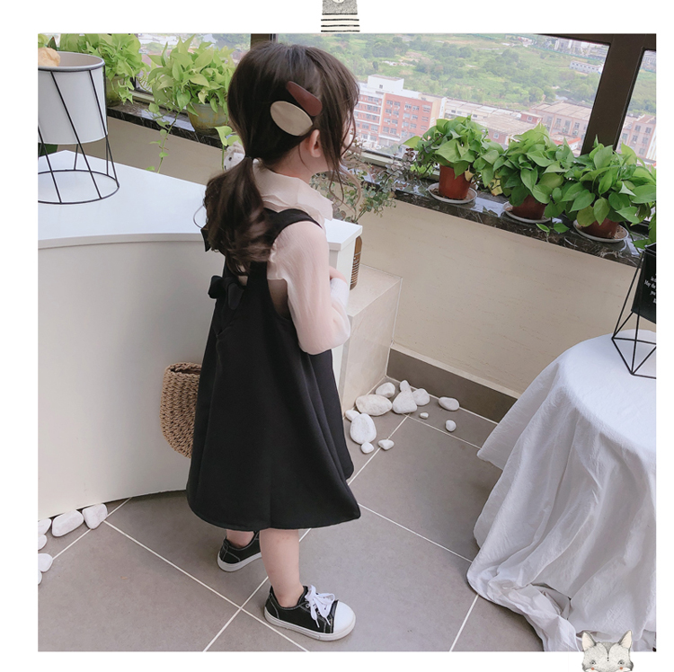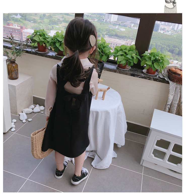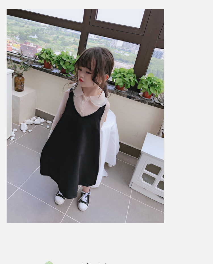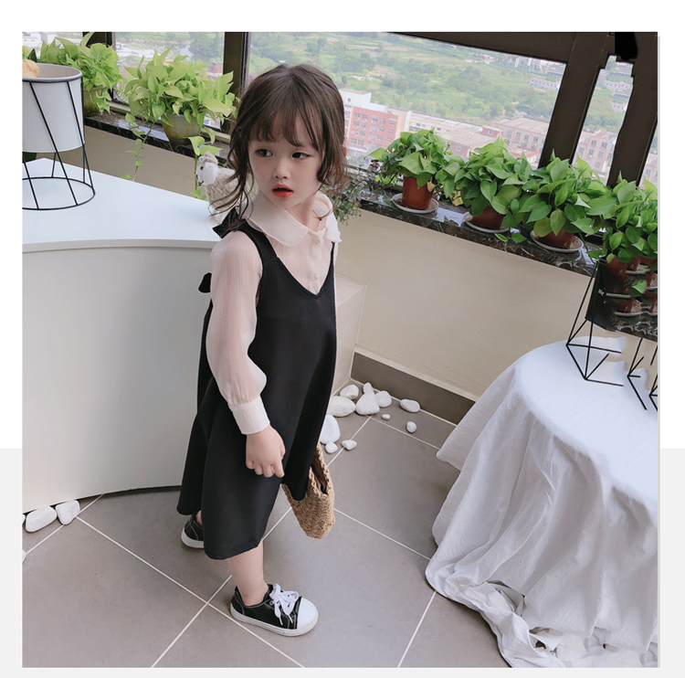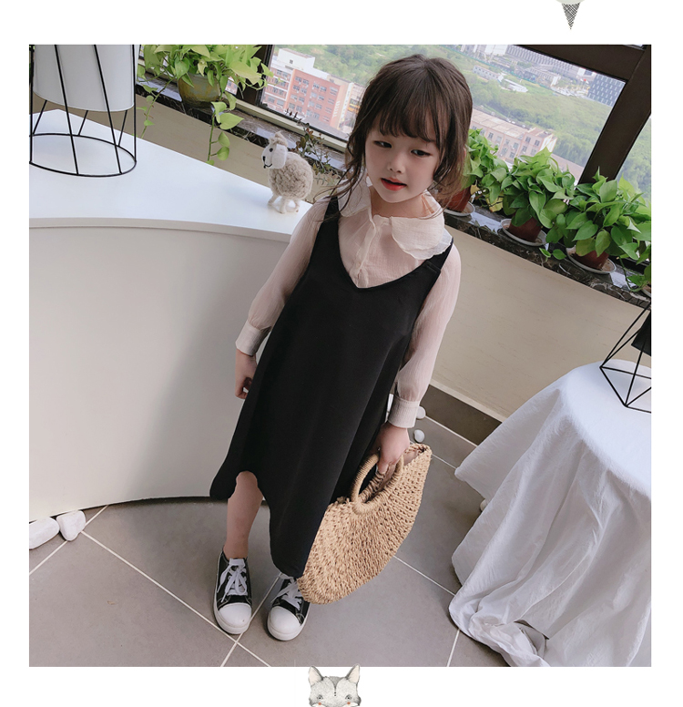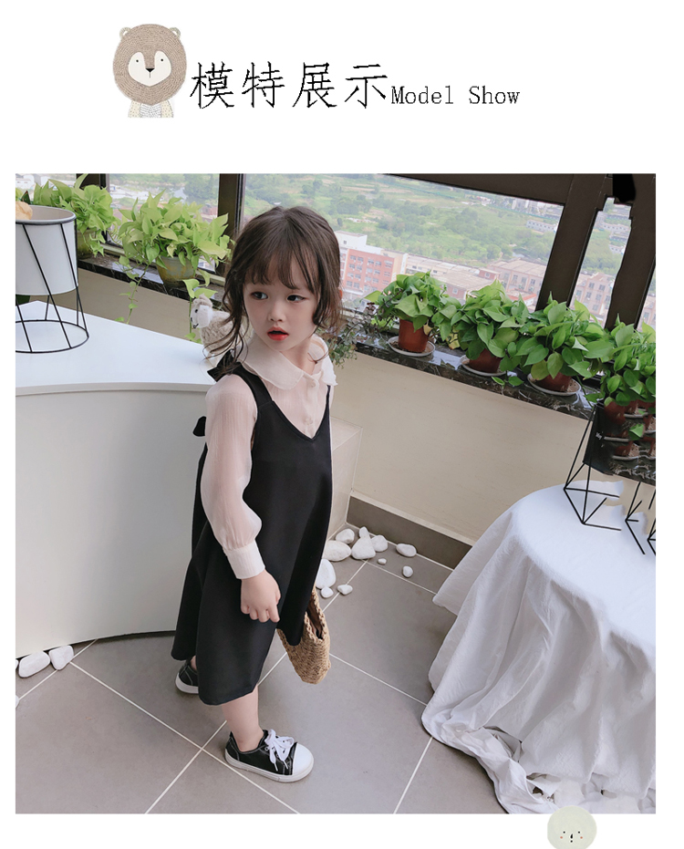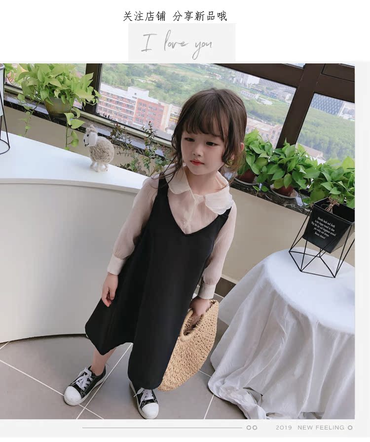 2019春秋新款 女童可愛套裝 兒童可愛翻領上衣+純色背心裙兩件套1入