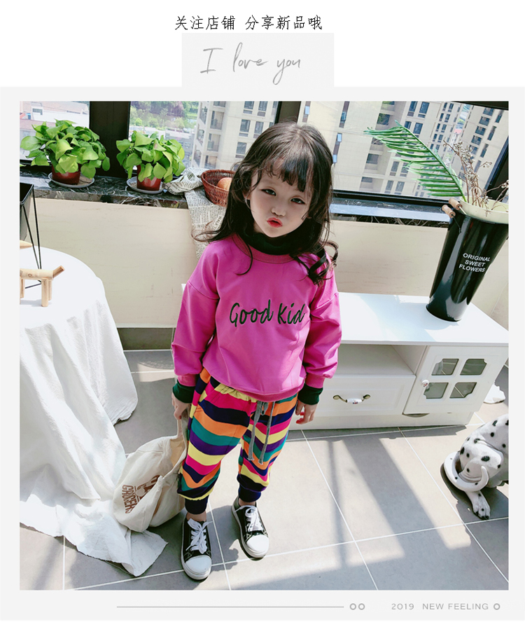 2019春秋季新款 女童個性洋氣衛衣 中小童可愛花邊圓領套頭上衣1入